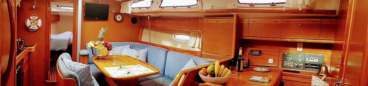 Refrigerator , Coffee maker , Cockpit speakers , Solar Panels , Bimini , Dinghy , Inverter