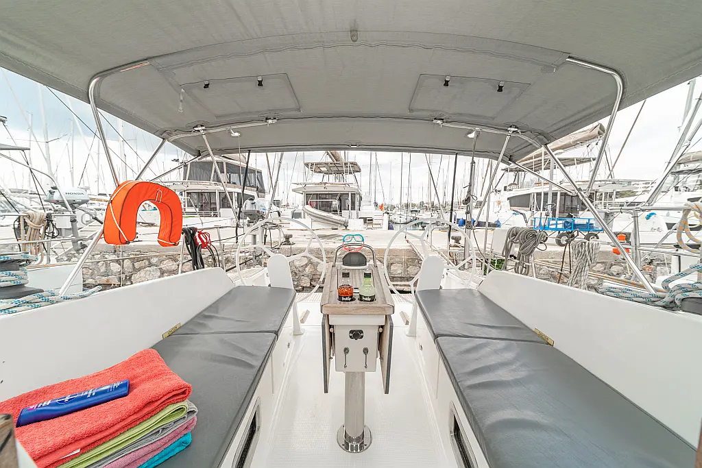 Sprayhood , Bimini , Dinghy , Electric toilet , Refrigerator , Cockpit cushions , Solar Panels , Cockpit speakers