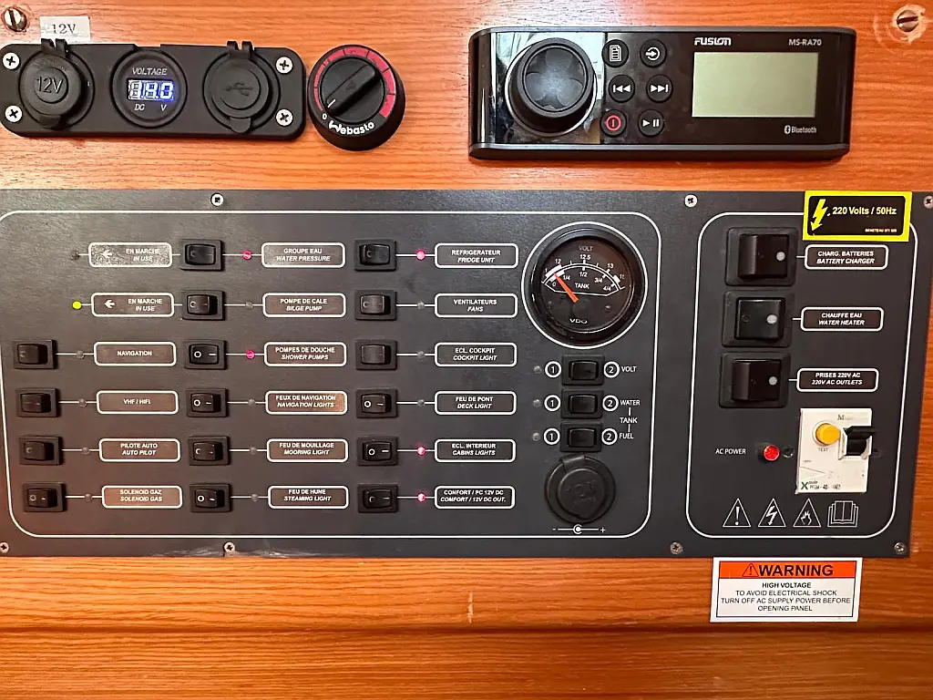 Air condition , Bimini , Cockpit speakers , Refrigerator , Heating , Solar Panels , Sprayhood
