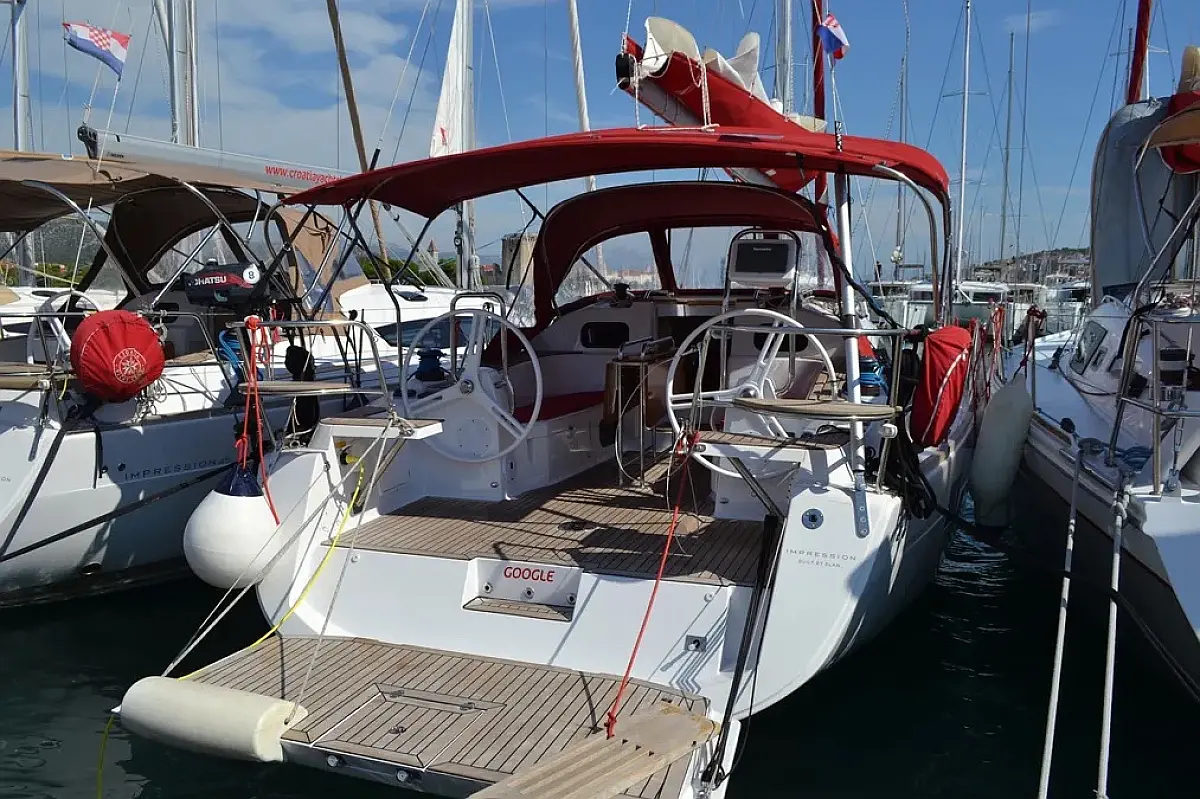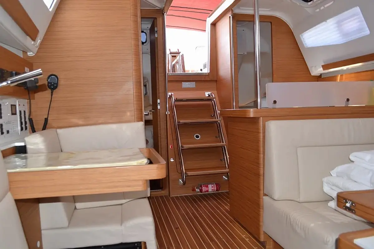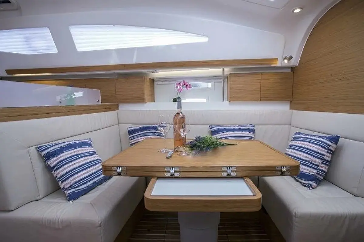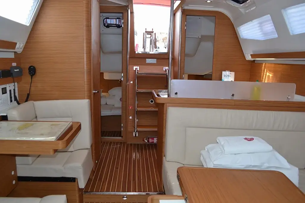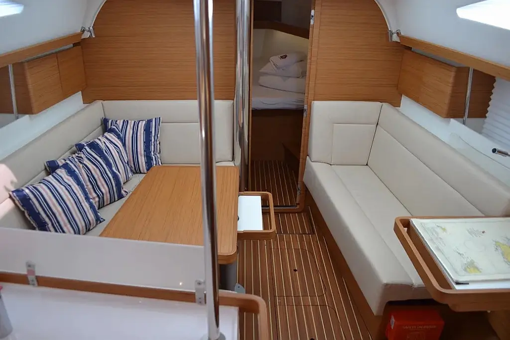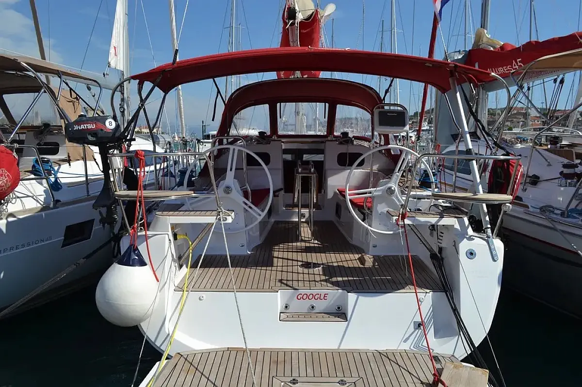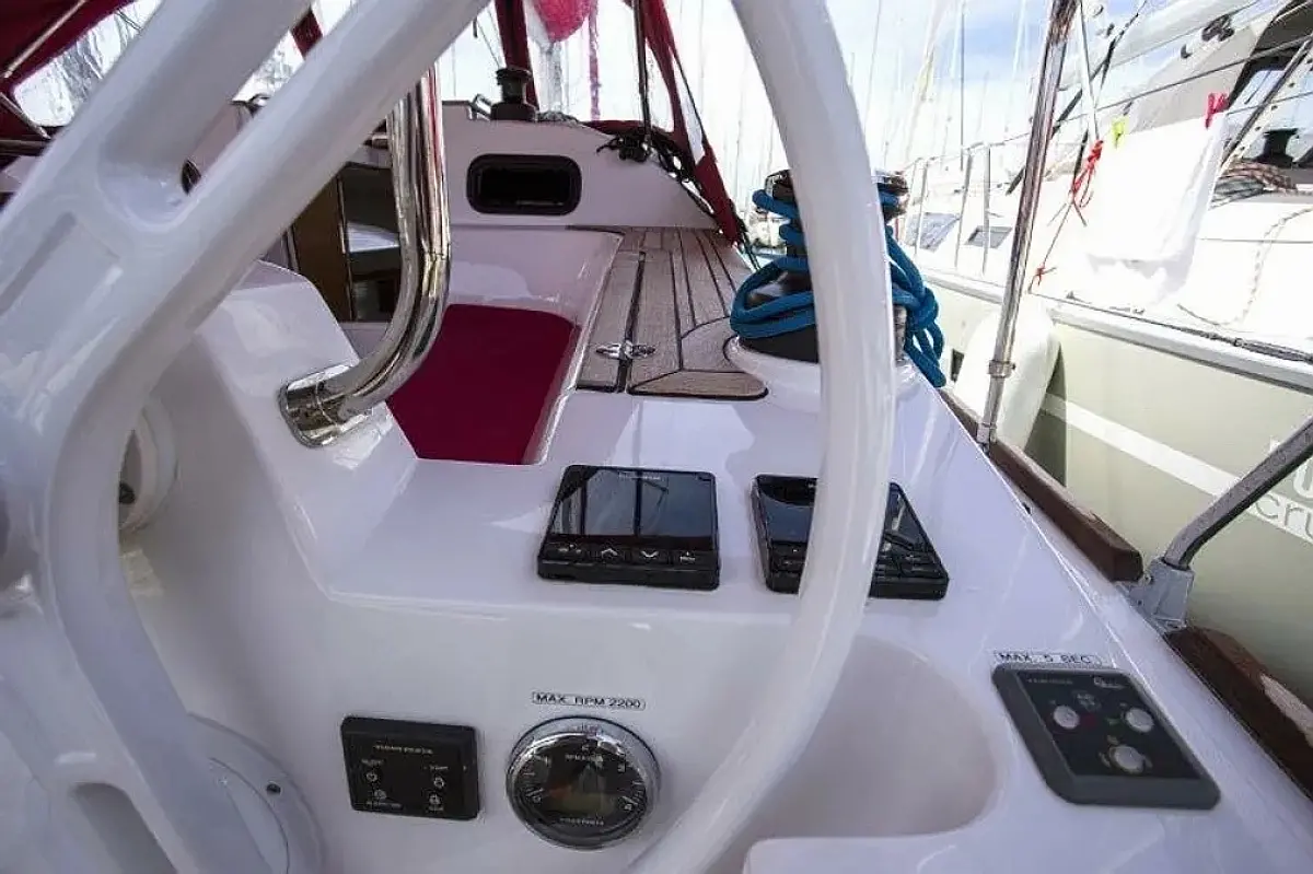 Swimming platform , Bimini , Cockpit cushions , Cockpit speakers , Dinghy , Refrigerator , Heating , Holding tank , Sprayhood , Teak Cockpit , Wi-Fi & Internet