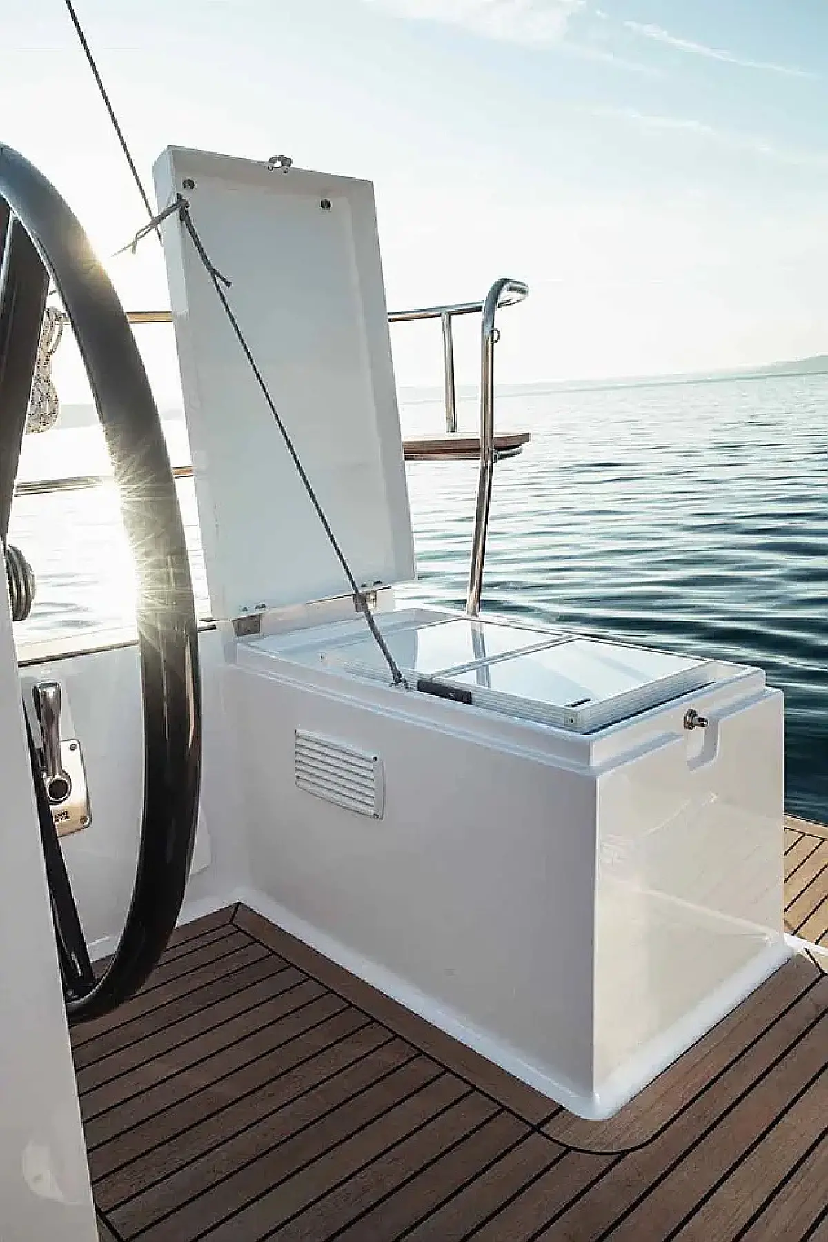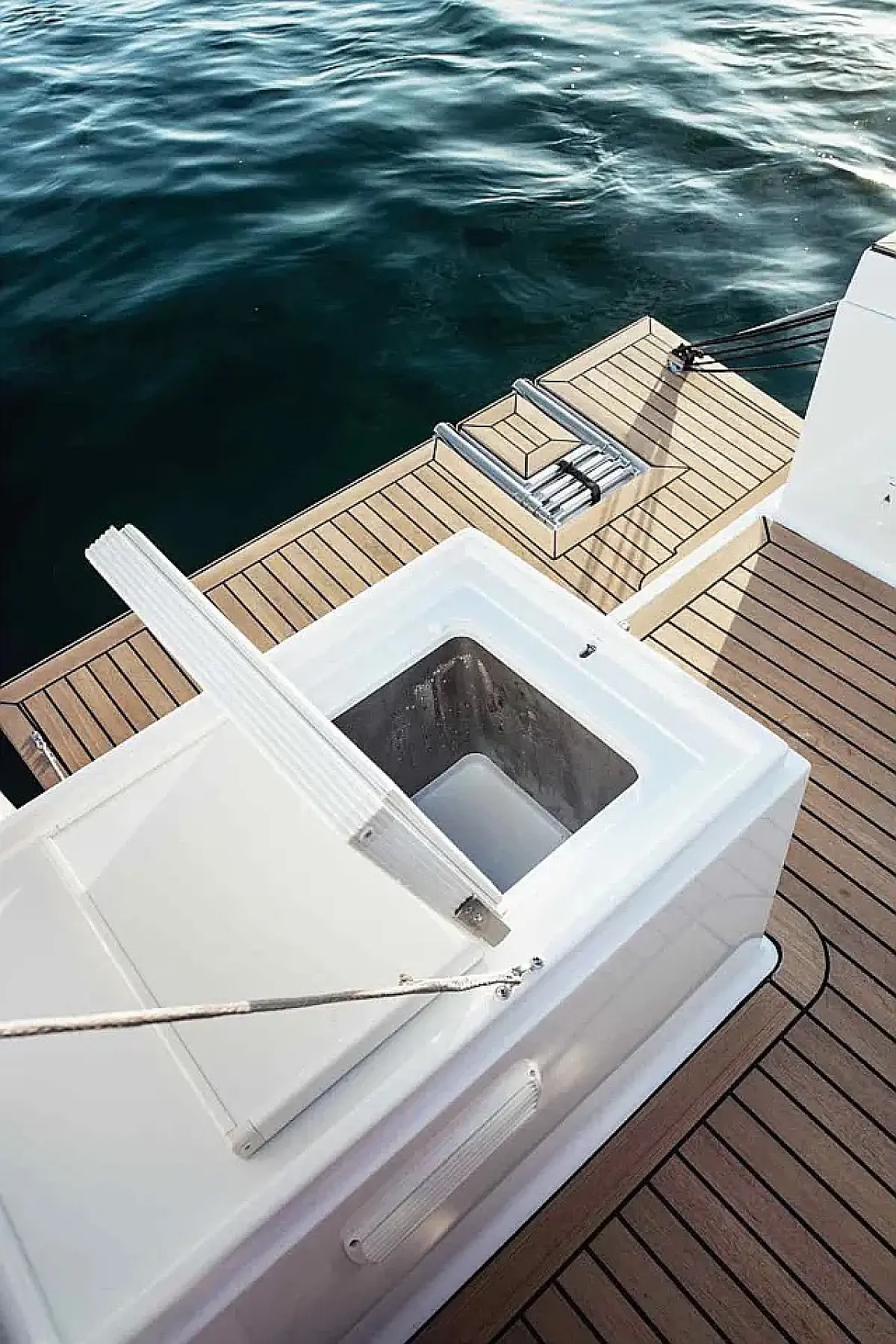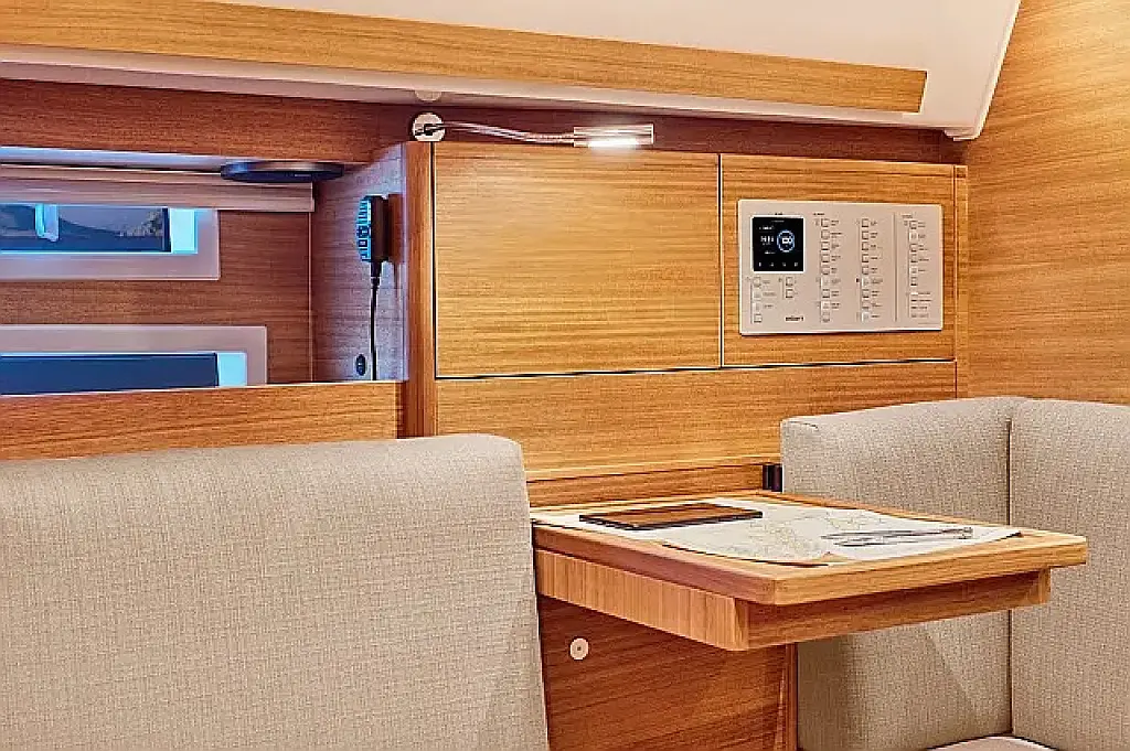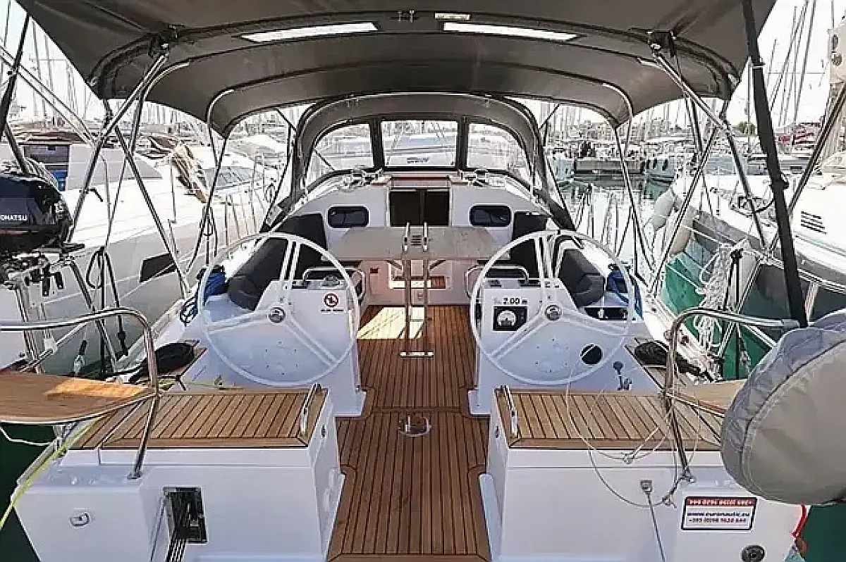 Swimming platform , Bimini , Cockpit cushions , Cockpit speakers , Dinghy , Refrigerator , Electric toilet , Heating , Holding tank , Inverter , Sprayhood , Teak Cockpit , Wi-Fi & Internet