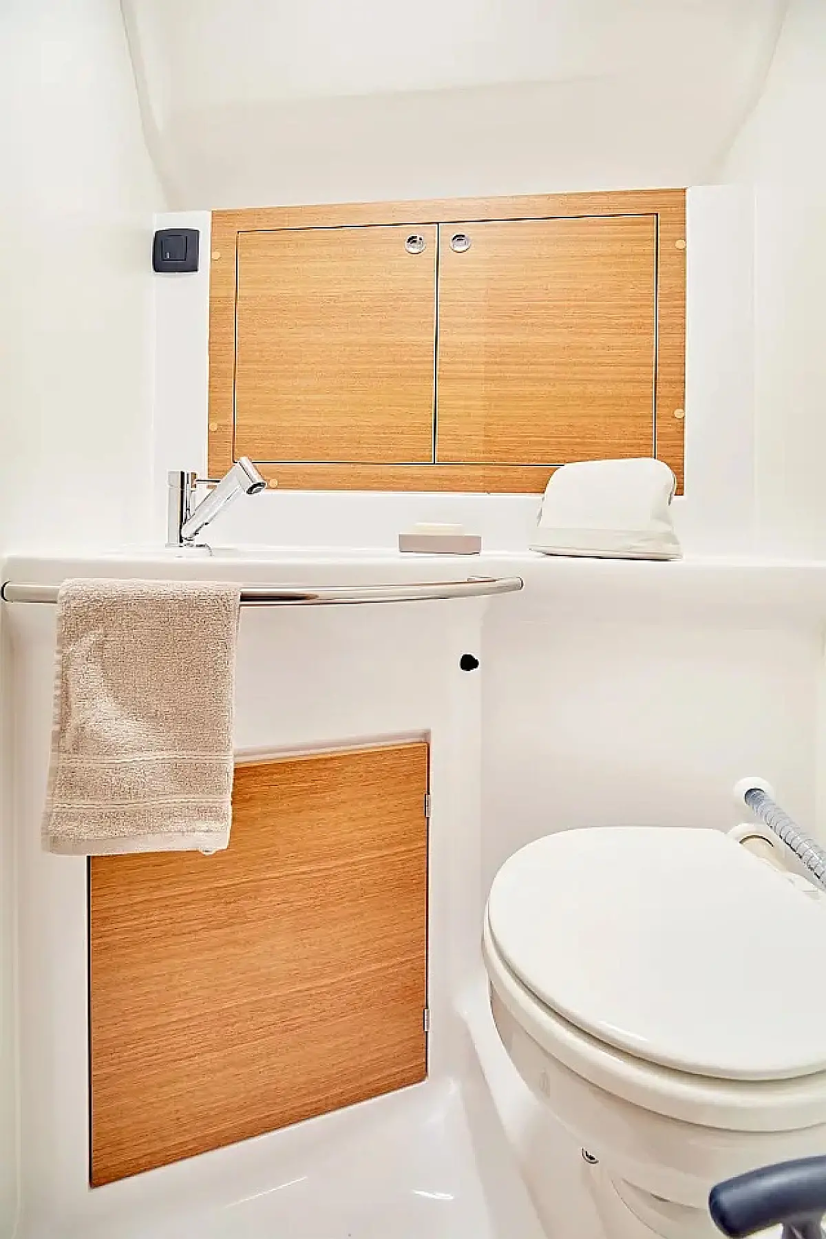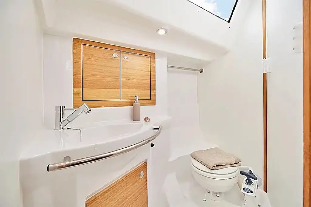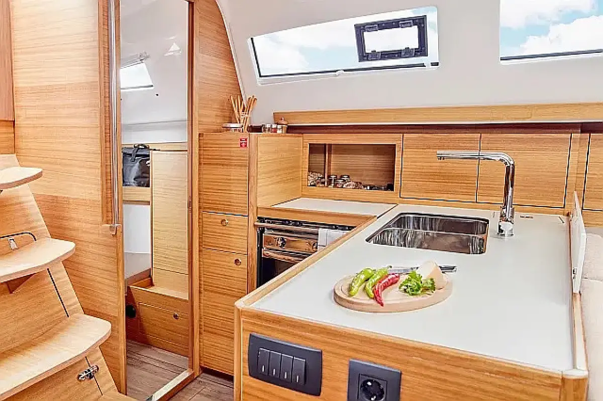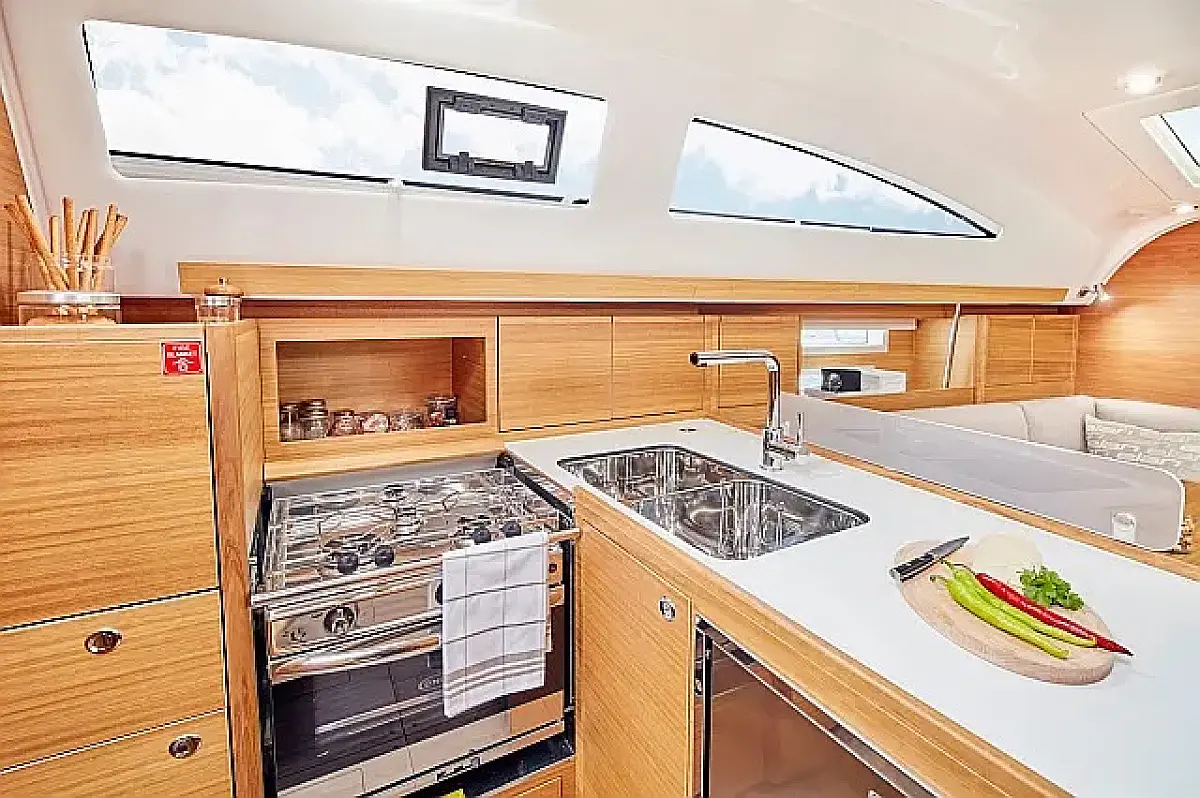 Swimming platform , Bimini , Cockpit cushions , Cockpit speakers , Dinghy , Refrigerator , Electric toilet , Heating , Holding tank , Inverter , Sprayhood , Teak Cockpit , Wi-Fi & Internet
