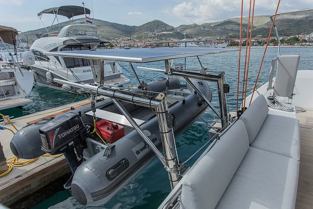 Air condition , Bimini , Cockpit cushions , Dinghy , Electric toilet , Ice maker , Outboard engine , Refrigerator , Solar Panels , Water maker , Wi-Fi & Internet