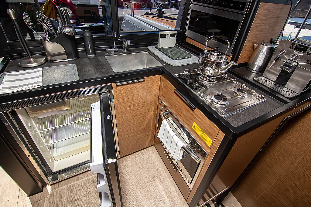 Refrigerator , Air condition , Bimini , Cockpit cushions , Cockpit speakers , Dinghy , Coffee maker , Electric toilet , Generator , Heating , Holding tank , Inverter , Outboard engine , Teak Cockpit , Wi-Fi & Internet