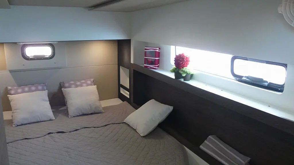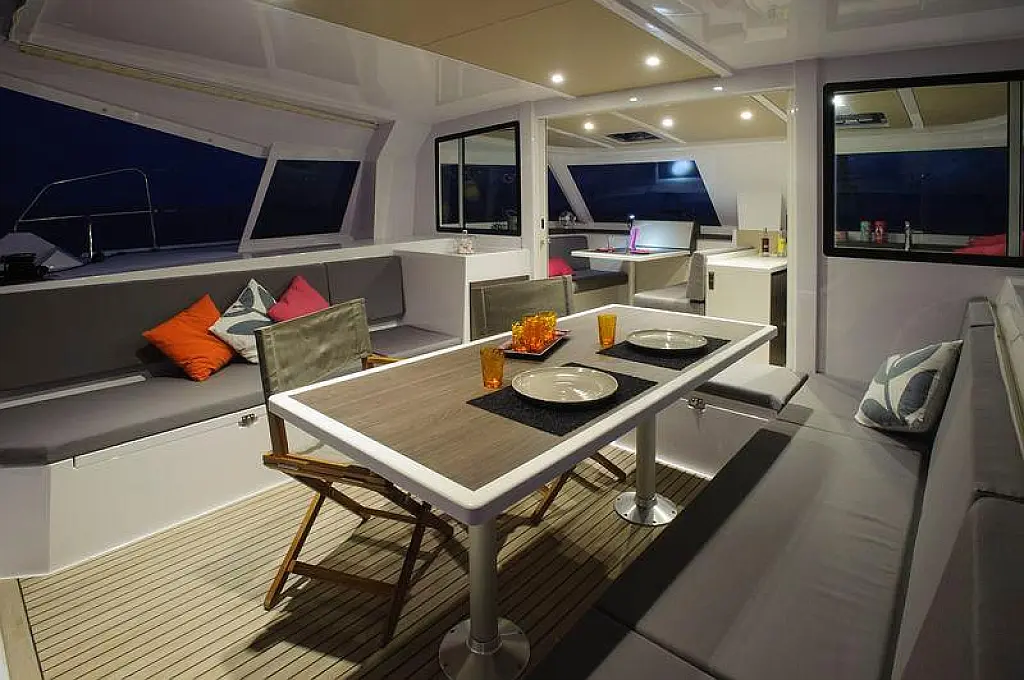 Swimming platform , Holding tank , Bimini , Cockpit speakers , Dinghy , Heating , Refrigerator , Sprayhood , Wi-Fi & Internet , Solar Panels , Electric winches , Coffee maker , Electric toilet