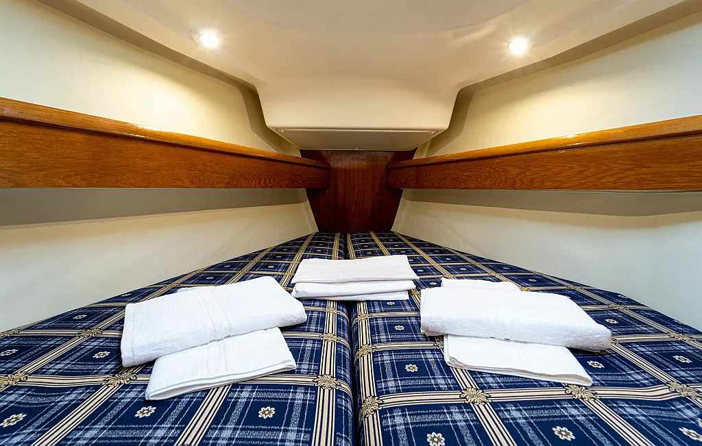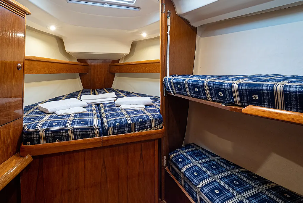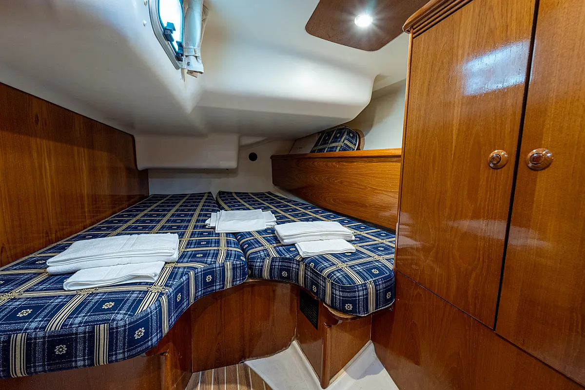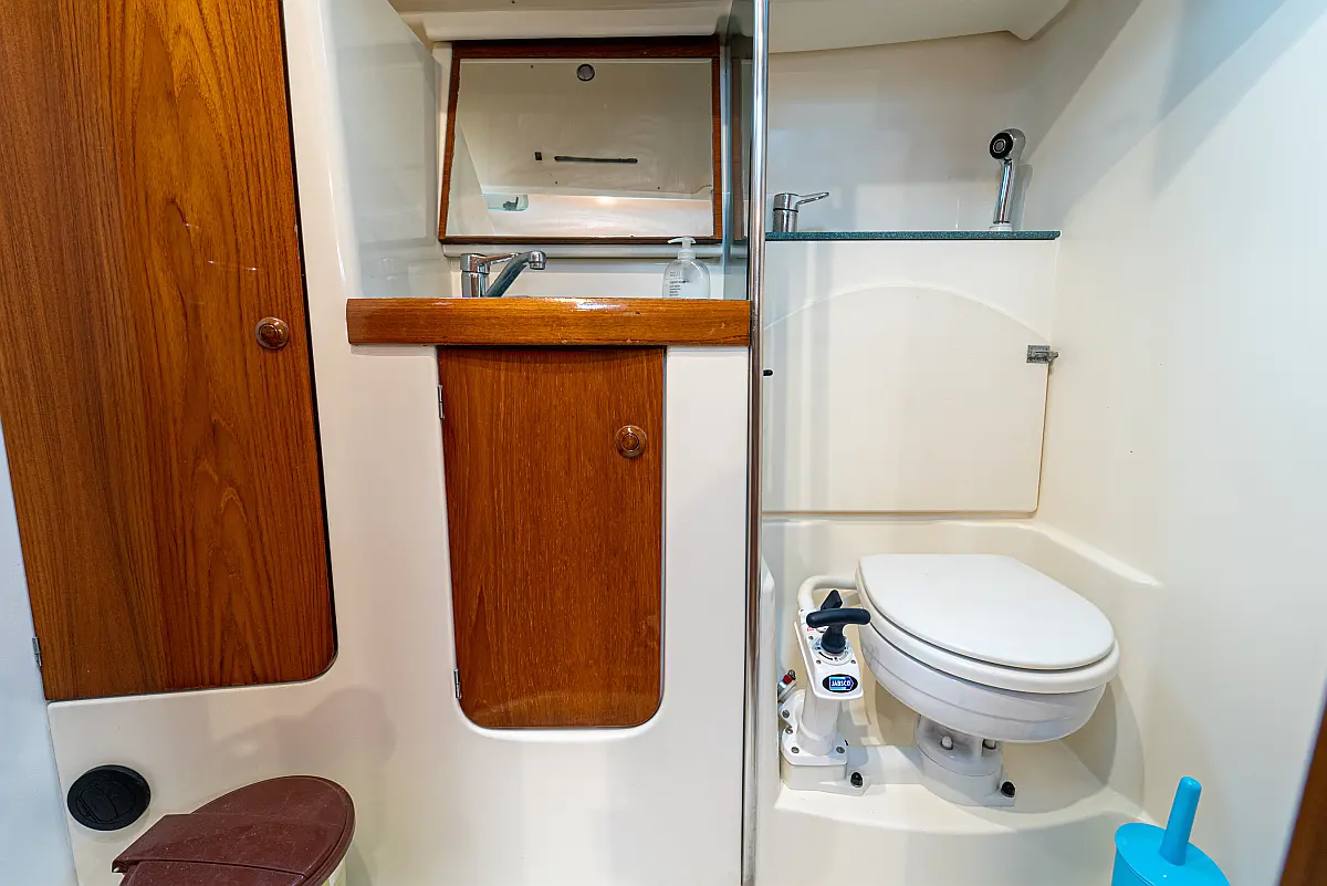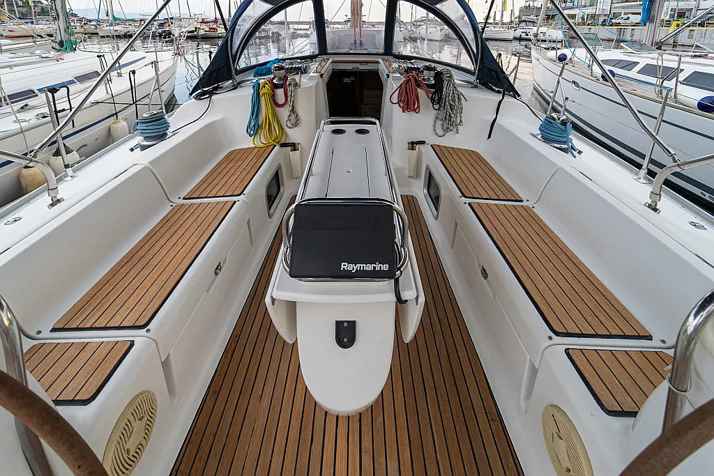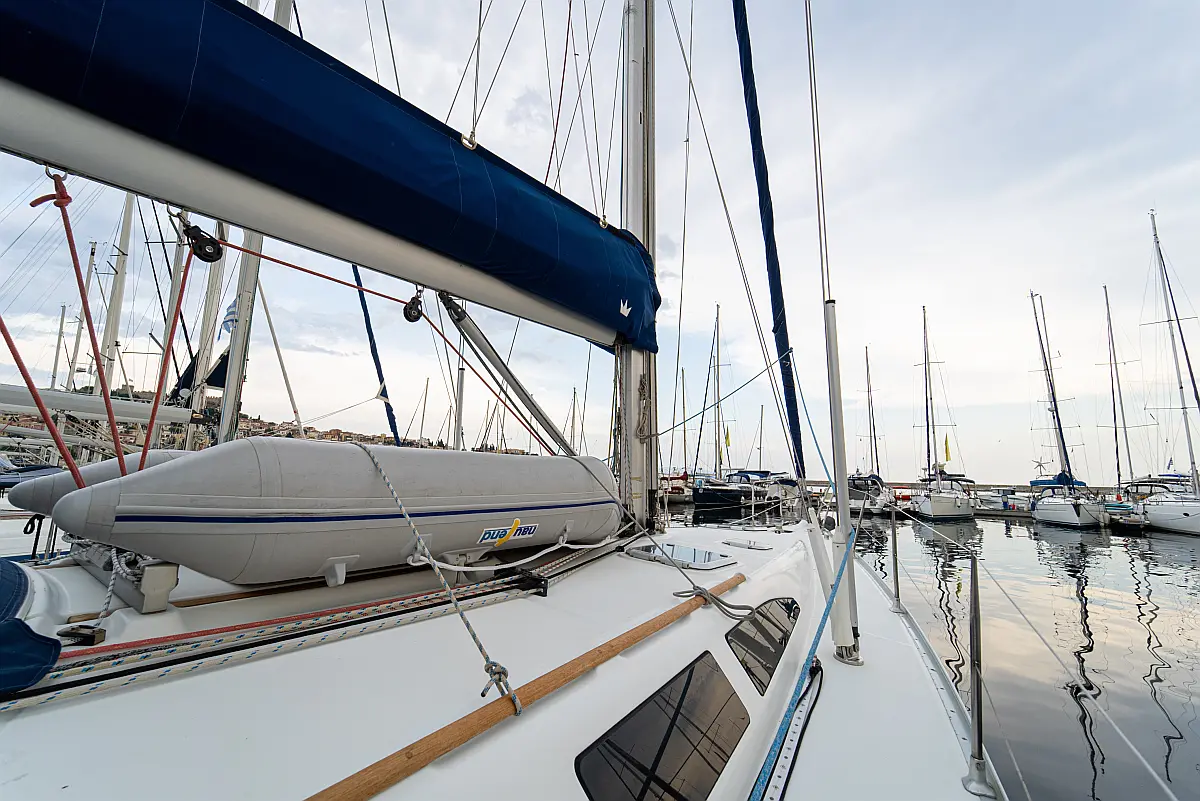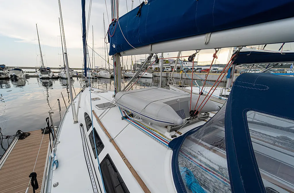 Refrigerator , Bimini , Cockpit speakers , Dinghy , Cockpit cushions , Holding tank , Sprayhood , Solar Panels , Electric toilet