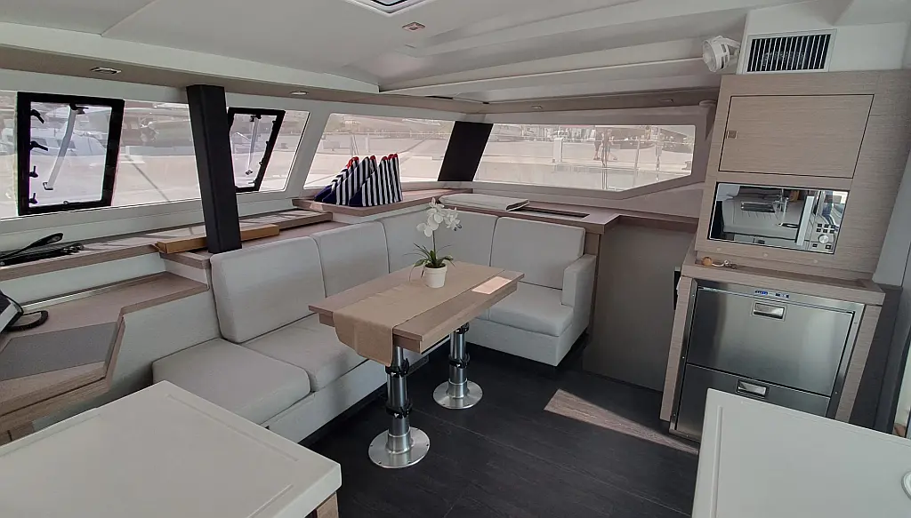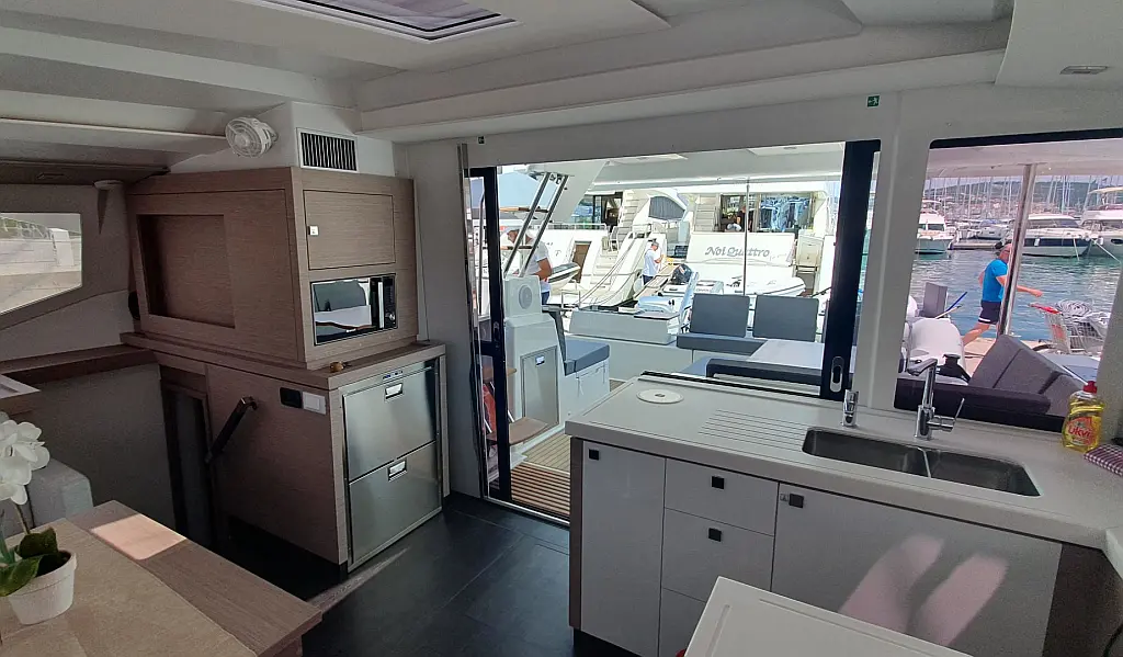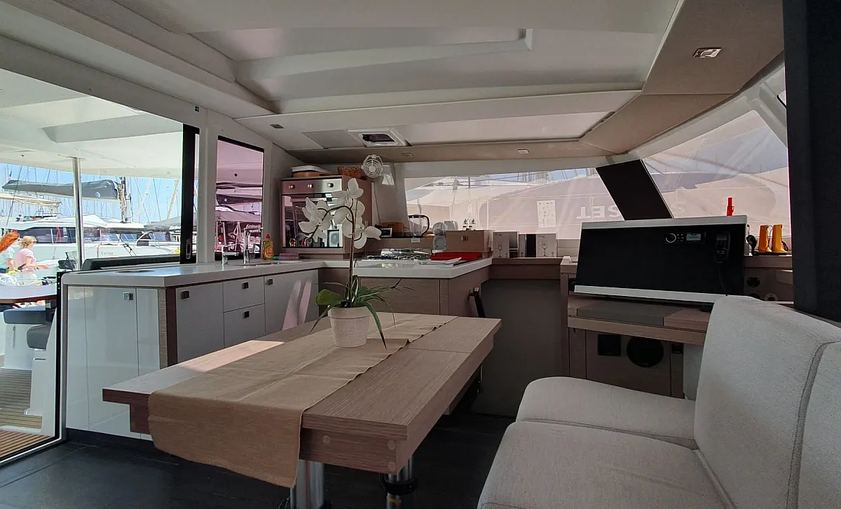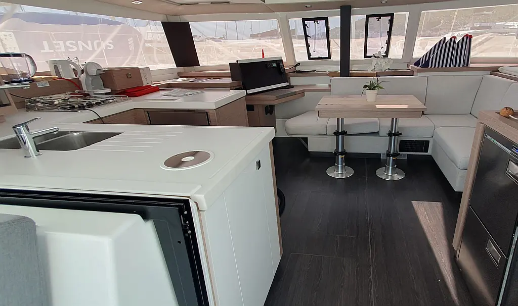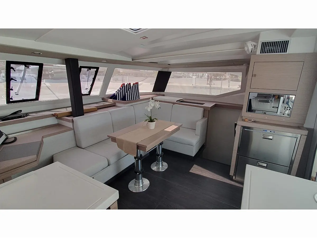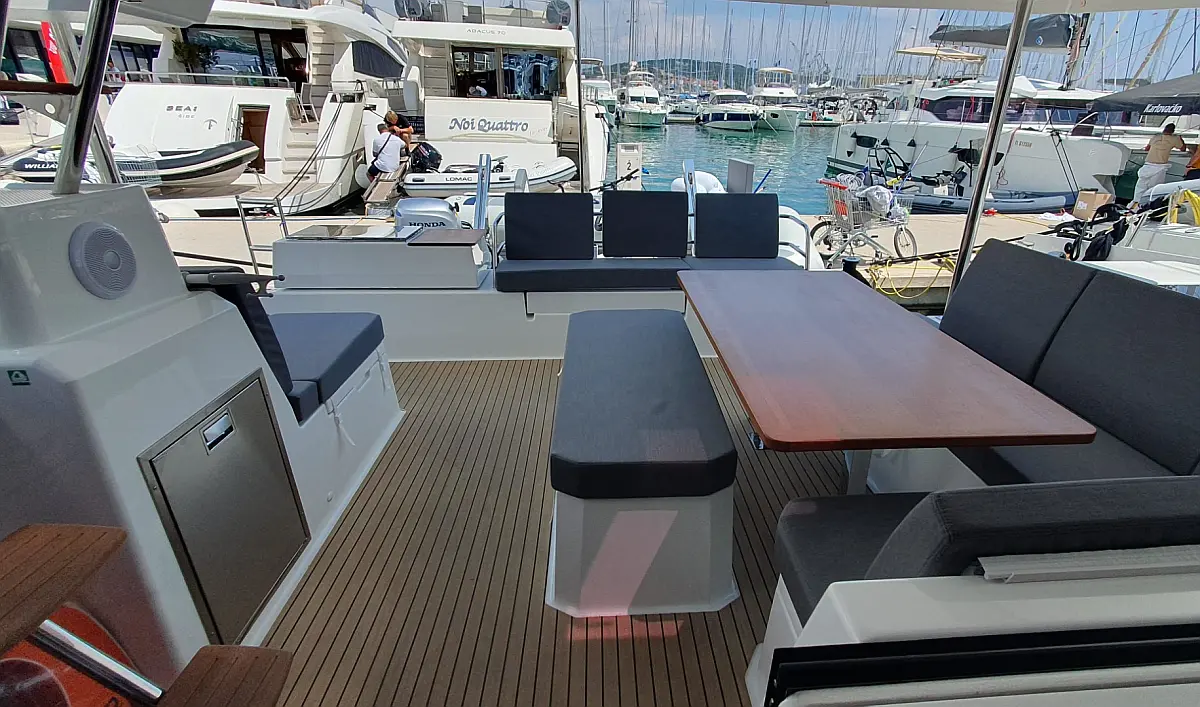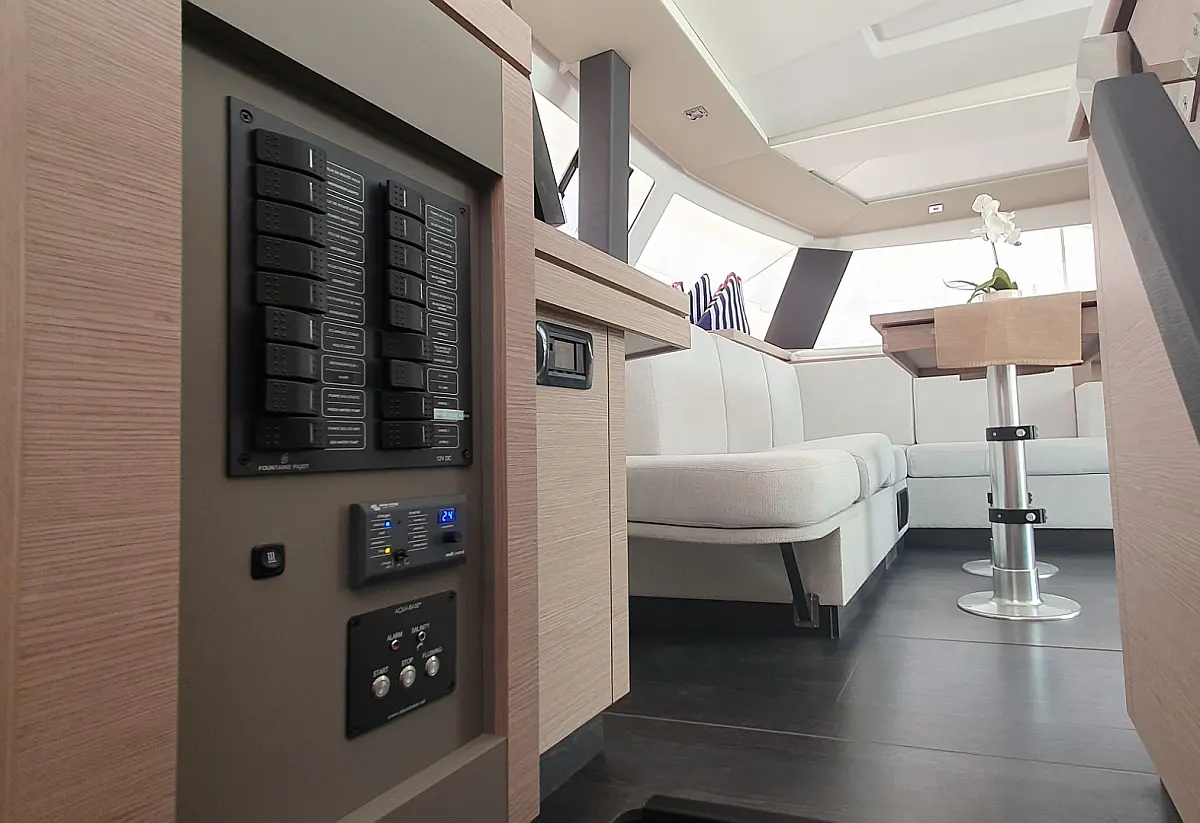 Generator , Crni tank , Klima , Grijanje , Desalinizator , Aparat za kavu , Pomoćni čamac , Električni WC , Inverter , Bimini , Zvučnici u kokpitu , Tikovina u kokpitu , Jastuci u kokpitu , Hladnjak , Roštilj u kokpitu