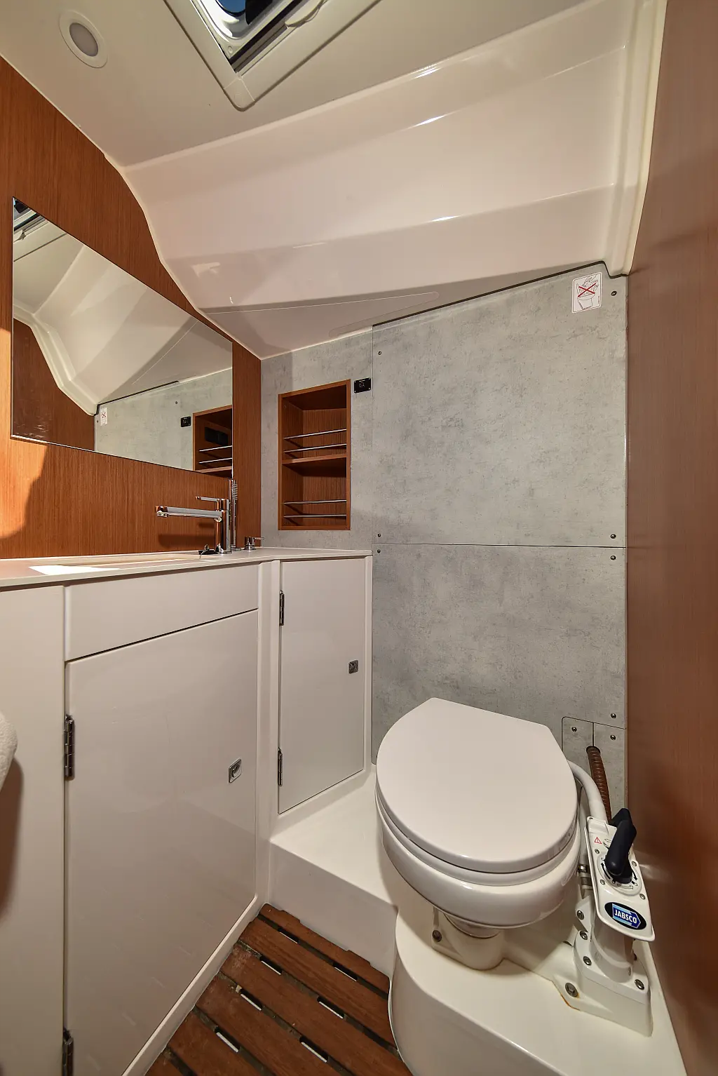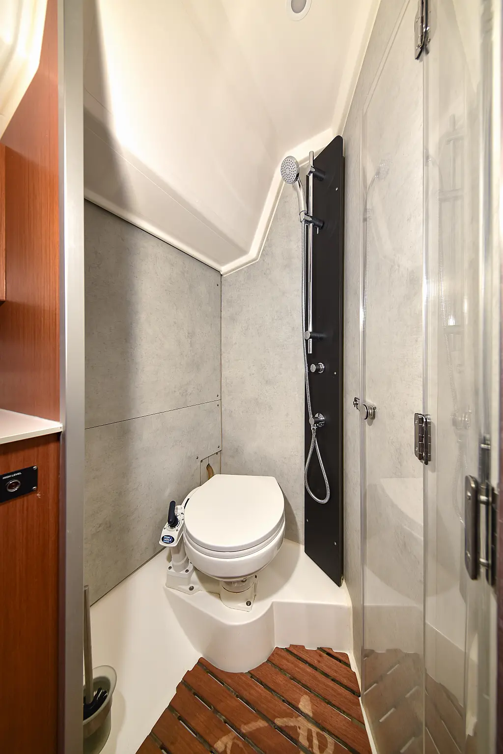 Zvučnici u kokpitu , Jastuci u kokpitu , Bimini , Platforma za plivanje , Hladnjak , Sprayhood , Wi-Fi i internet , Tikovina u kokpitu , Grijanje , Solarni paneli , Crni tank