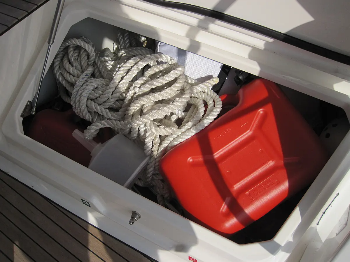 Hladnjak , Pomoćni čamac , Bimini , Zvučnici u kokpitu , Crni tank , Sprayhood , Platforma za plivanje , Jastuci u kokpitu , Električni WC
