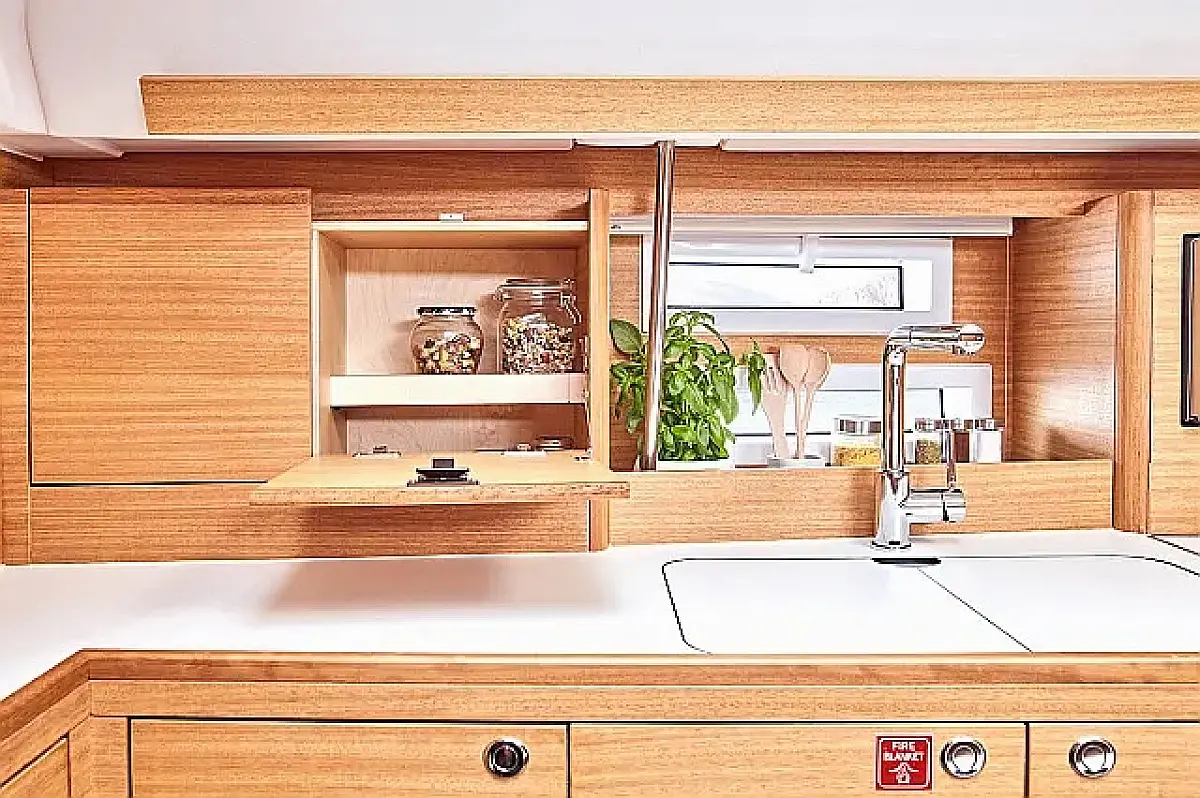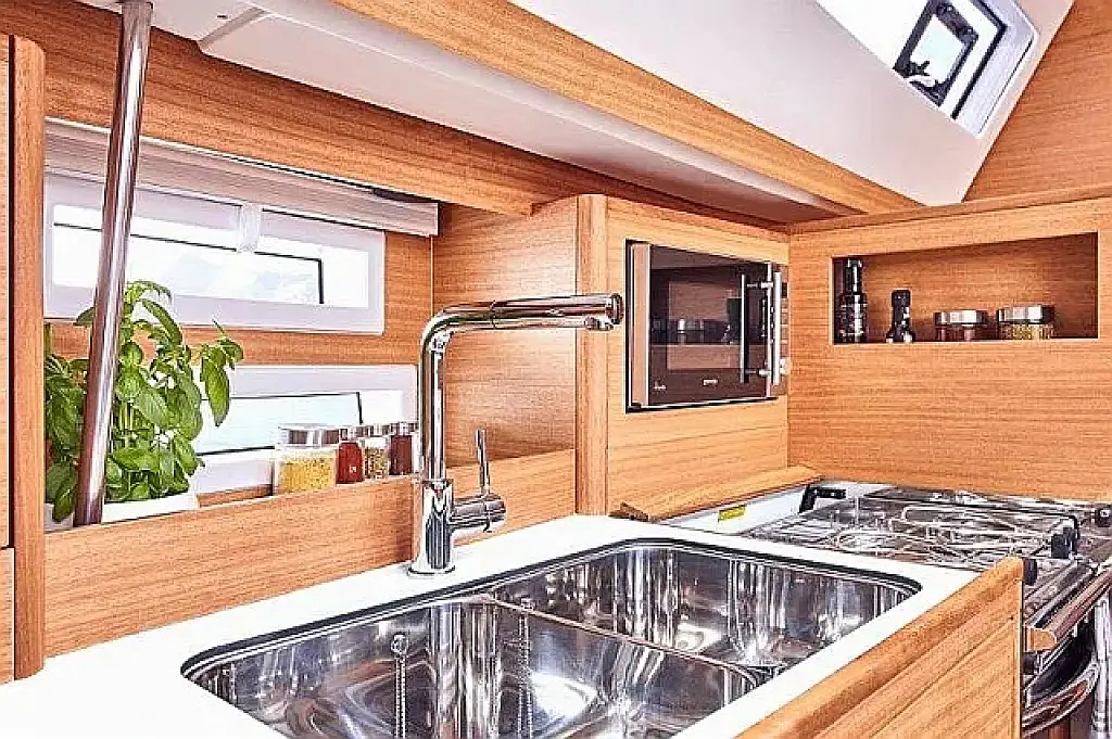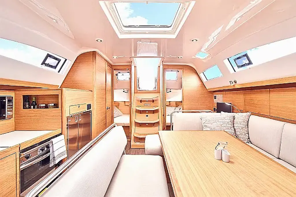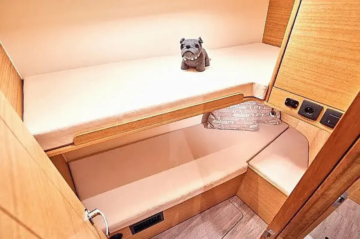 Platforma za plivanje , Bimini , Jastuci u kokpitu , Zvučnici u kokpitu , Hladnjak , Električni WC , Grijanje , Crni tank , Inverter , Sprayhood , Tikovina u kokpitu , Wi-Fi i internet