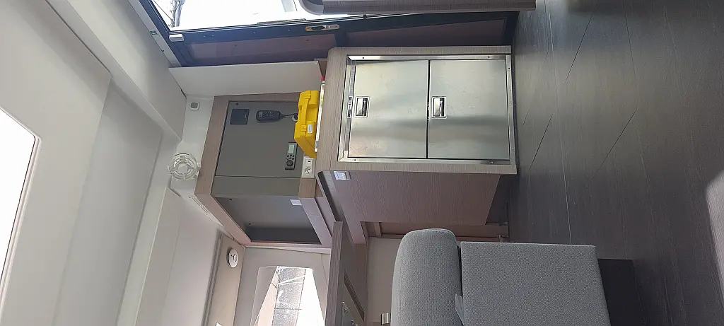 Solarni paneli																		, Vanbrodski motor																		, Hladnjak																		, Pomoćni čamac																		, Inverter																		, Električni WC																		, Grijanje																		, Električna vitla																		, Sprayhood																		, Bimini