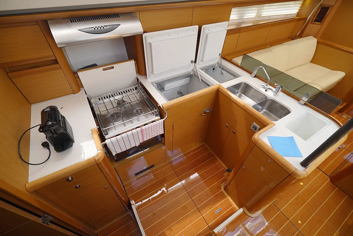 Pomoćni čamac , Električna vitla , Hladnjak , Inverter , Generator , Grijanje , Aparat za kavu , Klima , Električni WC , Ledomat , Sprayhood , Bimini , Solarni paneli