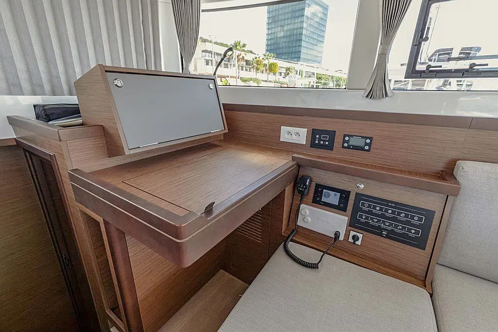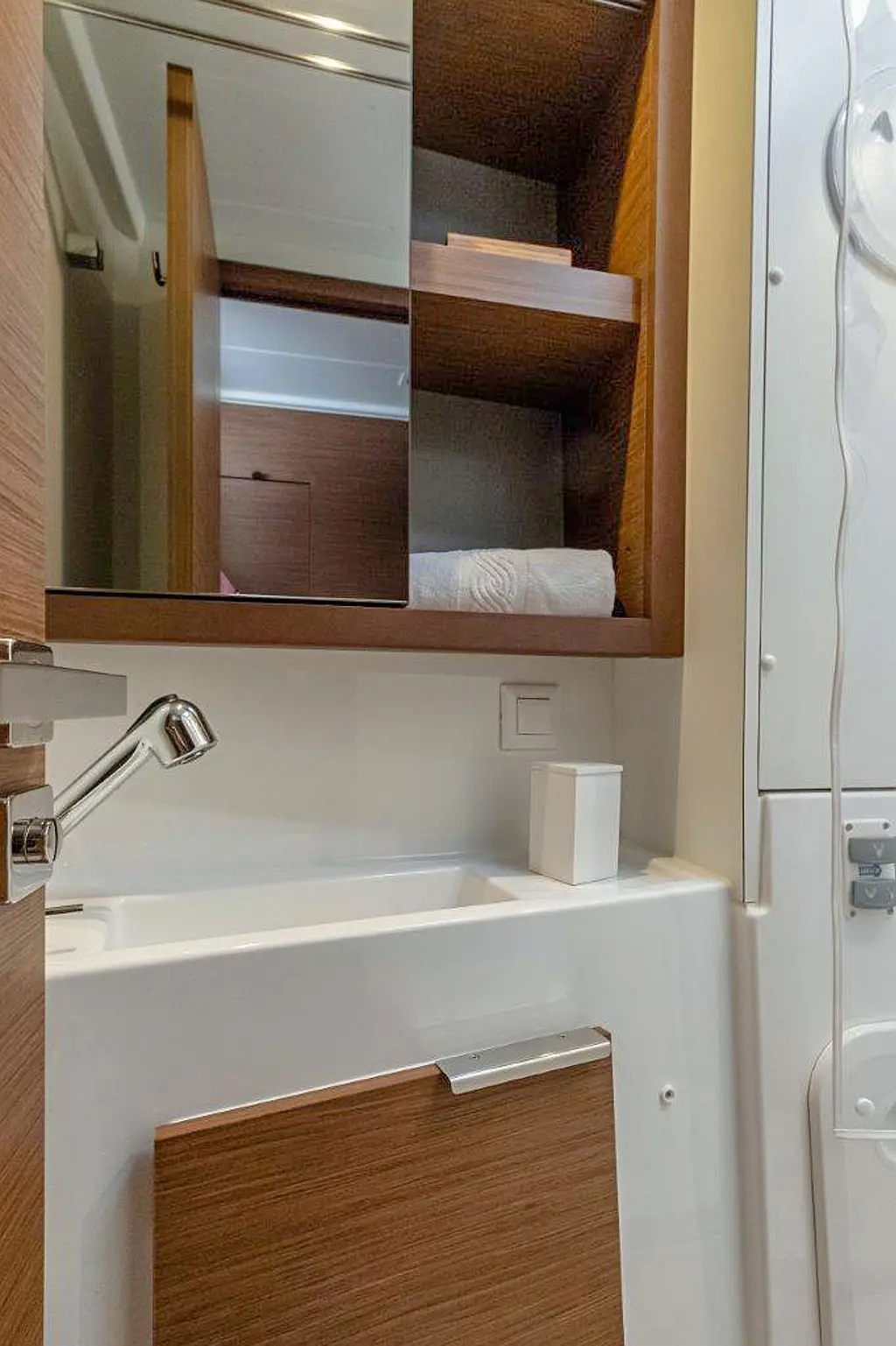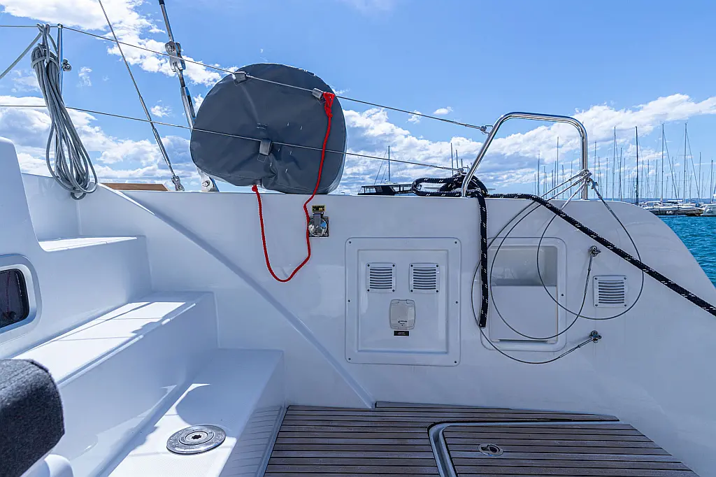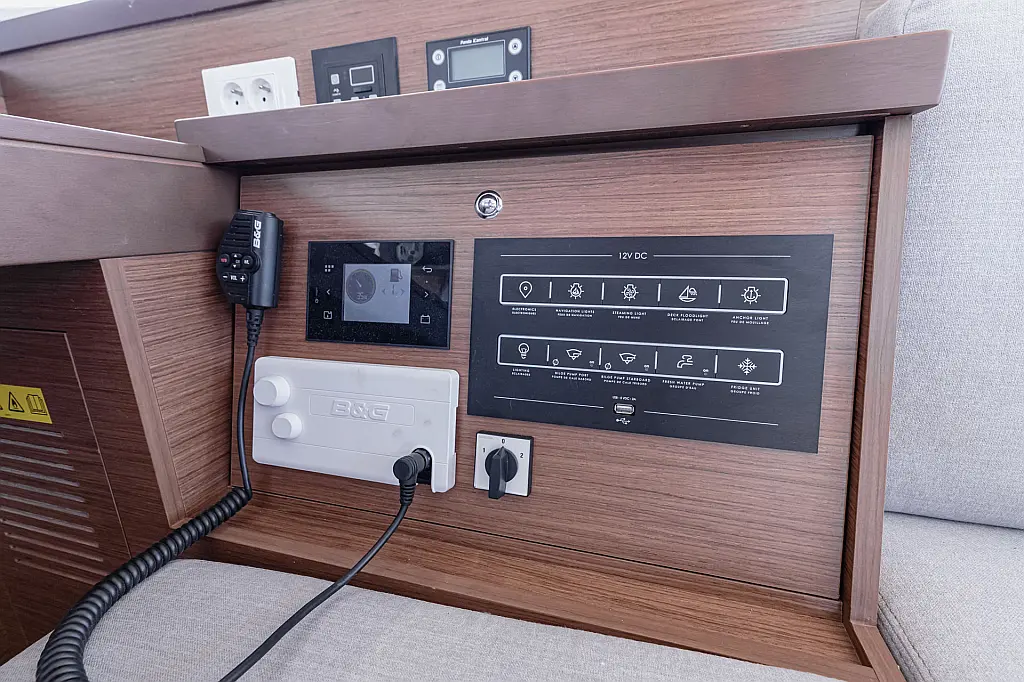 Generator , Crni tank , Klima , Grijanje , Aparat za kavu , Pomoćni čamac , Električni WC , Inverter , Bimini , Zvučnici u kokpitu , Tikovina u kokpitu , Jastuci u kokpitu , Hladnjak
