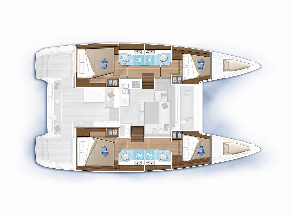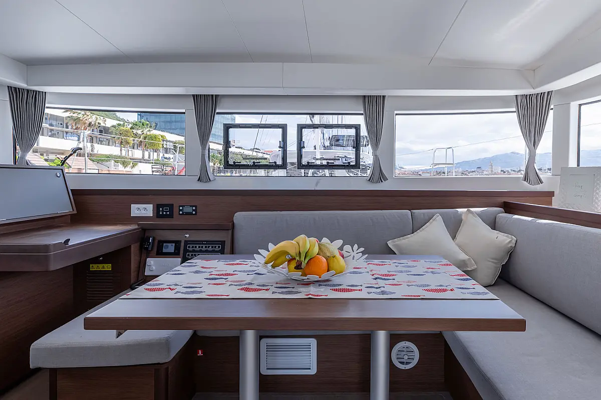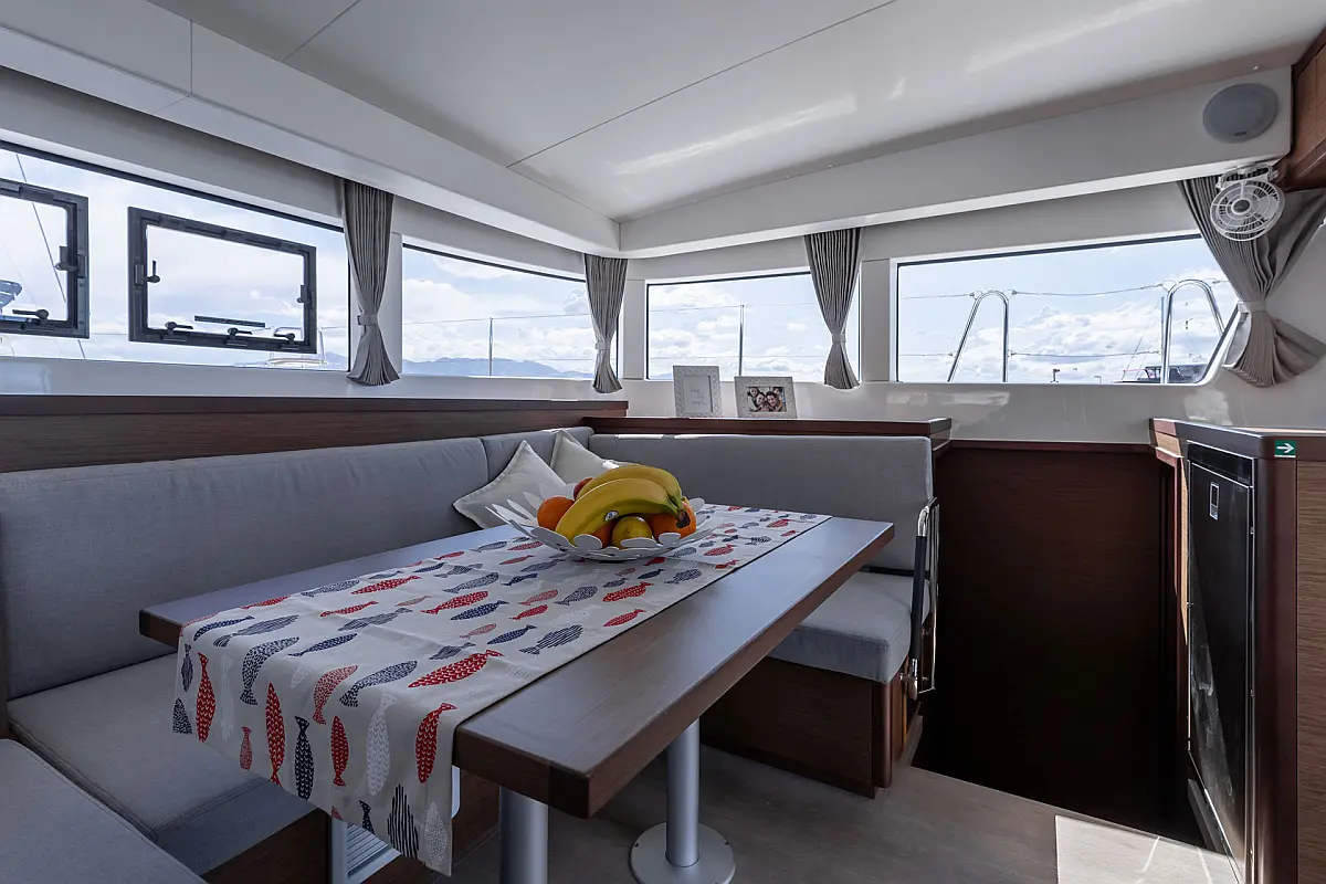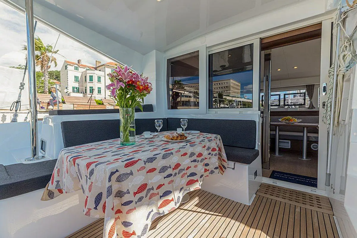 Generator , Crni tank , Klima , Grijanje , Aparat za kavu , Pomoćni čamac , Električni WC , Inverter , Bimini , Zvučnici u kokpitu , Tikovina u kokpitu , Jastuci u kokpitu , Hladnjak