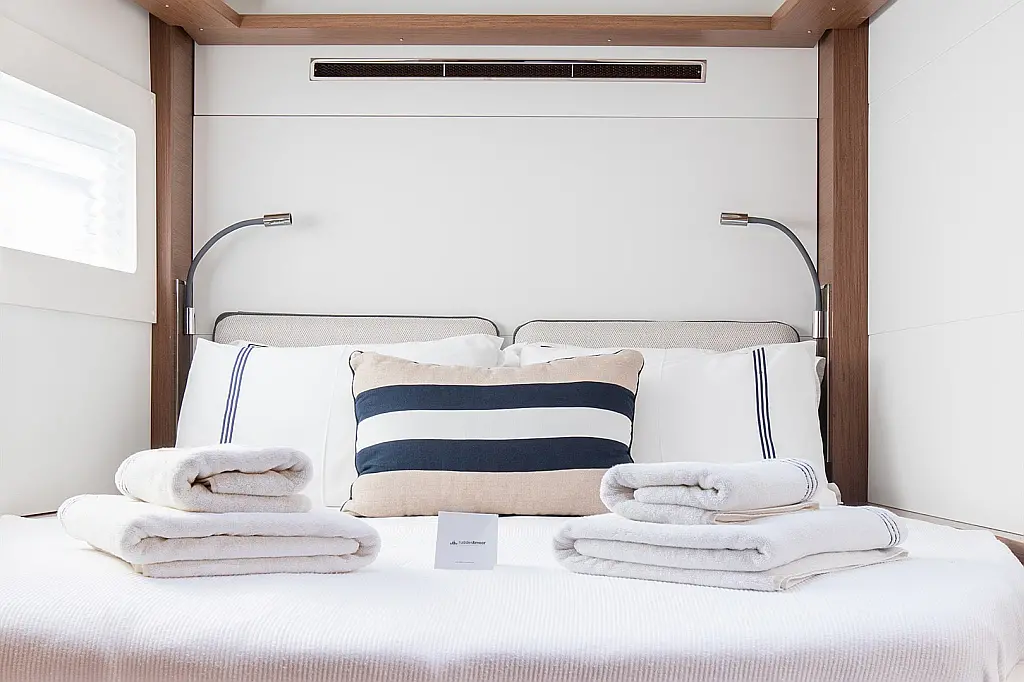 Klima , Flybridge , Desalinizator , Generator , Pomoćni čamac , Inverter , Električna vitla , Vanbrodski motor , Električni WC , Bimini , Hladnjak