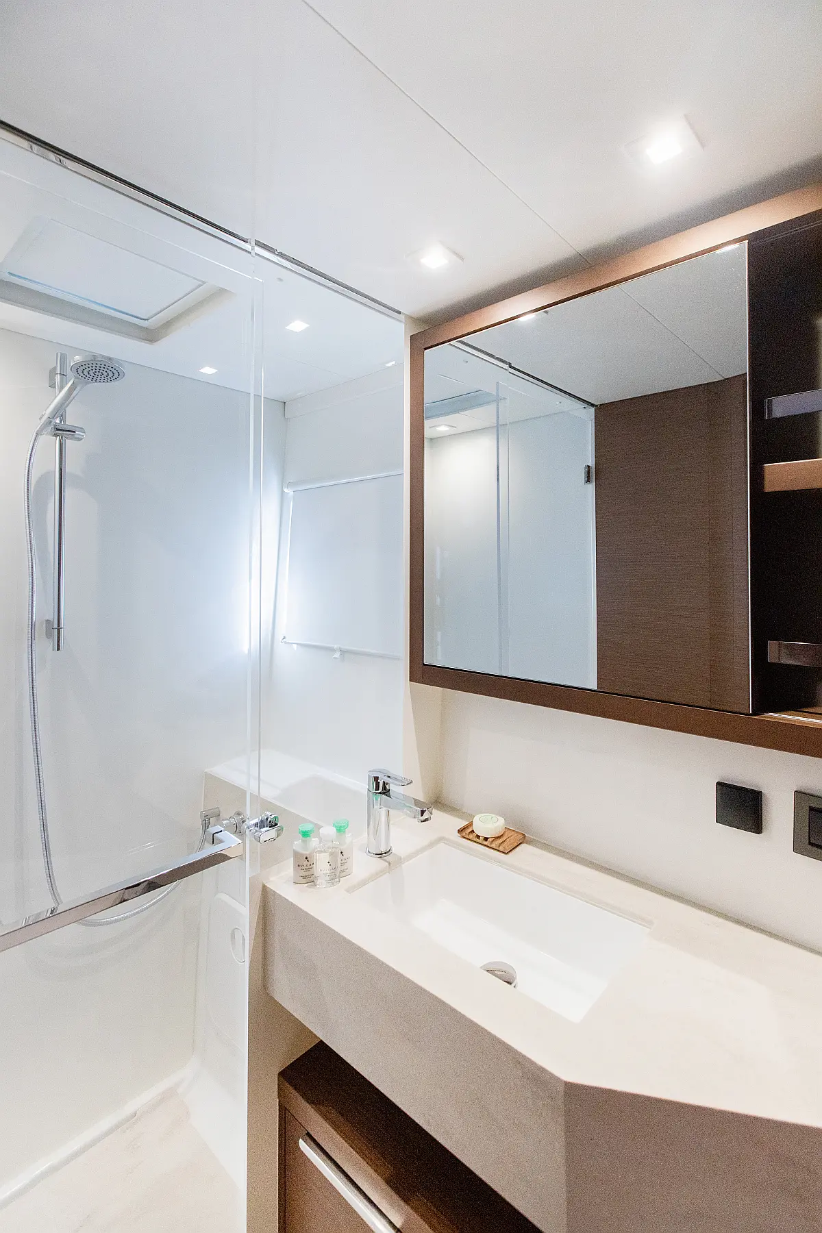 Klima , Flybridge , Desalinizator , Generator , Pomoćni čamac , Inverter , Električna vitla , Vanbrodski motor , Električni WC , Bimini , Hladnjak