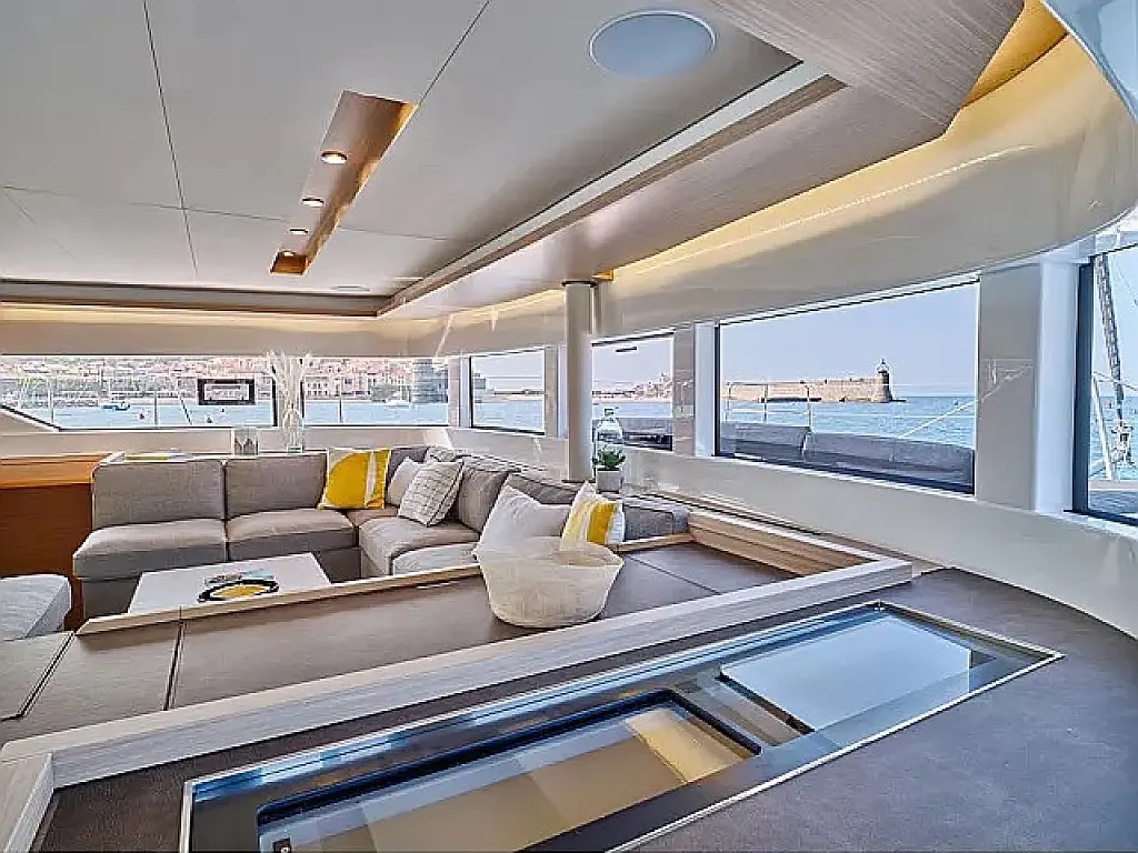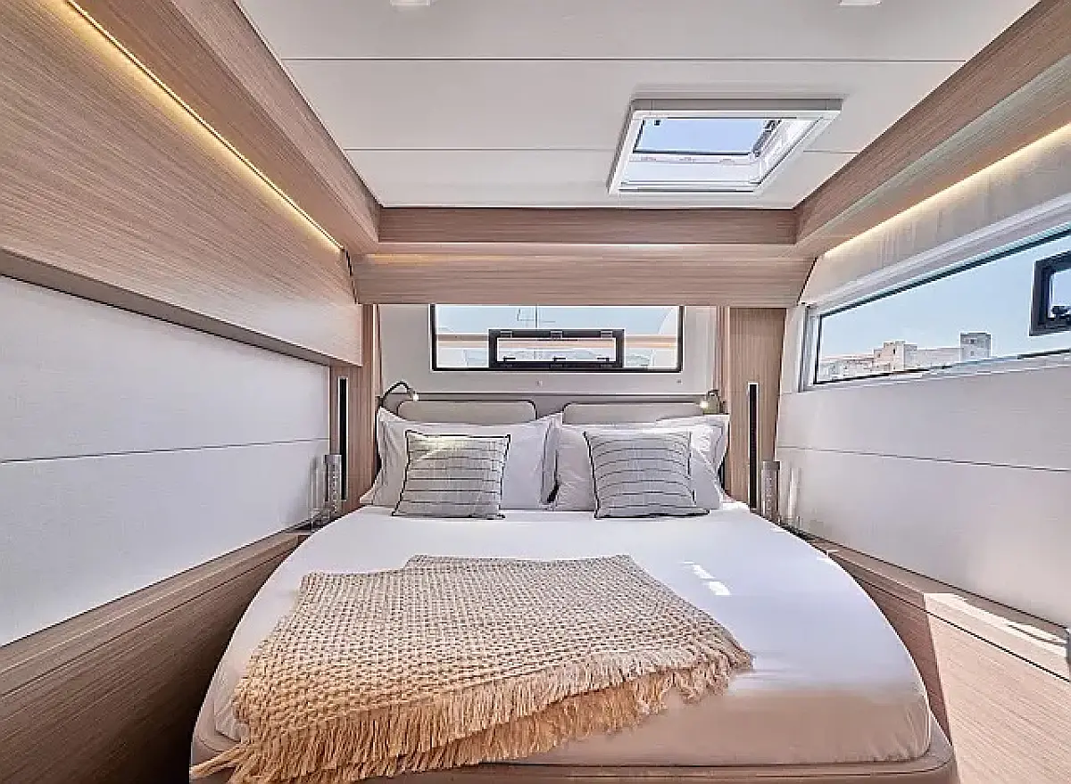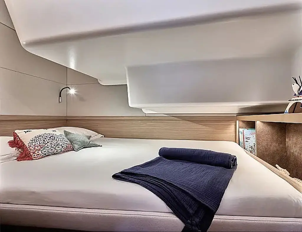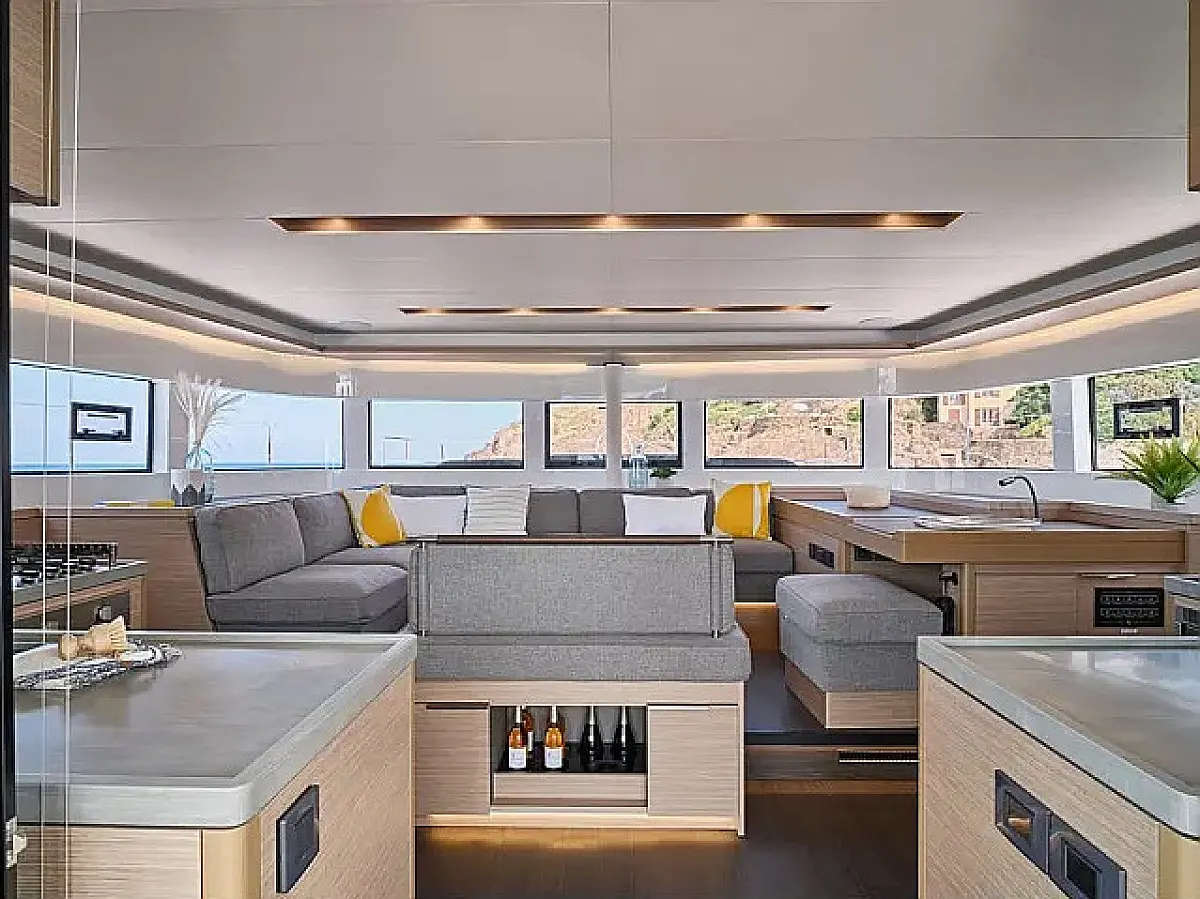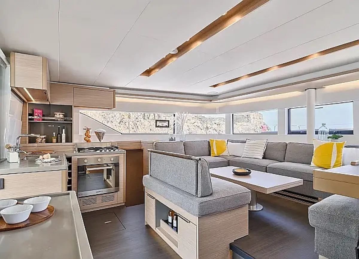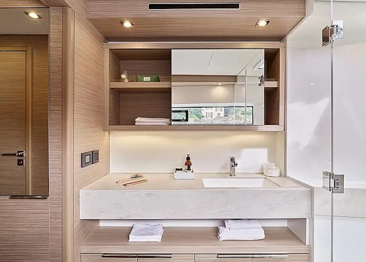 Hladnjak , Klima , Platforma za plivanje , Jastuci u kokpitu , Zvučnici u kokpitu , Pomoćni čamac , Aparat za kavu , Perilica posuđa , Električni WC , Generator , Grijanje , Crni tank , Ledomat , Vanbrodski motor , Tikovina u kokpitu , Desalinizator , Wi-Fi i internet