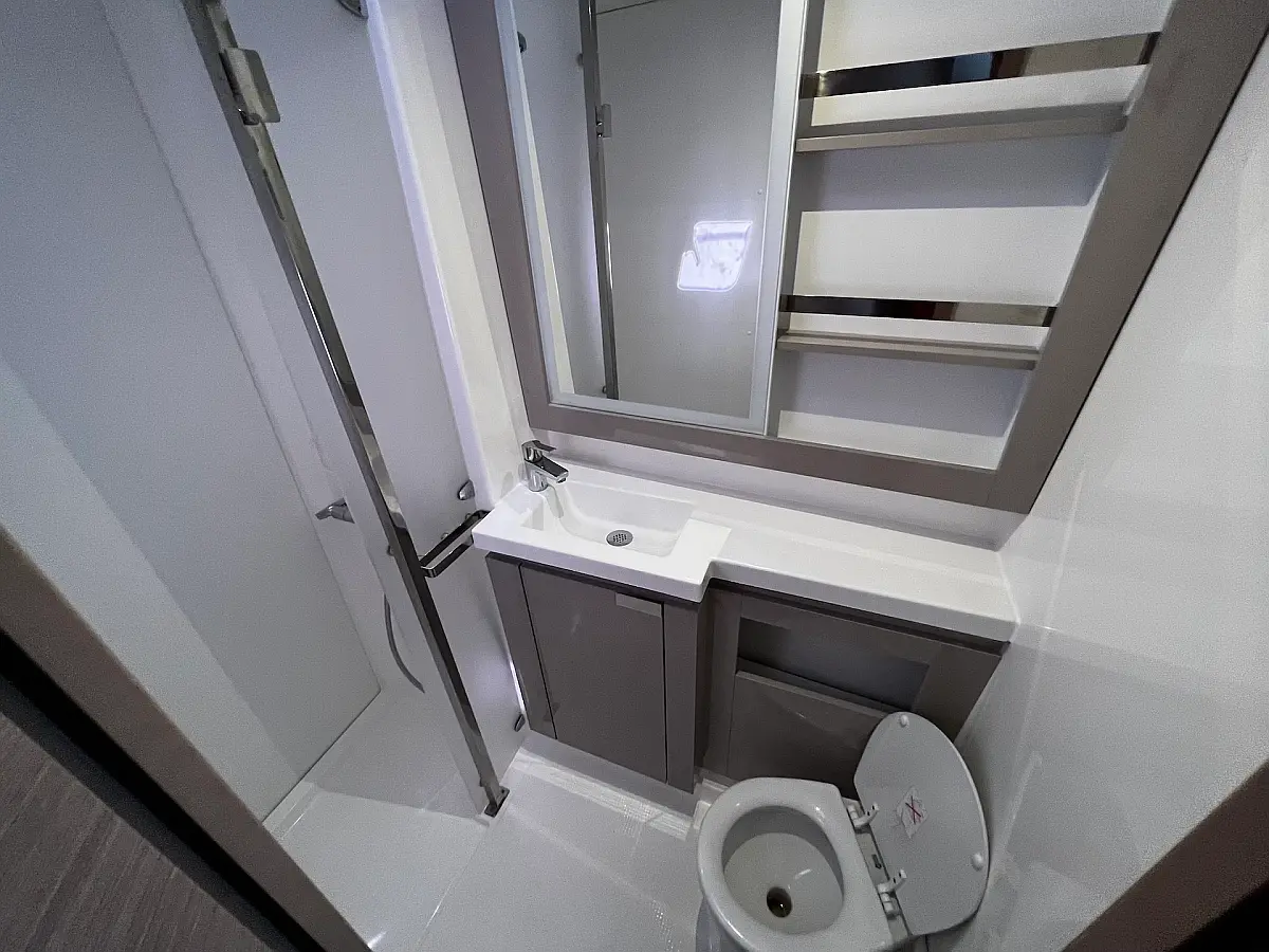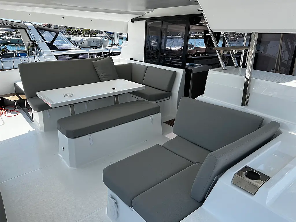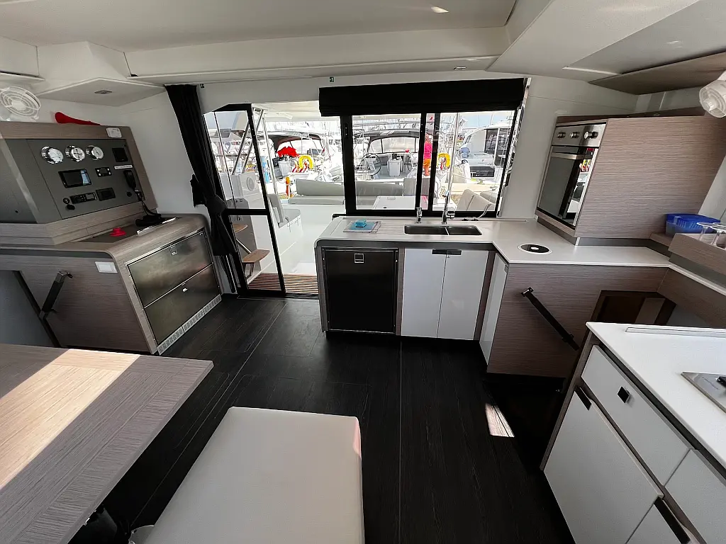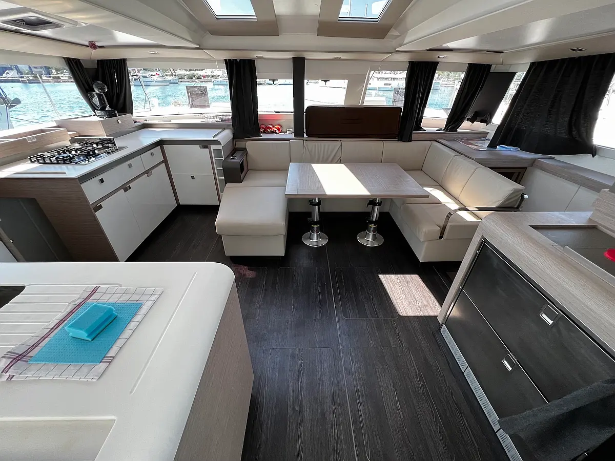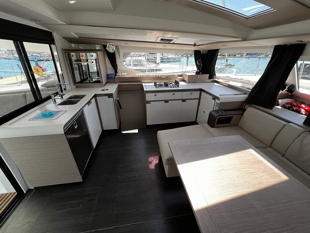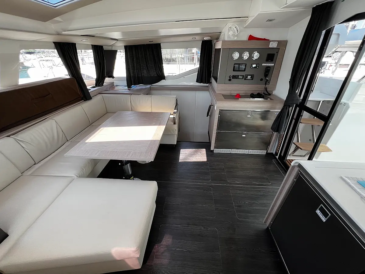 Macchina da caffè , Macchina del ghiaccio , Frigorifero , Tender , Wi-Fi e Internet , Dissalatore , Generatore , Inverter , Pannelli solari , Aria condizionata , Bimini , Piattaforma da bagno , Cuscini in pozzetto , Verricelli elettrici