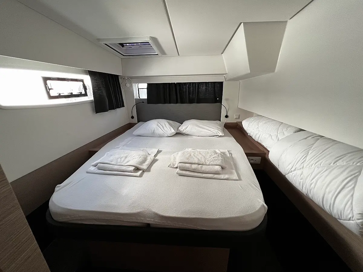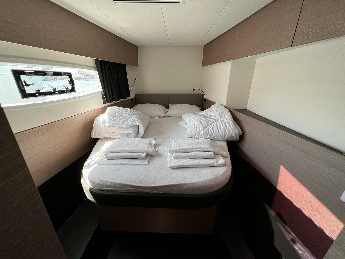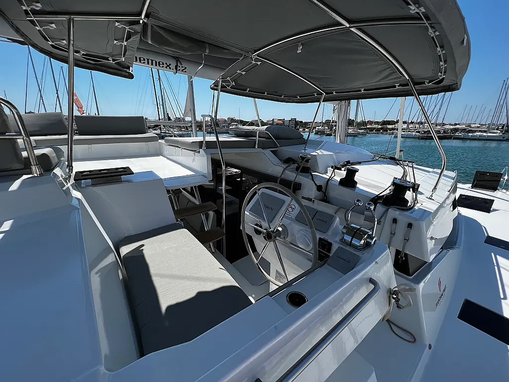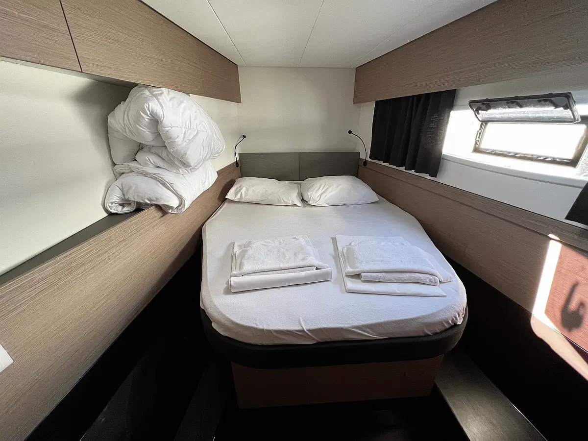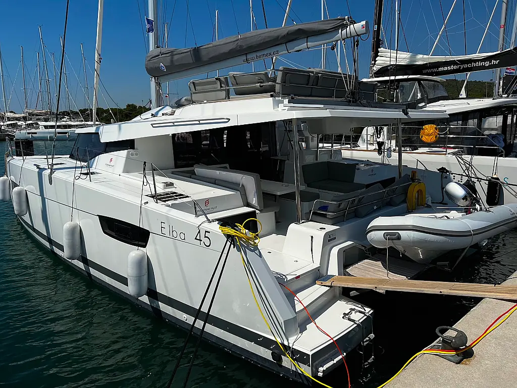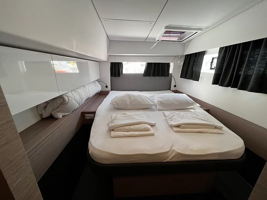 Macchina da caffè , Macchina del ghiaccio , Frigorifero , Tender , Wi-Fi e Internet , Dissalatore , Generatore , Inverter , Pannelli solari , Aria condizionata , Bimini , Piattaforma da bagno , Cuscini in pozzetto , Verricelli elettrici