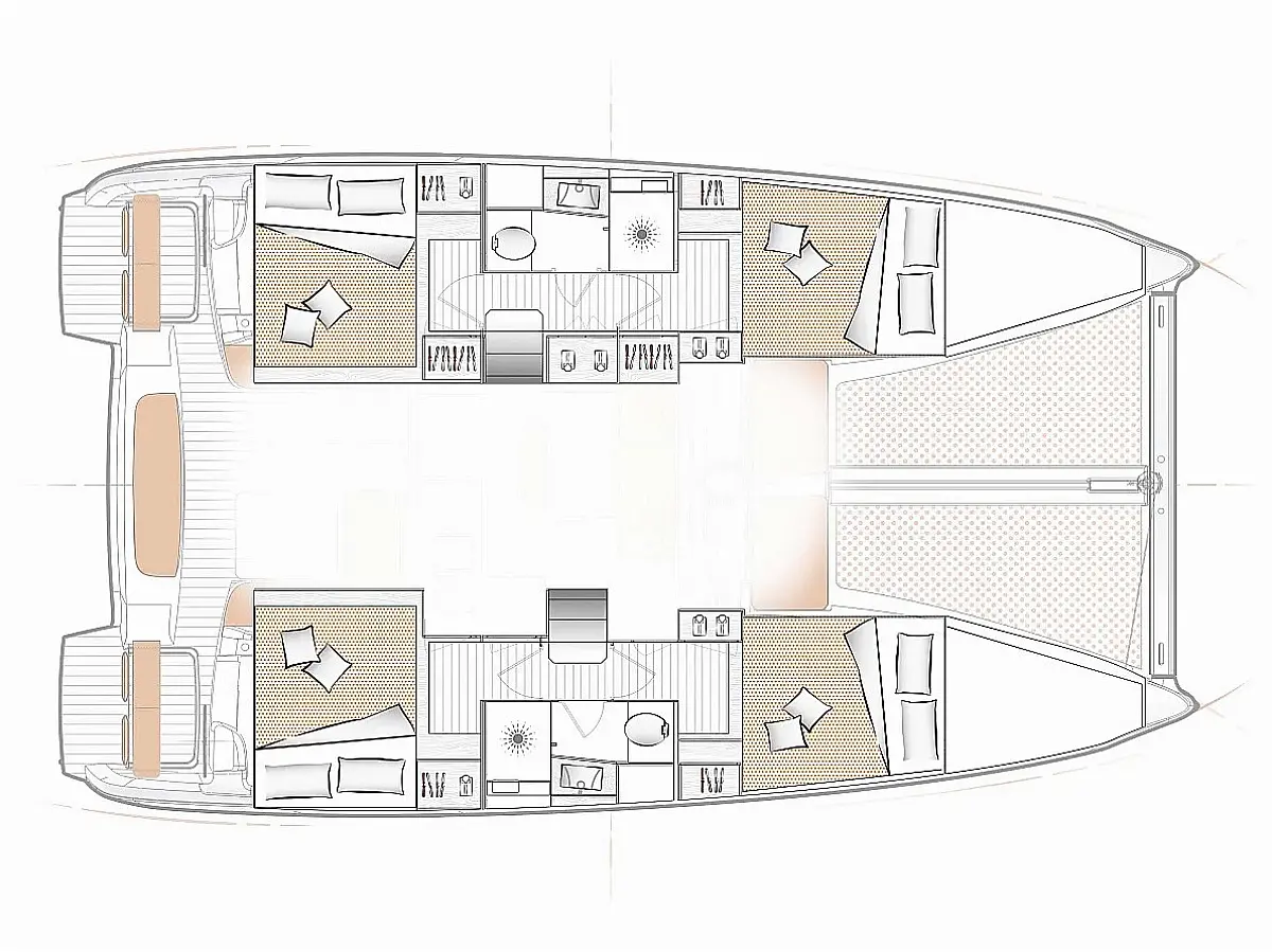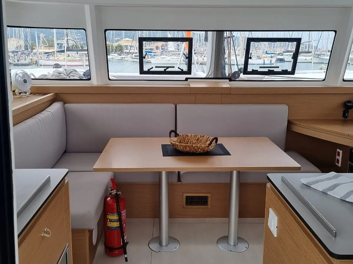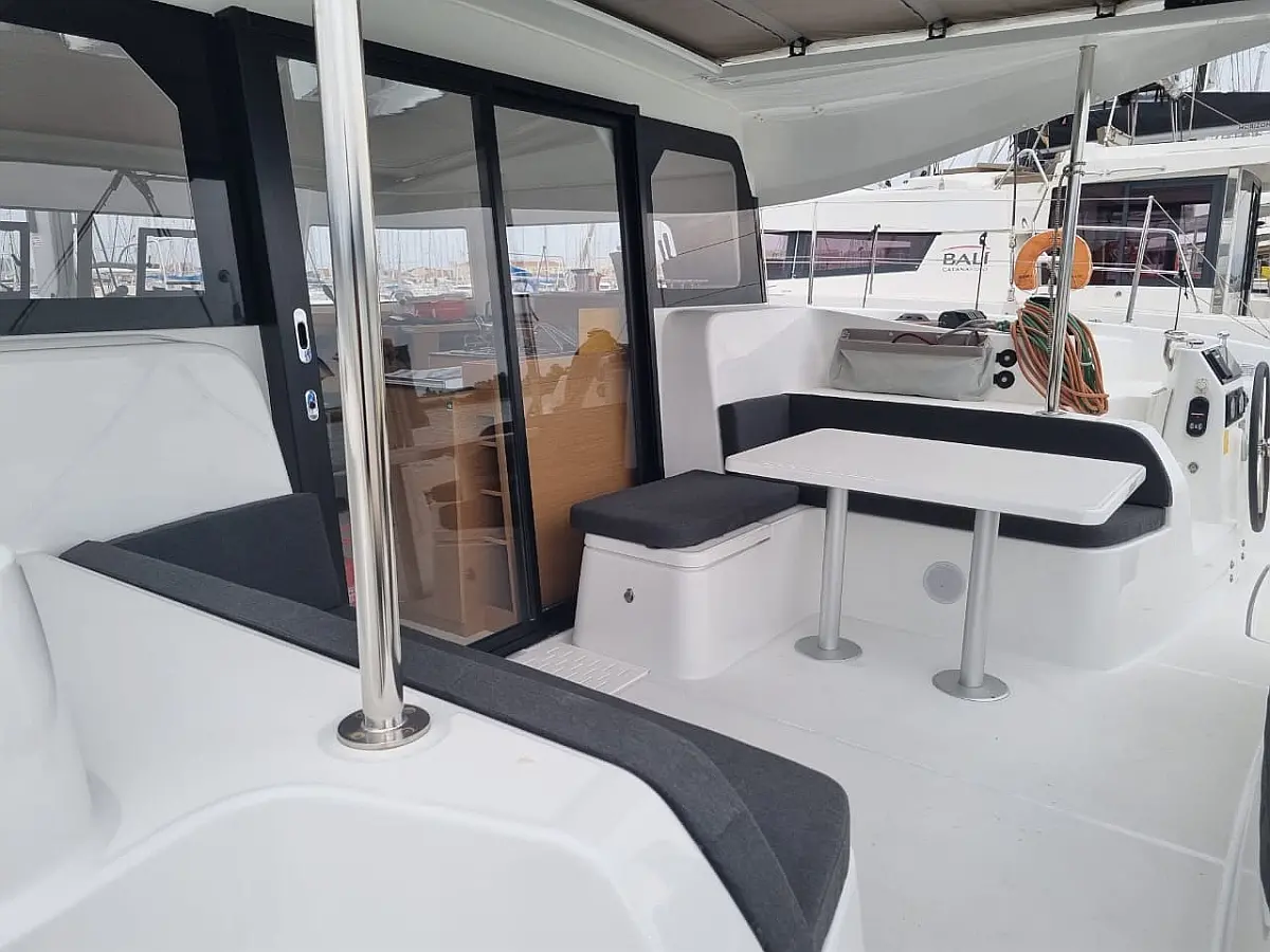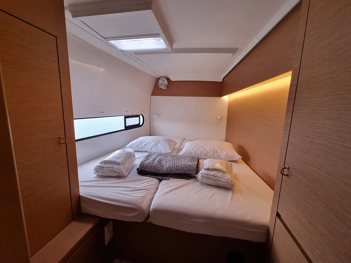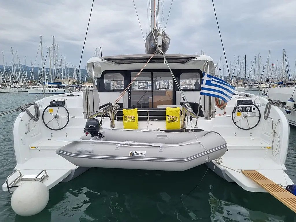 Aria condizionata , Bimini , Cuscini in pozzetto , Altoparlanti in pozzetto , Tender , Frigorifero , Generatore , Riscaldamento , Serbatoio acque nere , Inverter , Motore fuoribordo , Pannelli solari , Teak in pozzetto , Wi-Fi e Internet
