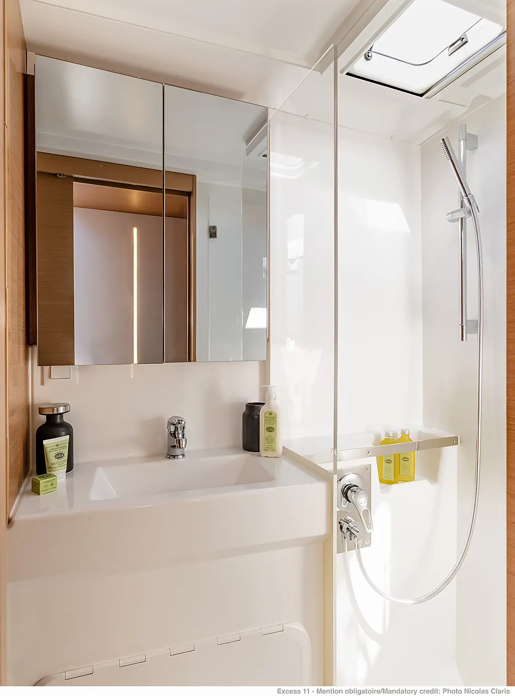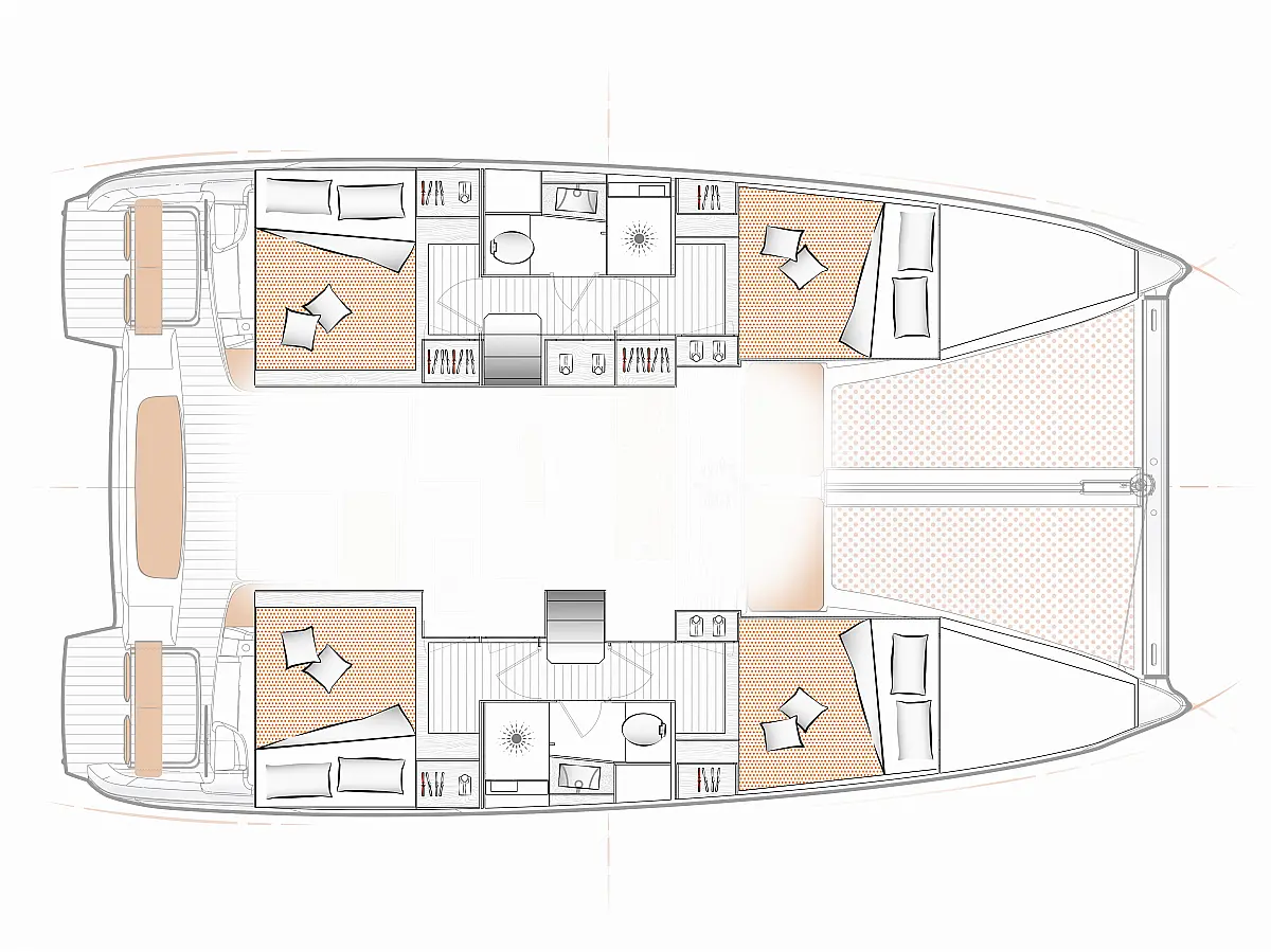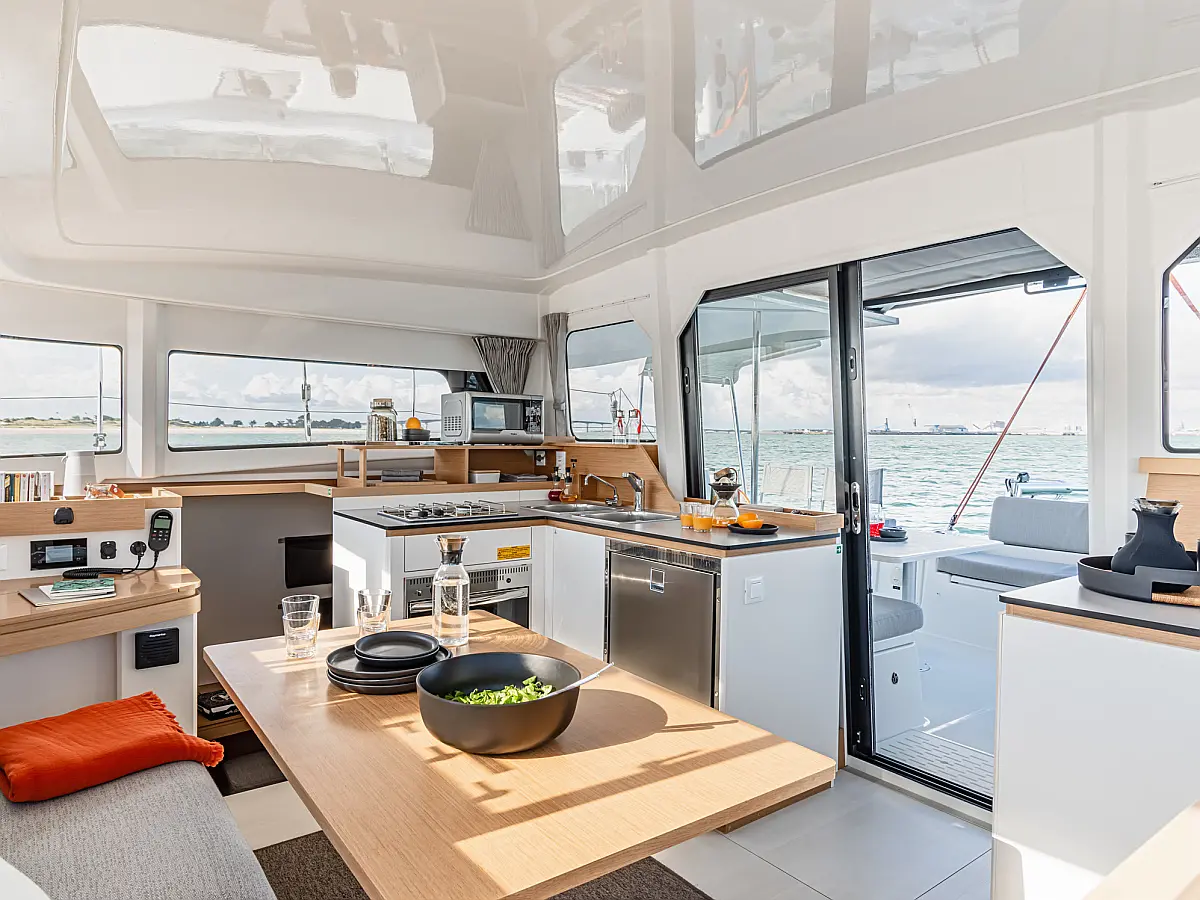 Cuscini in pozzetto , Tender , Motore fuoribordo , Verricelli elettrici , Inverter , Pannelli solari , WC elettrico , Frigorifero , Altoparlanti in pozzetto