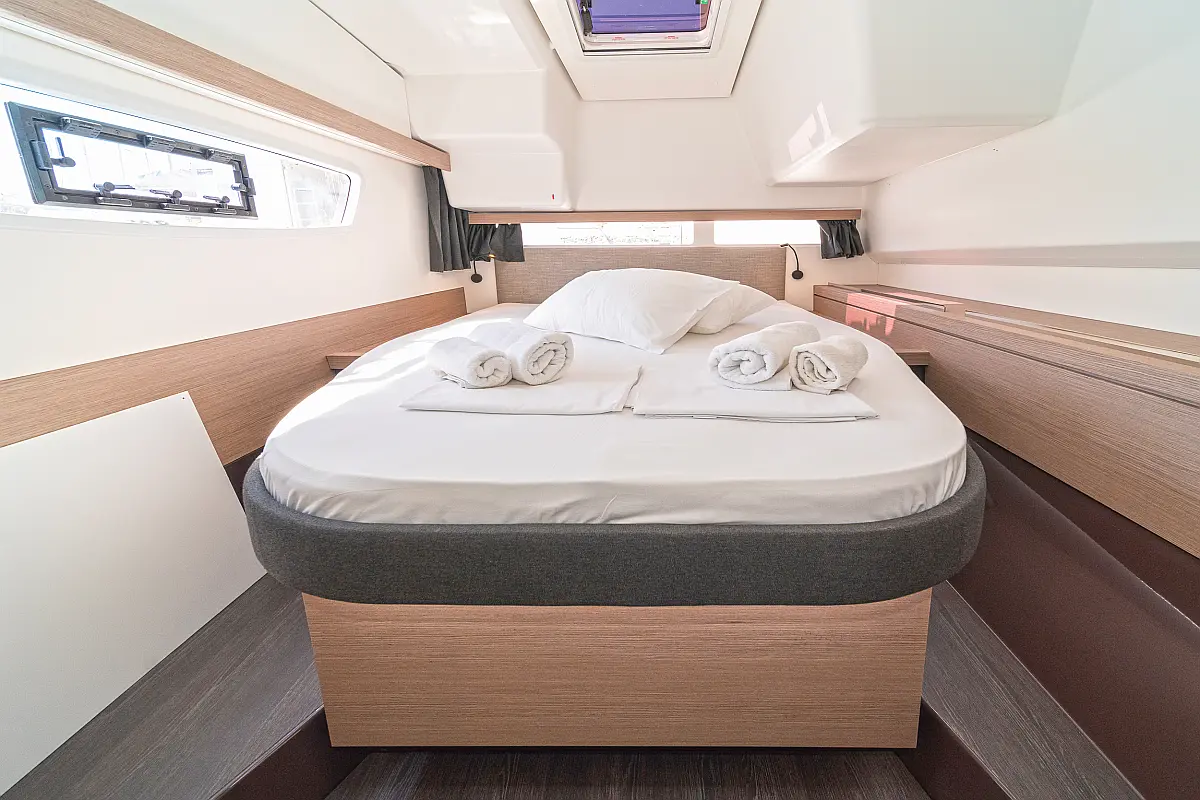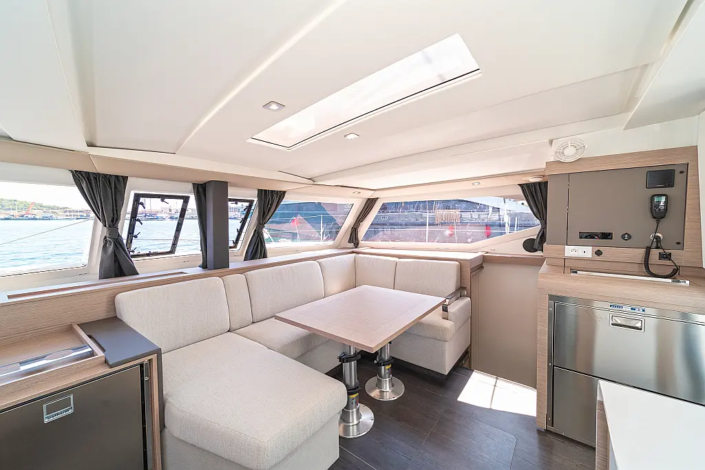 Bimini , Frigorifero , Macchina da caffè , Serbatoio acque nere , Wi-Fi e Internet , WC elettrico , Tender , Barbecue in pozzetto , Cuscini in pozzetto , Pannelli solari , Altoparlanti in pozzetto