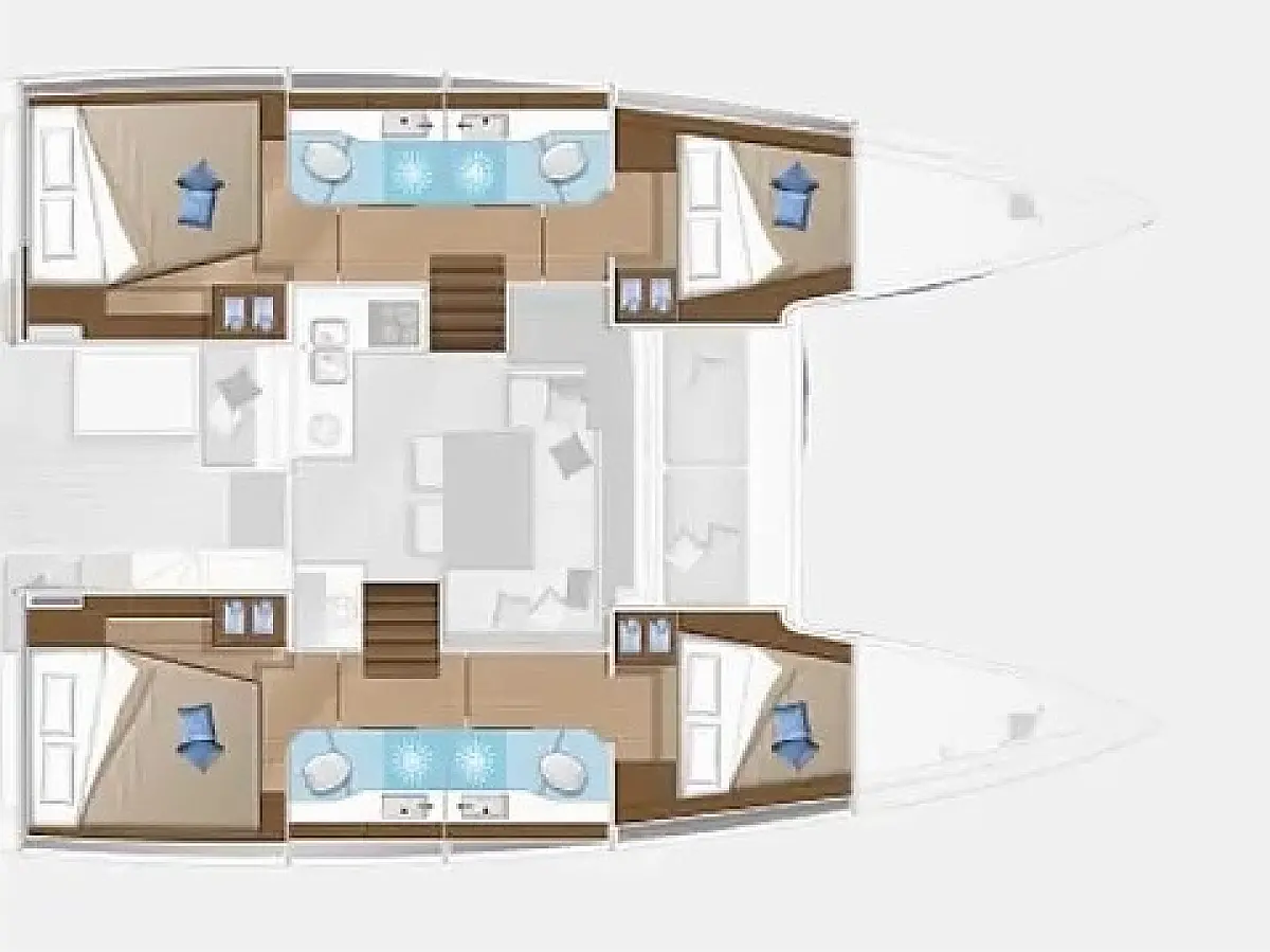 Frigorifero , Aria condizionata , Bimini , Cuscini in pozzetto , Altoparlanti in pozzetto , Tender , Macchina da caffè , WC elettrico , Generatore , Riscaldamento , Serbatoio acque nere , Motore fuoribordo , Teak in pozzetto , Wi-Fi e Internet