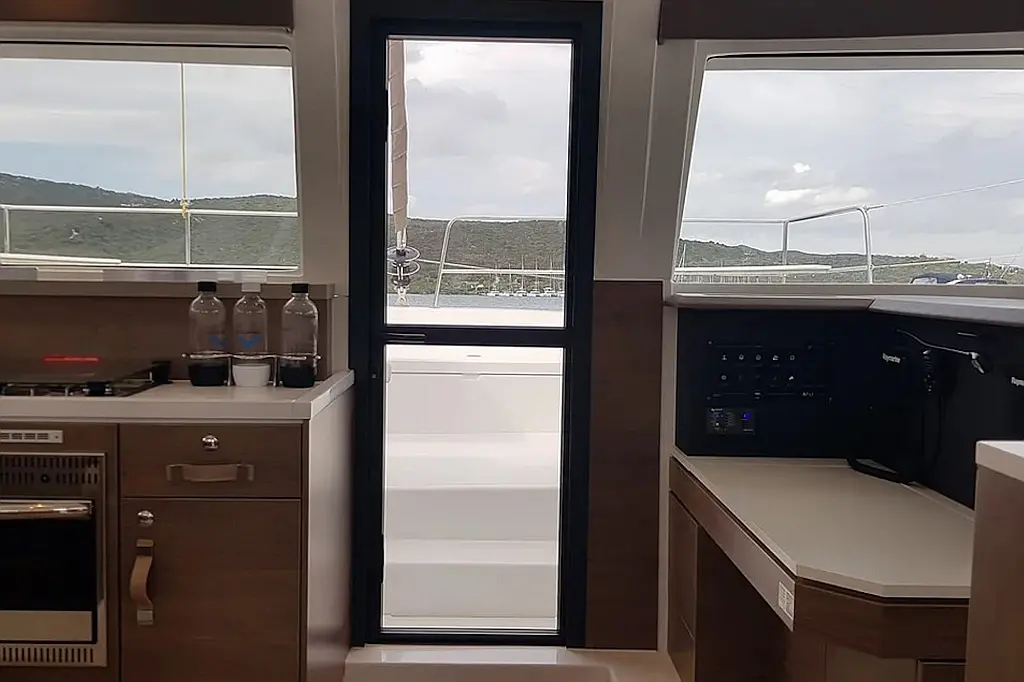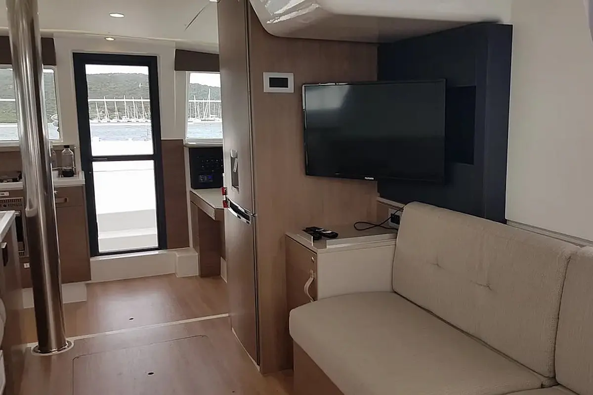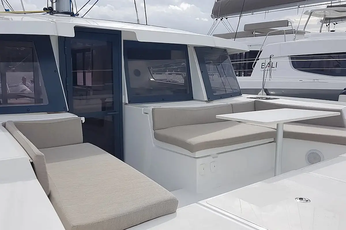 Cockpit cushions , Barbecue grill in cockpit , Electric toilet , Electric winches , Hydraulic gangway , Inverter , Solar Panels , Refrigerator