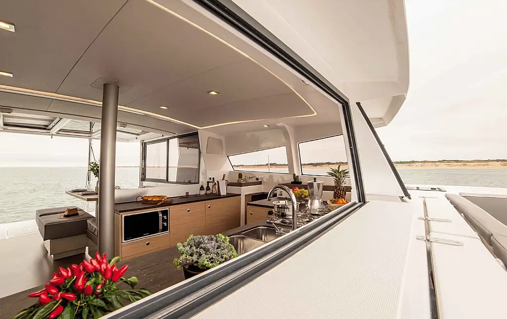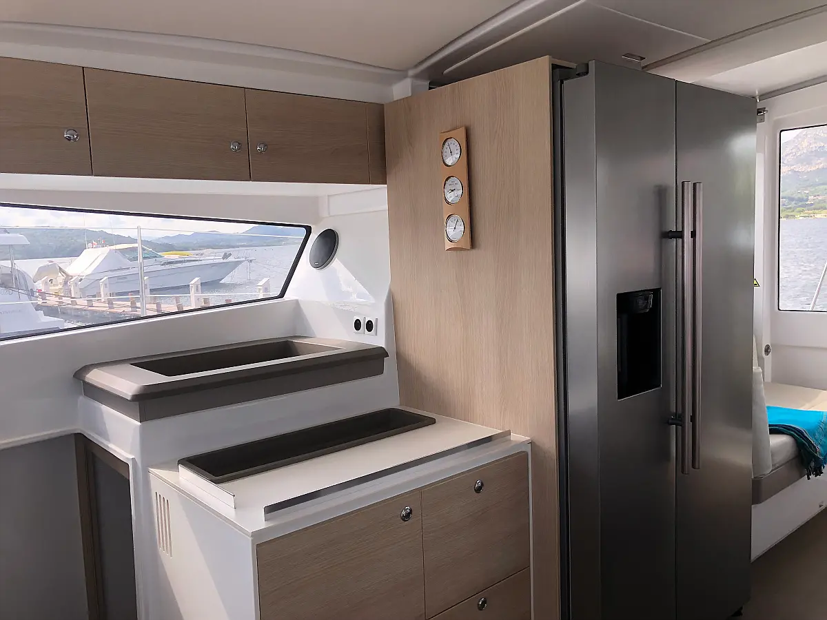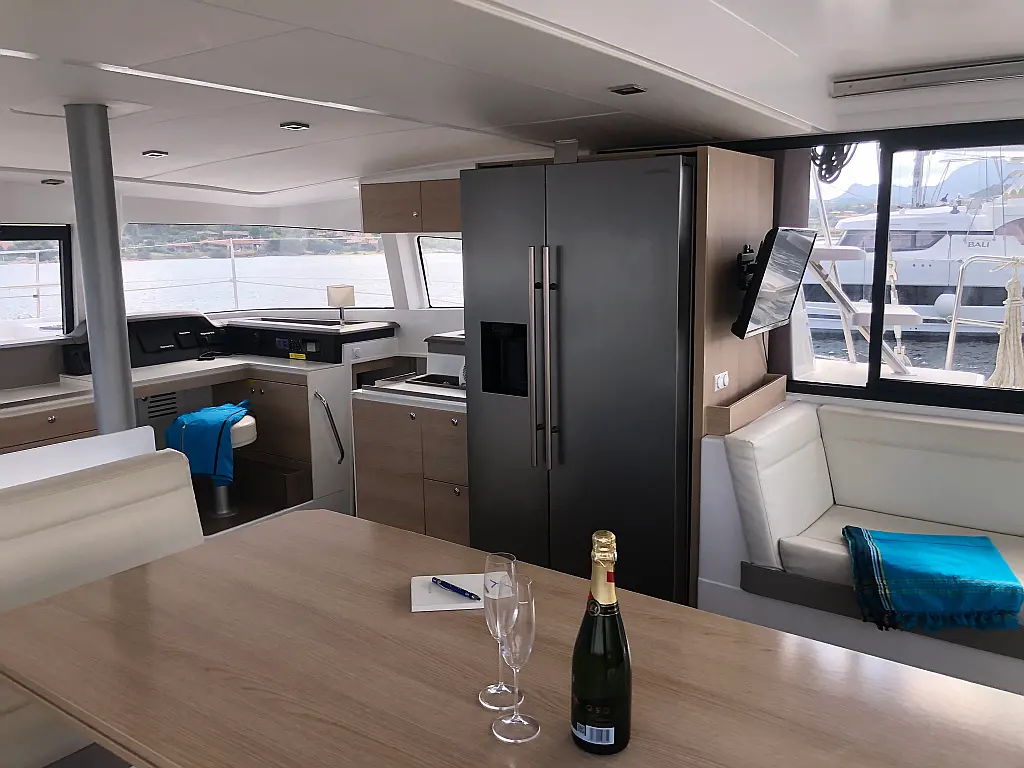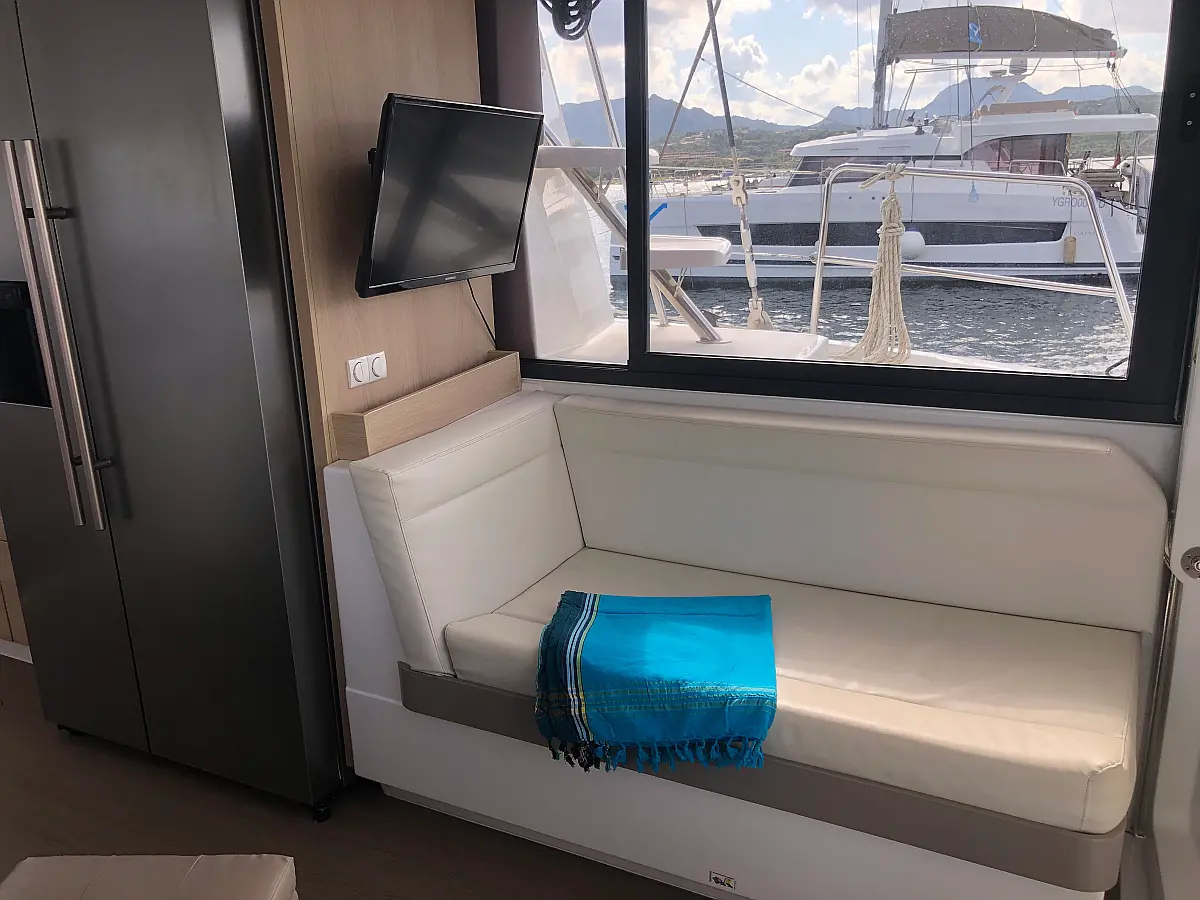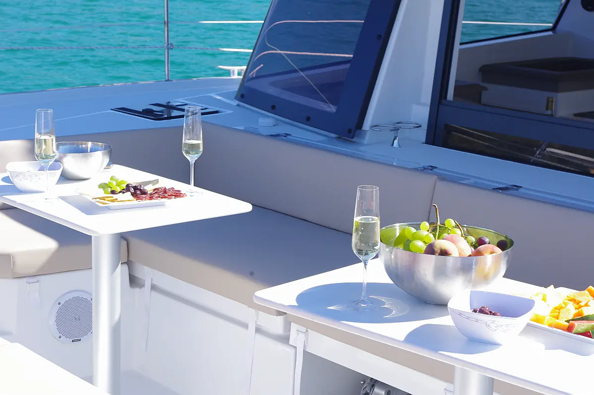Cockpit cushions , Barbecue grill in cockpit , Electric toilet , Refrigerator , Electric winches , Hydraulic gangway , Inverter , Solar Panels