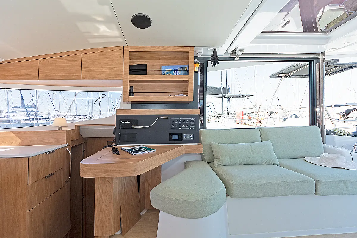 Sprayhood , Bimini , Barbecue grill in cockpit , Dinghy , Wi-Fi & Internet , Electric winches , Inverter , Electric toilet , Refrigerator , Cockpit cushions , Solar Panels , Cockpit speakers