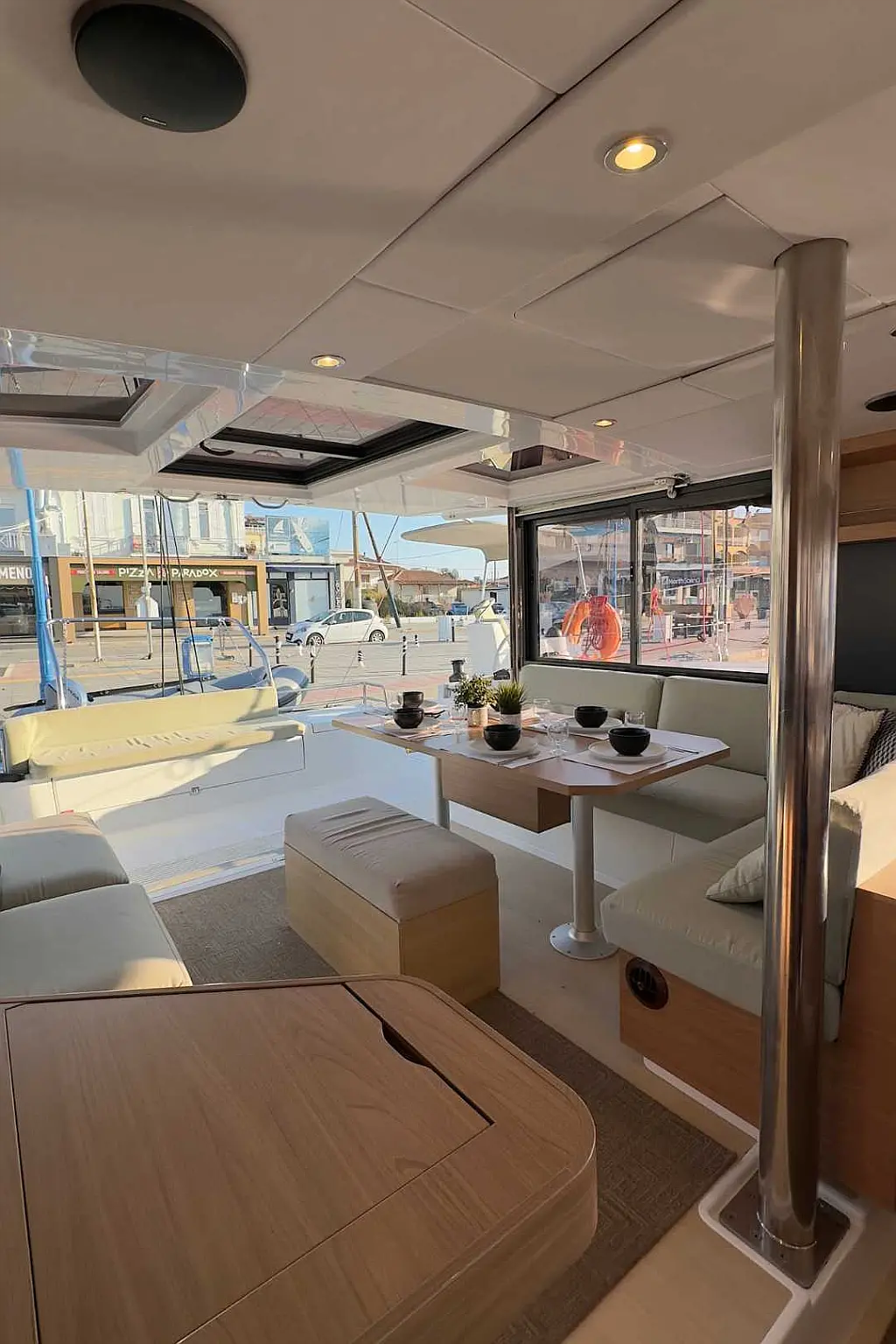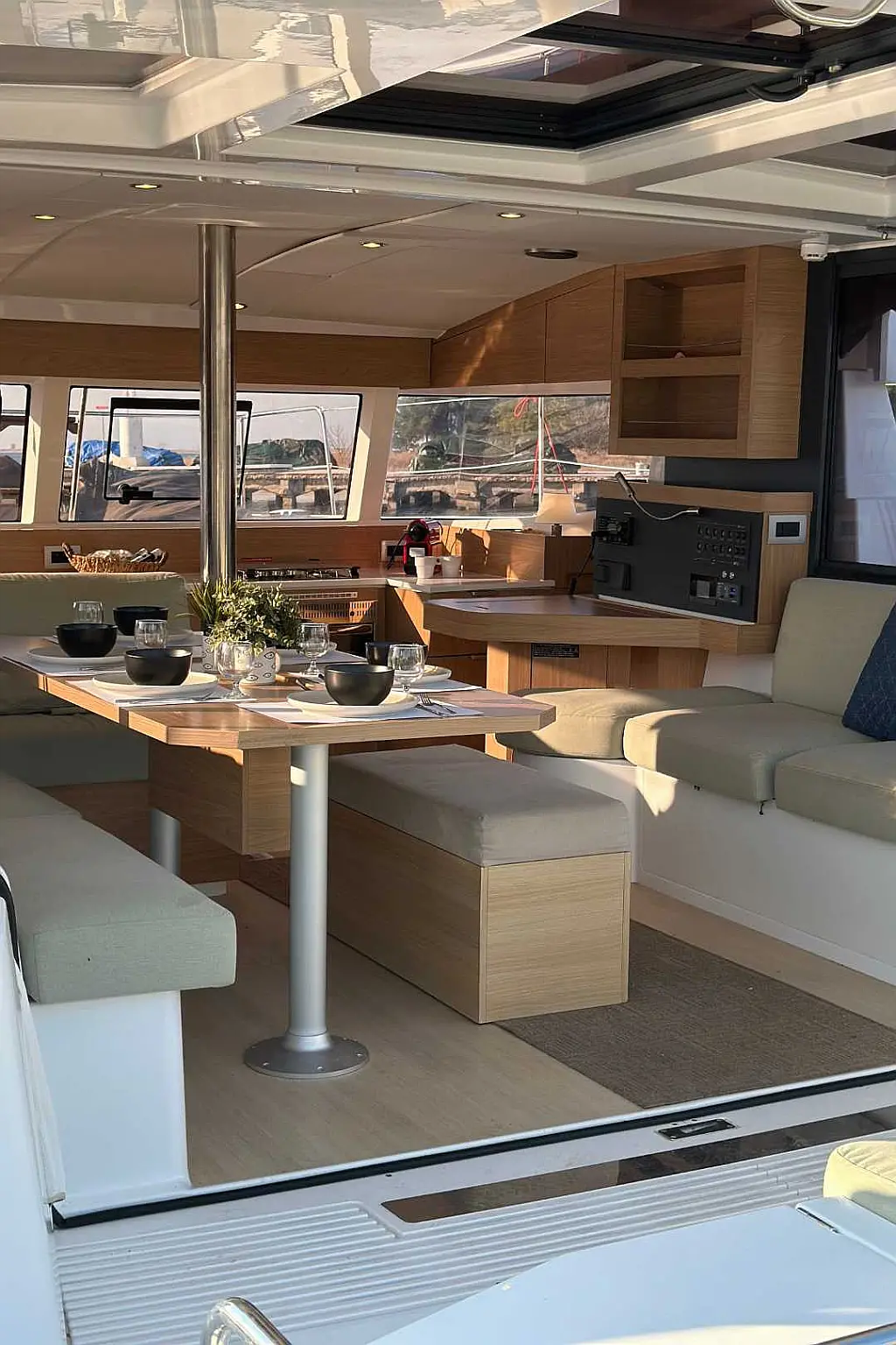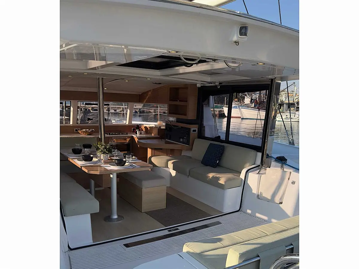 Refrigerator																		, Air condition																		, Cockpit speakers																		, Generator																		, Water maker																		, Solar Panels																		, Electric winches																		, Bimini																		, Cockpit cushions																		, Dinghy