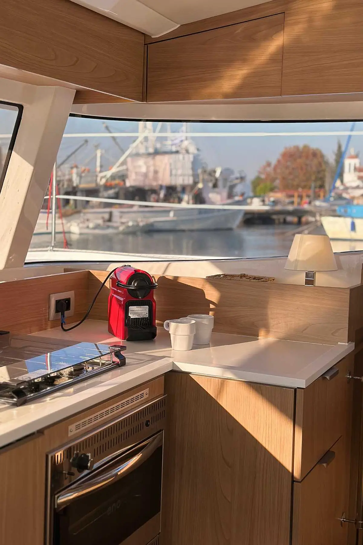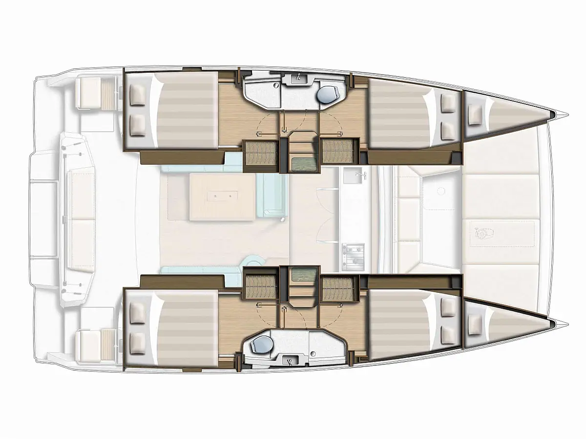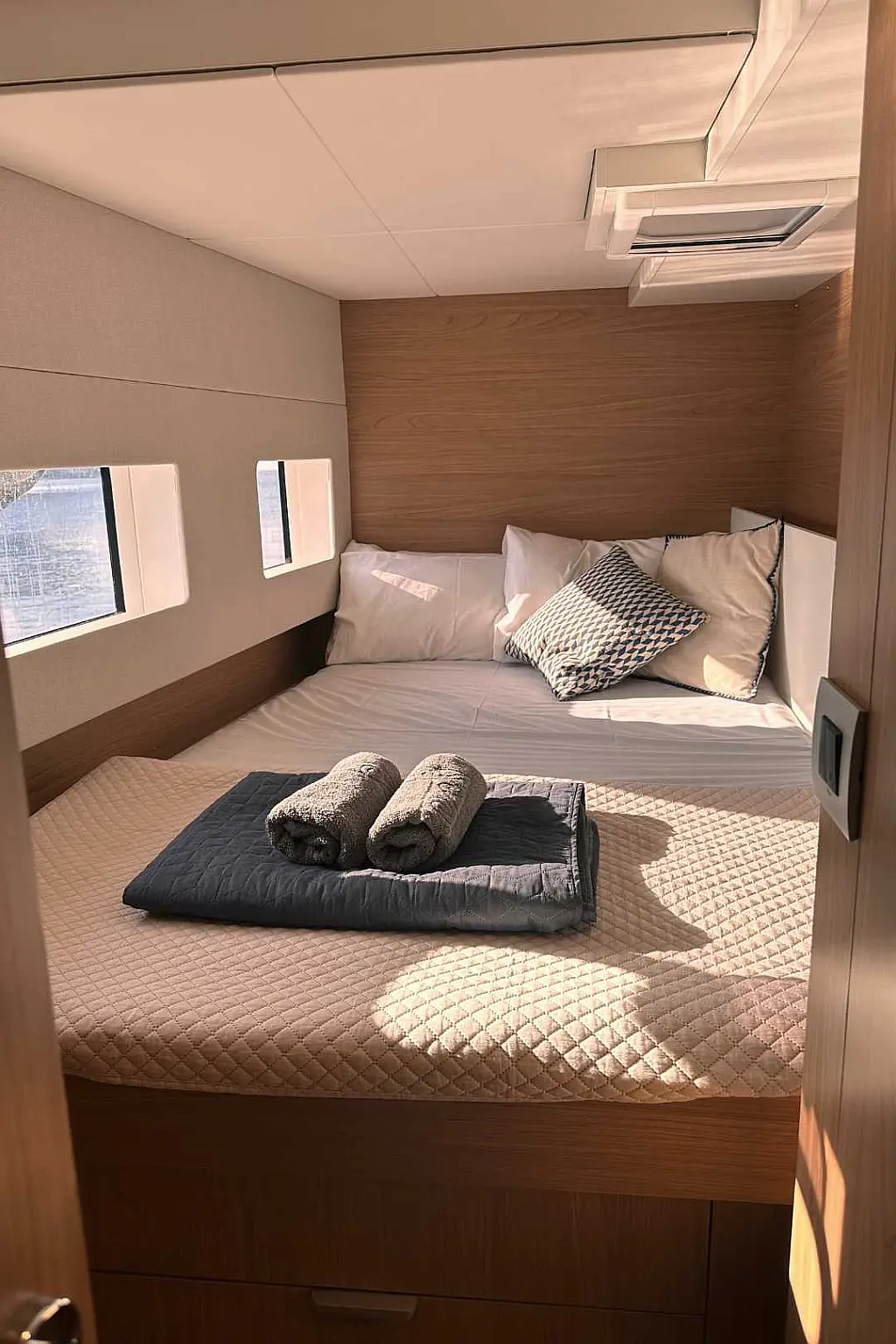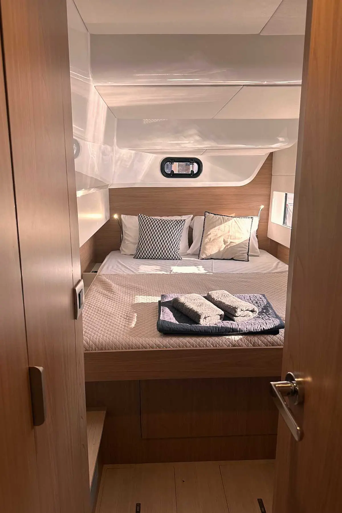 Refrigerator																		, Air condition																		, Cockpit speakers																		, Generator																		, Water maker																		, Solar Panels																		, Electric winches																		, Bimini																		, Cockpit cushions																		, Dinghy