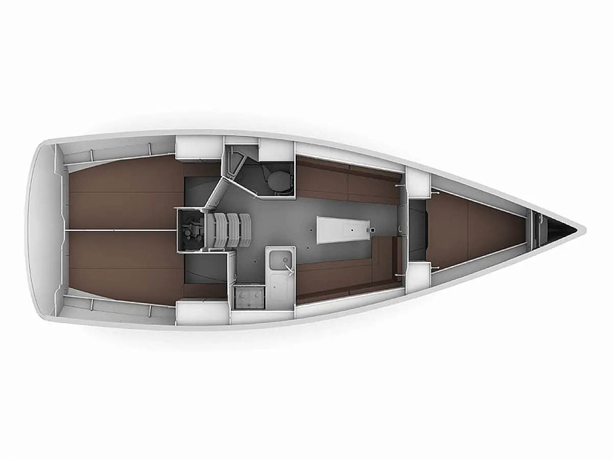 Cockpit speakers , Bimini , Swimming platform , Refrigerator , Dinghy , Sprayhood