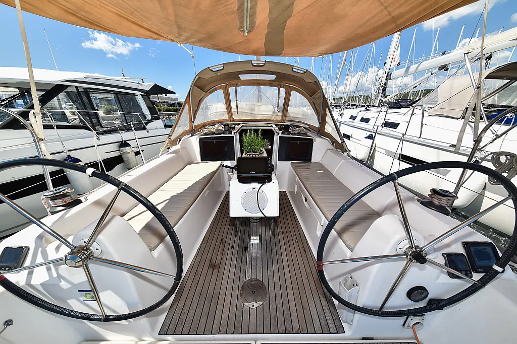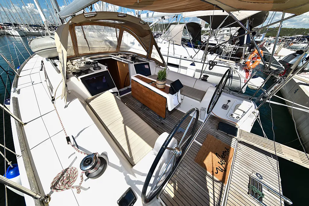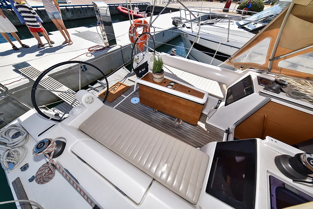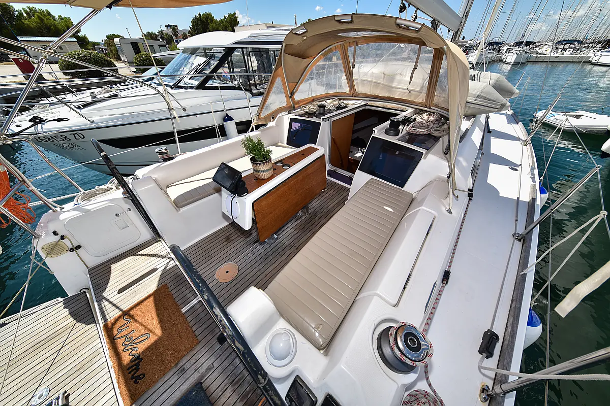 Cockpit speakers , Swimming platform , Bimini , Cockpit cushions , Refrigerator , Sprayhood , Wi-Fi & Internet , Teak Cockpit , Solar Panels , Holding tank