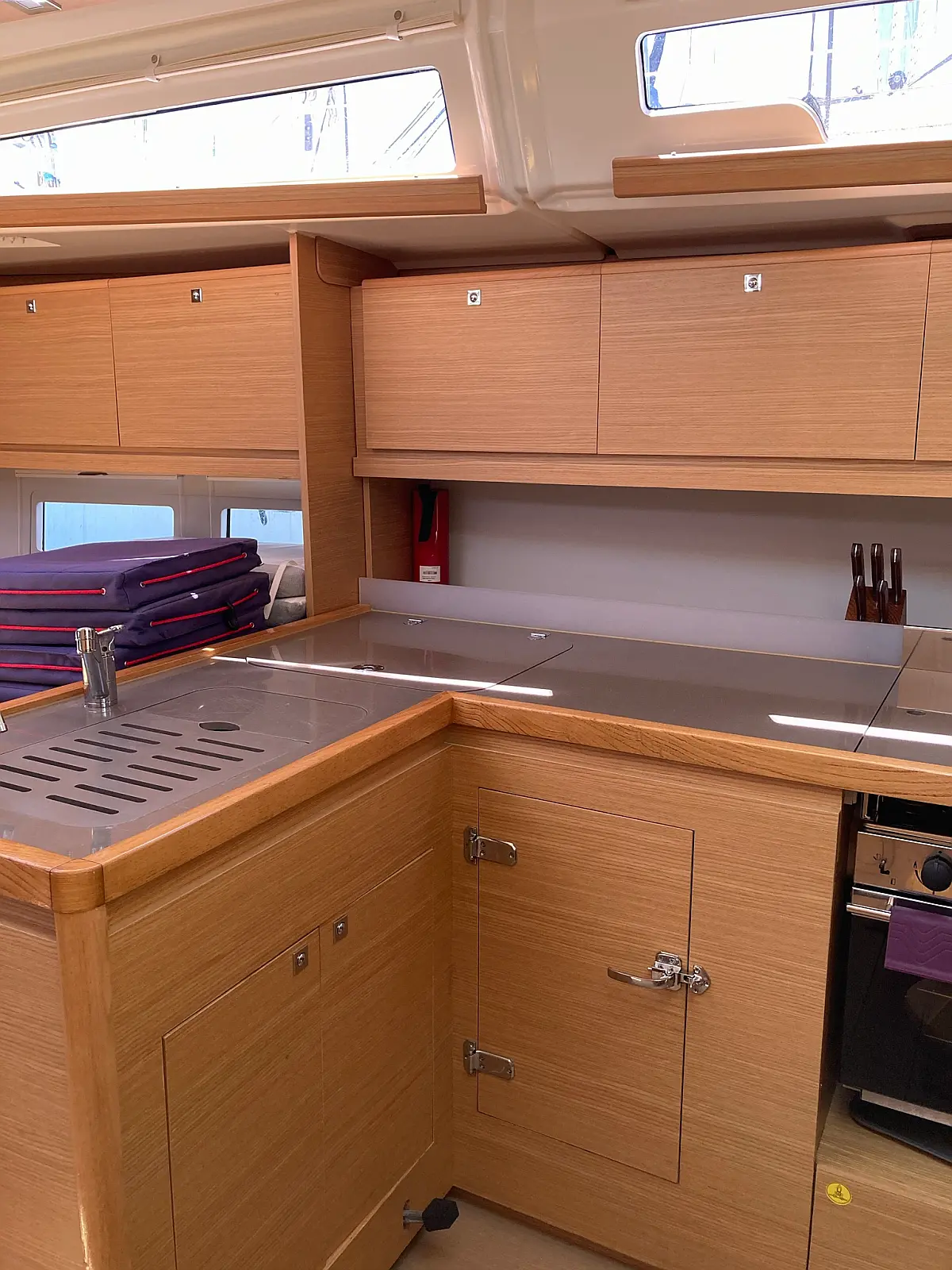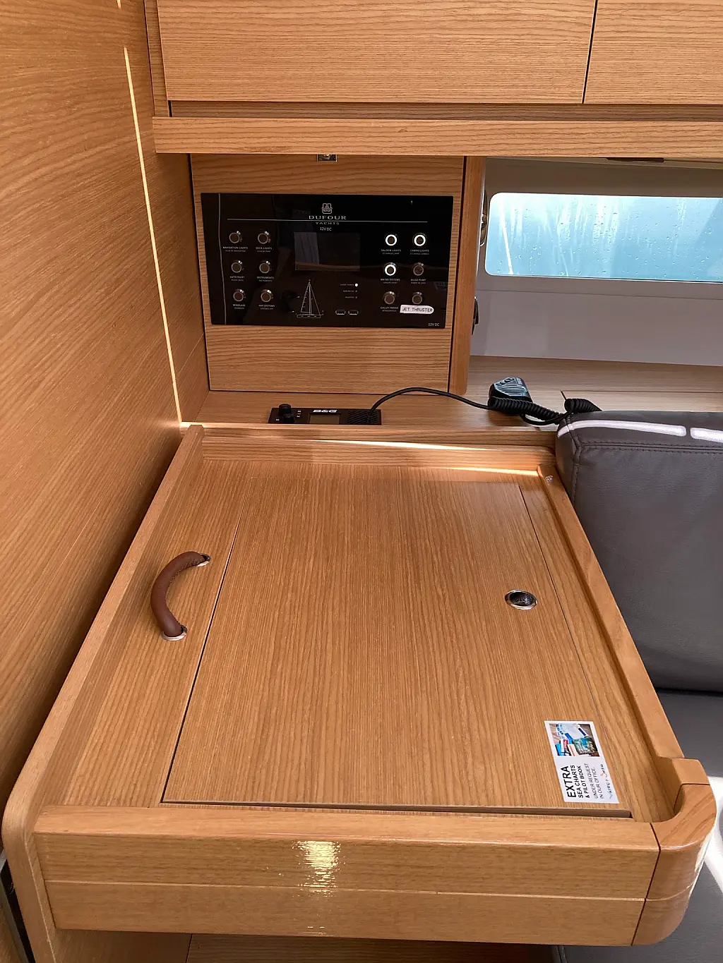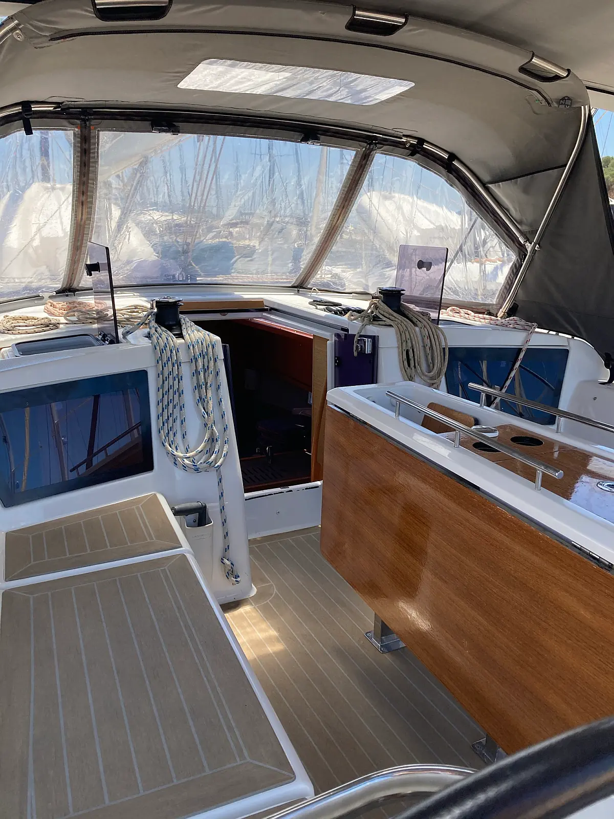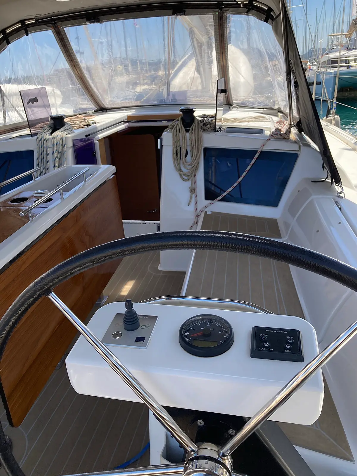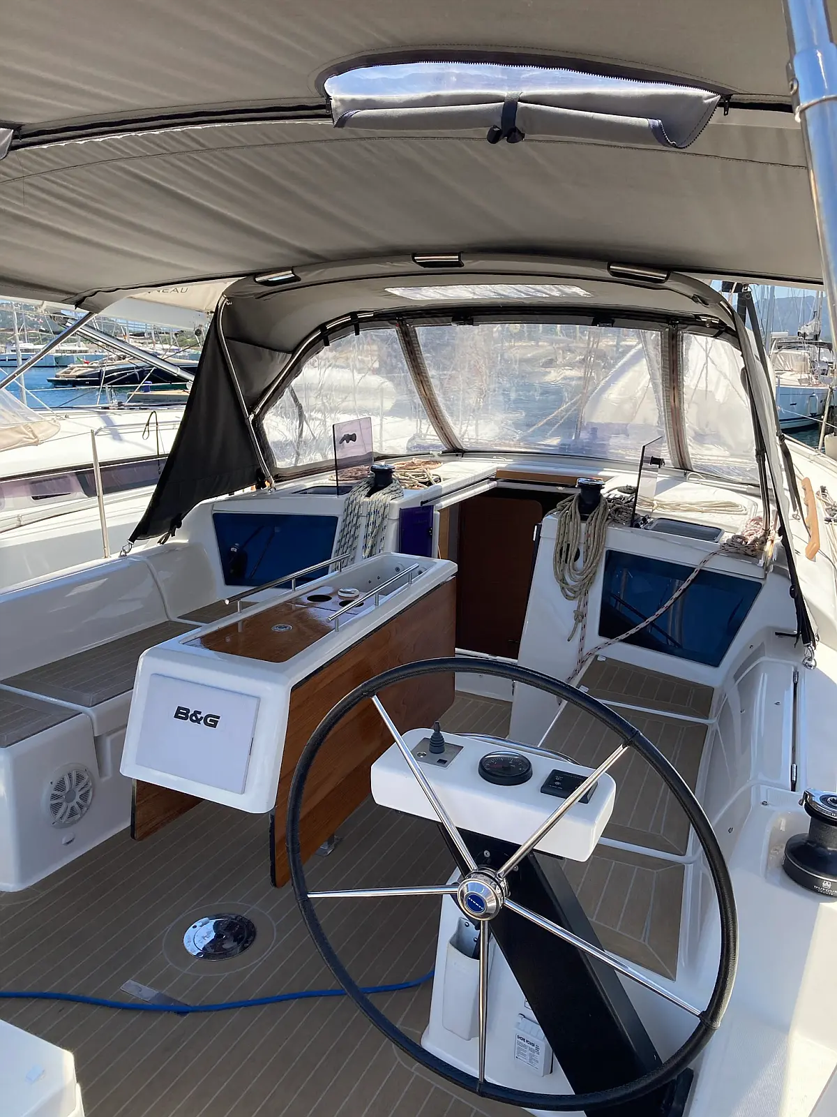 Cockpit cushions , Barbecue grill in cockpit , Teak Cockpit , Electric toilet , Refrigerator , Electric winches , Hydraulic gangway , Inverter , Swimming platform