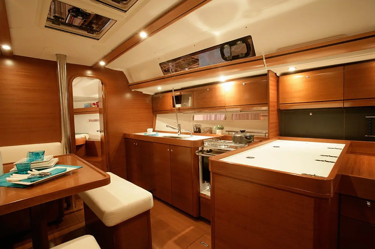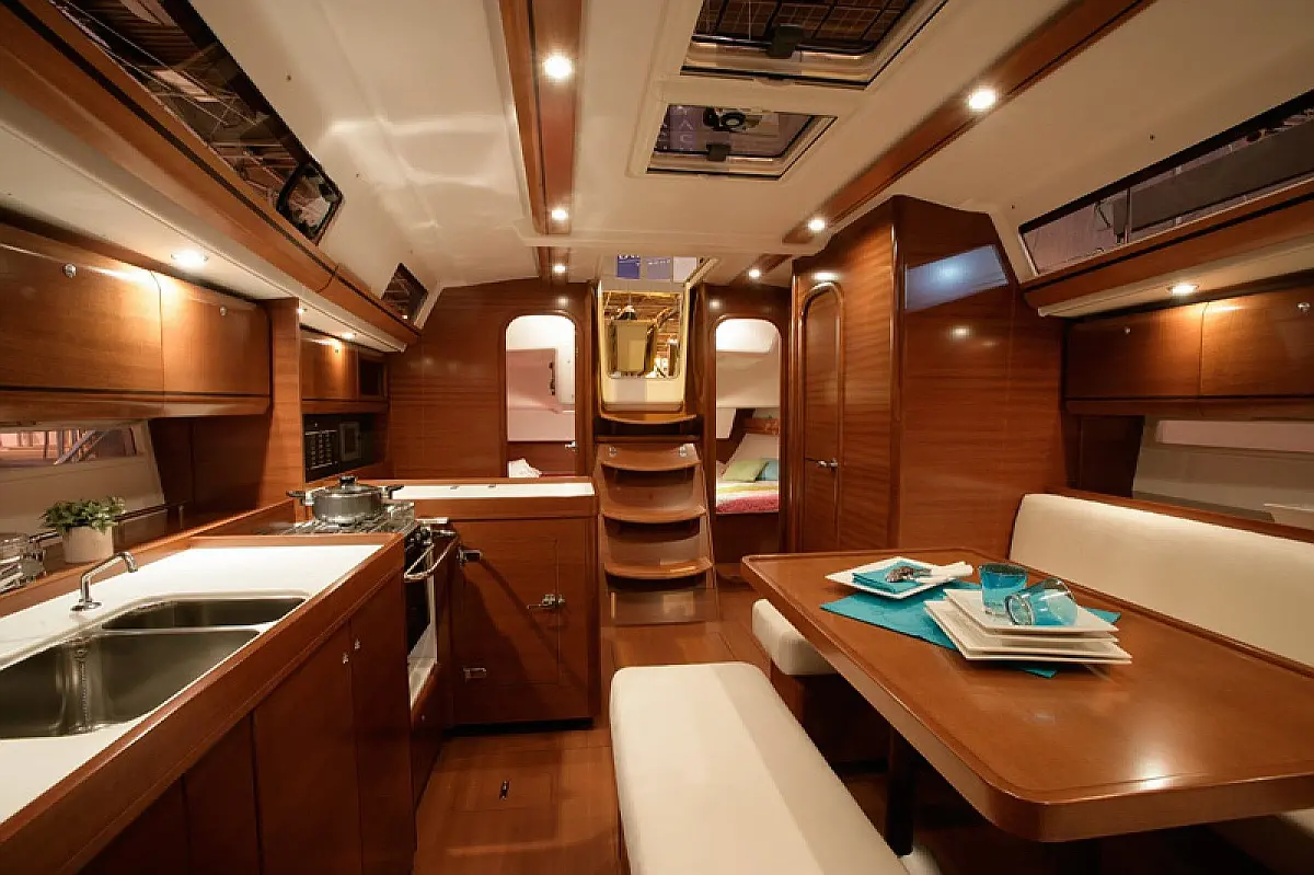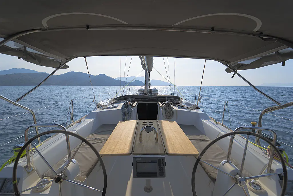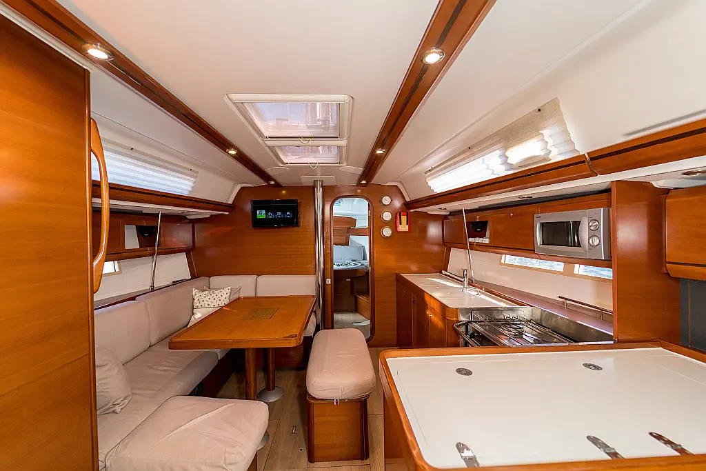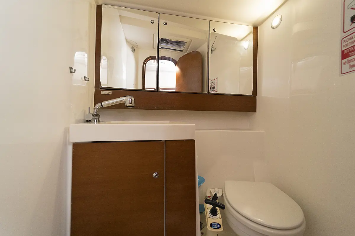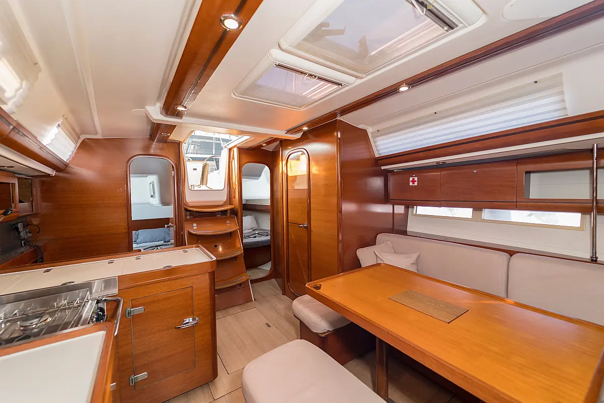 Bimini , Cockpit cushions , Dinghy , Sprayhood , Swimming platform , Outboard engine , Holding tank , Inverter , Solar Panels , Heating , Cockpit speakers , Refrigerator