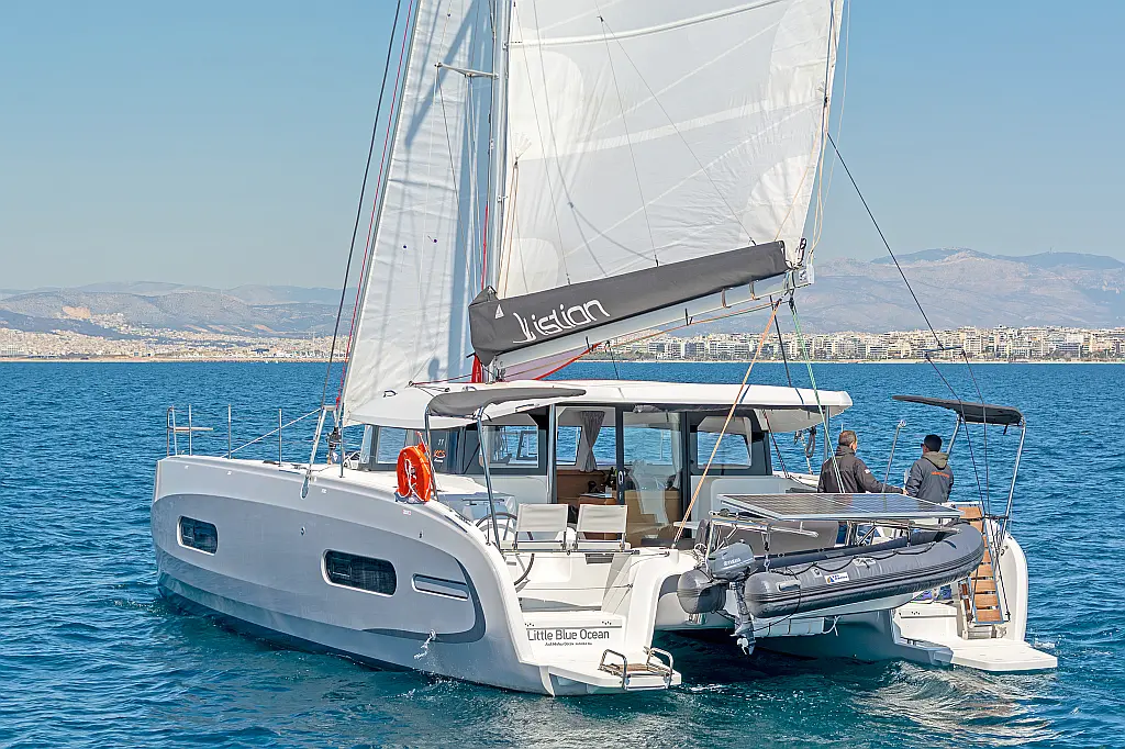 9HP Outboard Motor + Security Deposit Insurance: 600 € (Available only for catamarans, on specific bases & only upon request)