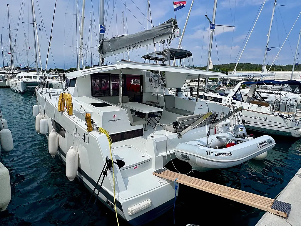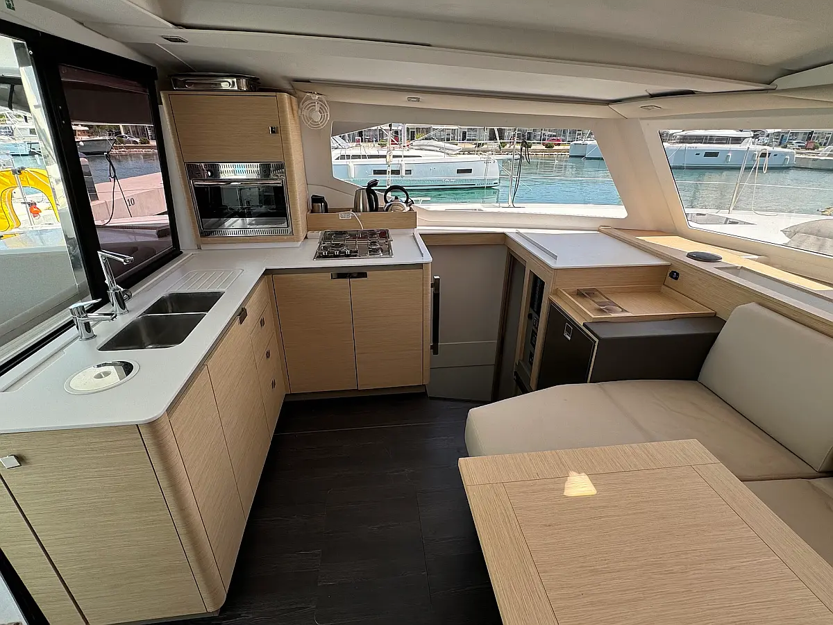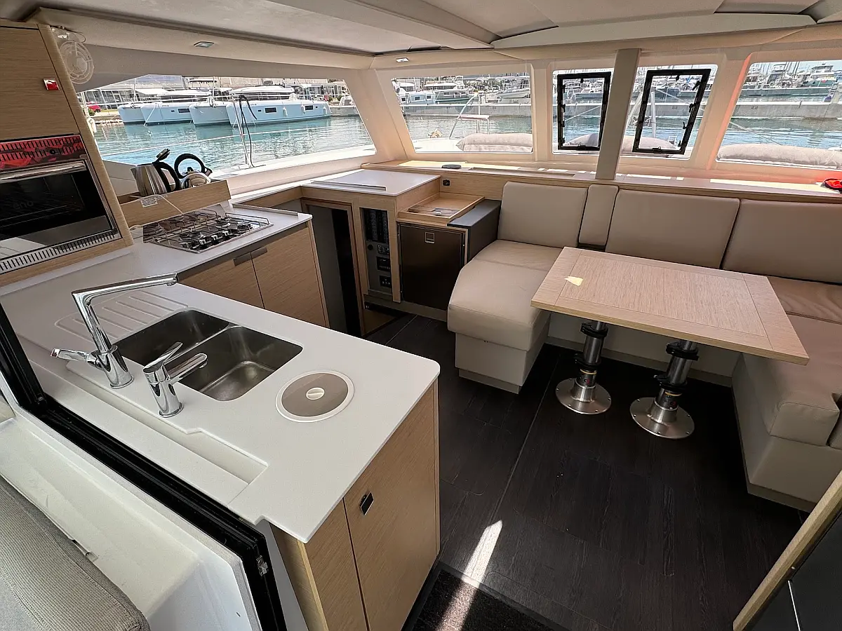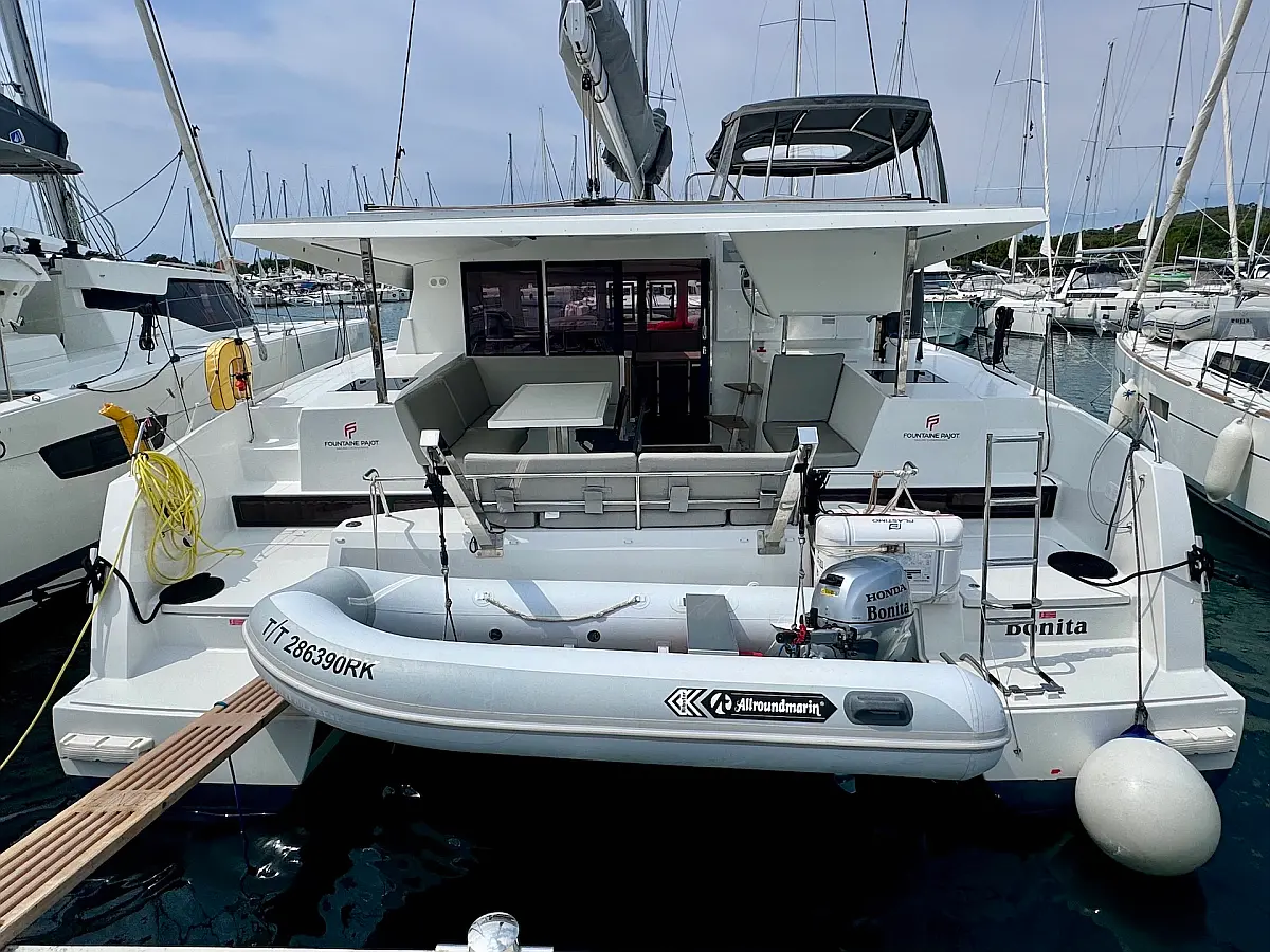 Coffee maker , Ice maker , Refrigerator , Dinghy , Wi-Fi & Internet , Water maker , Generator , Inverter , Solar Panels , Electric toilet , Air condition , Bimini , Cockpit cushions , Electric winches