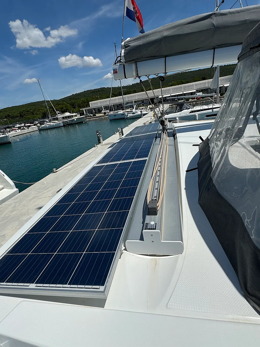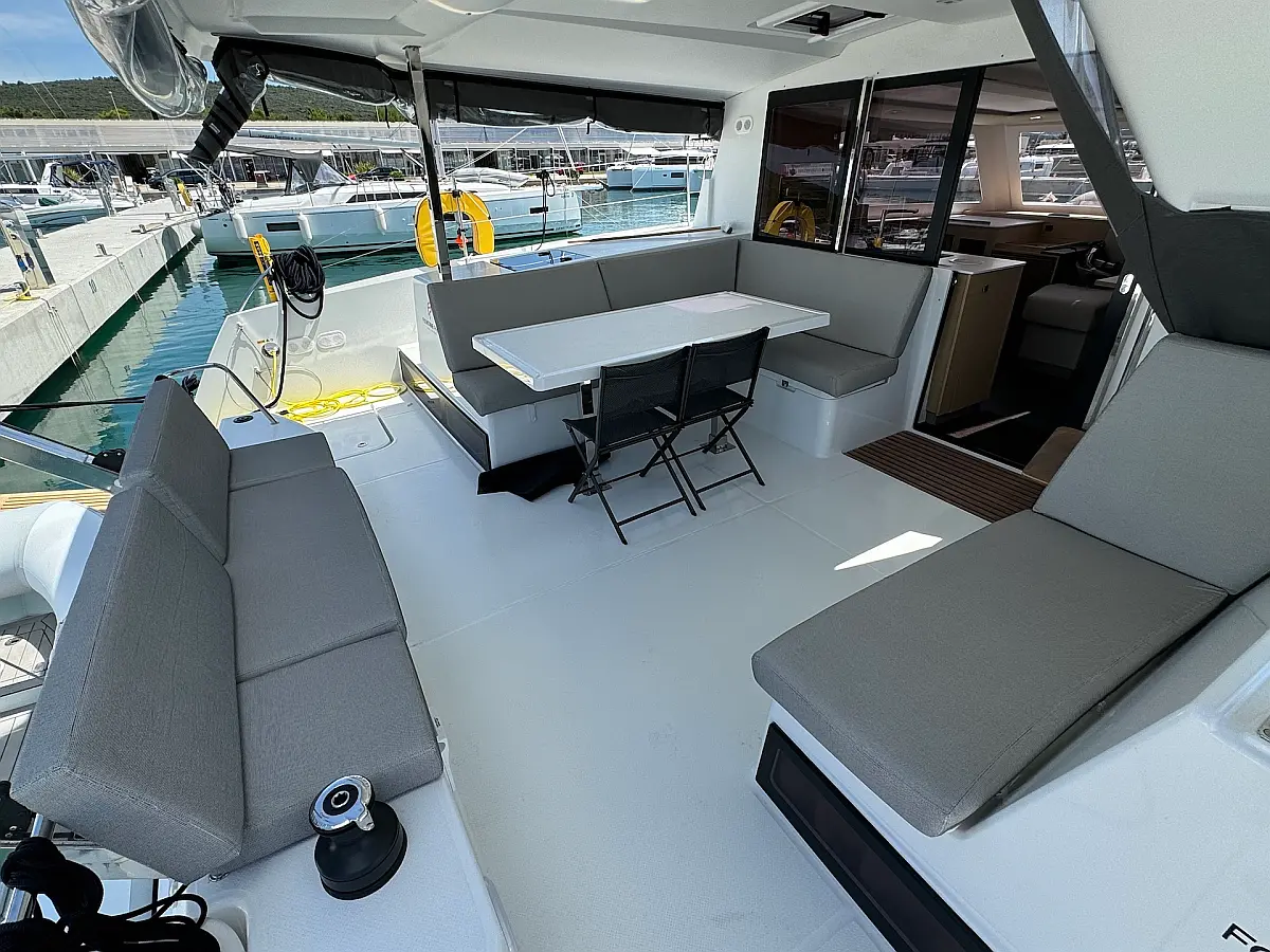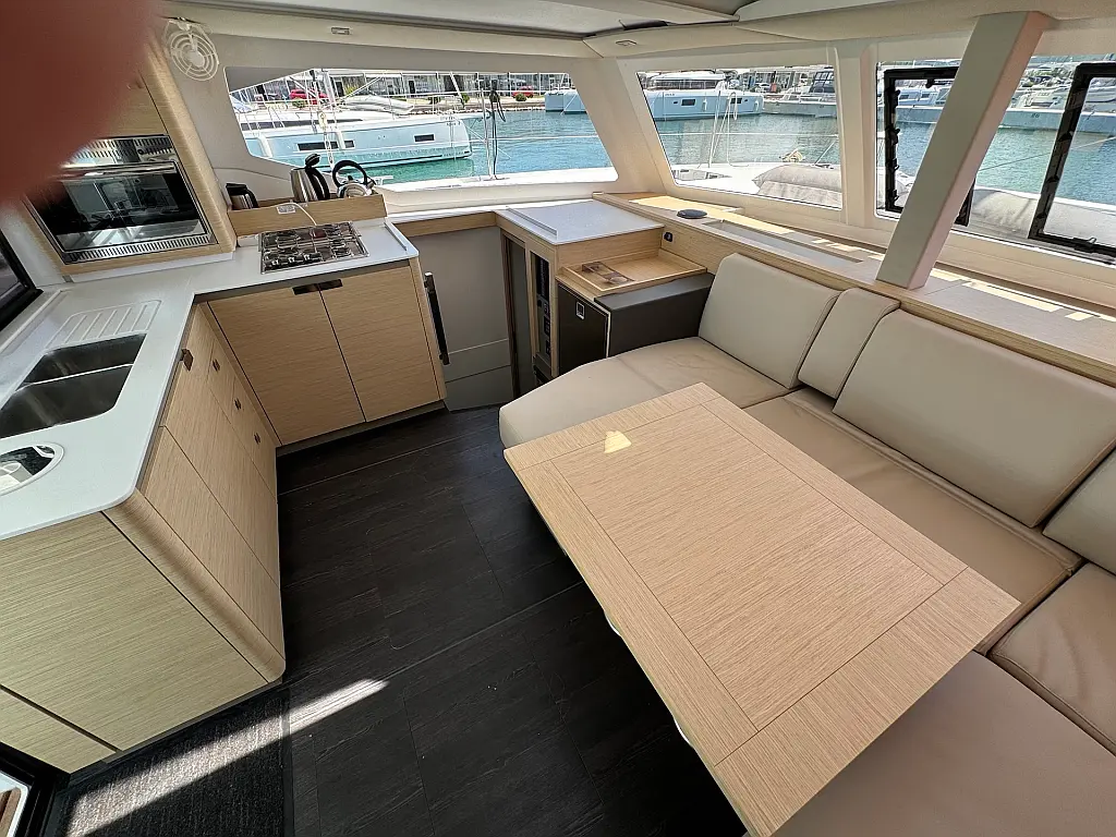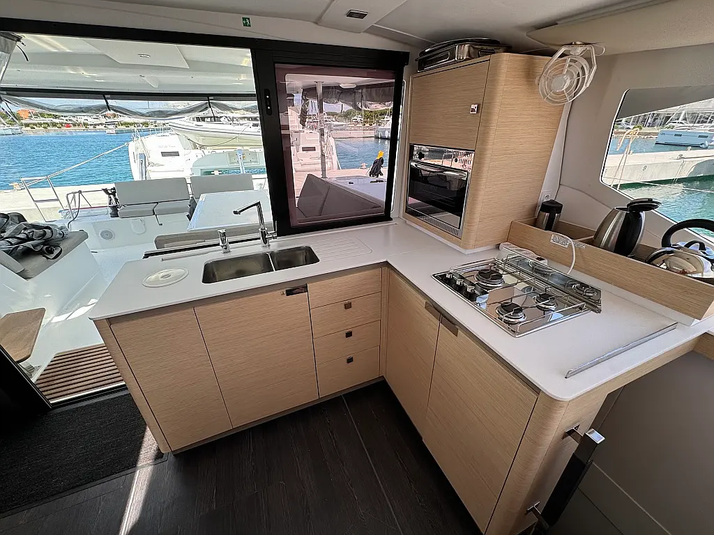 Coffee maker , Ice maker , Refrigerator , Dinghy , Wi-Fi & Internet , Water maker , Generator , Inverter , Solar Panels , Electric toilet , Air condition , Bimini , Cockpit cushions , Electric winches