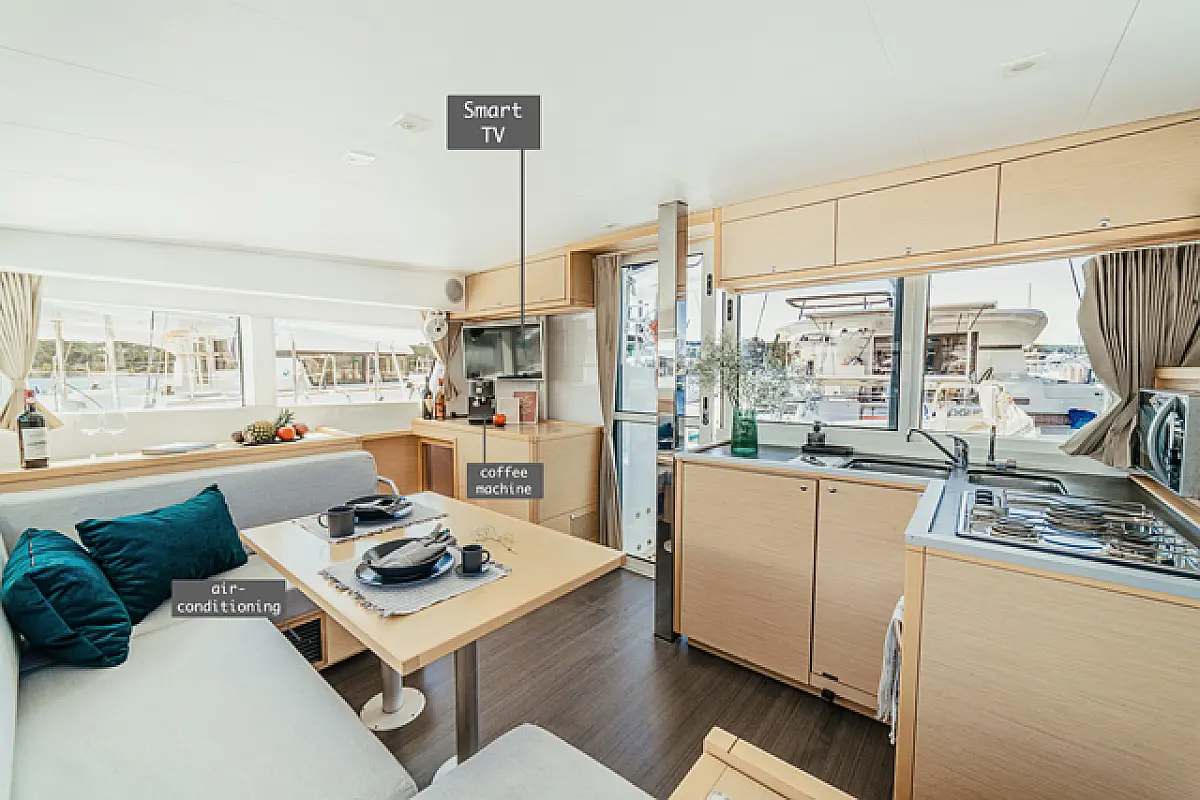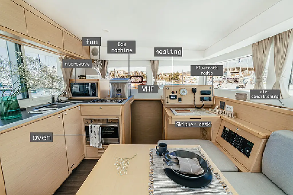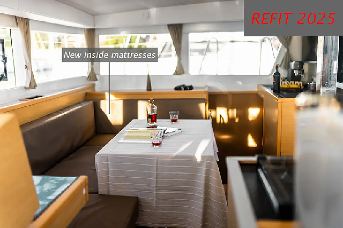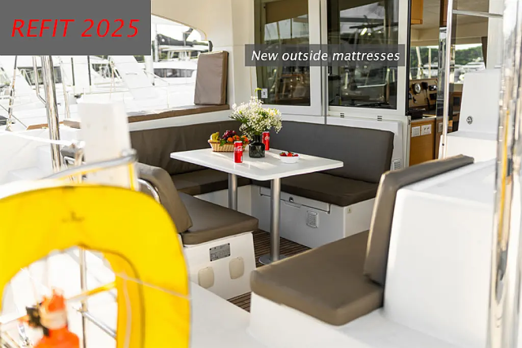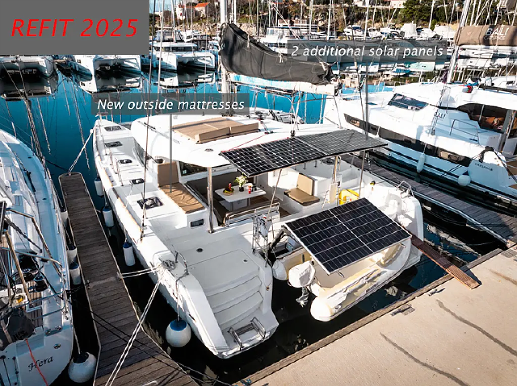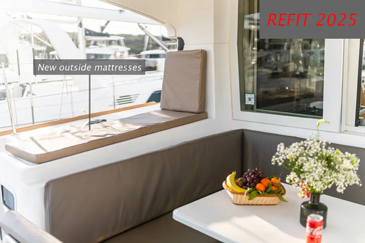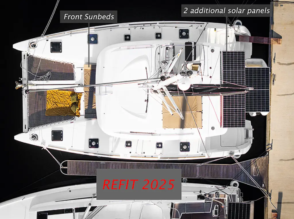 Air condition																		, Coffee maker																		, Cockpit cushions																		, Dinghy																		, Electric winches																		, Electric toilet																		, Ice maker																		, Holding tank																		, Inverter																		, Bimini																		, Solar Panels																		, Sprayhood																		, Teak Cockpit																		, Heating