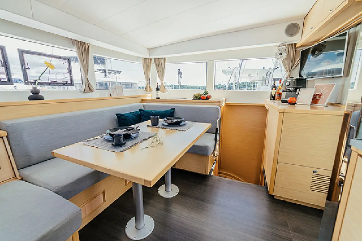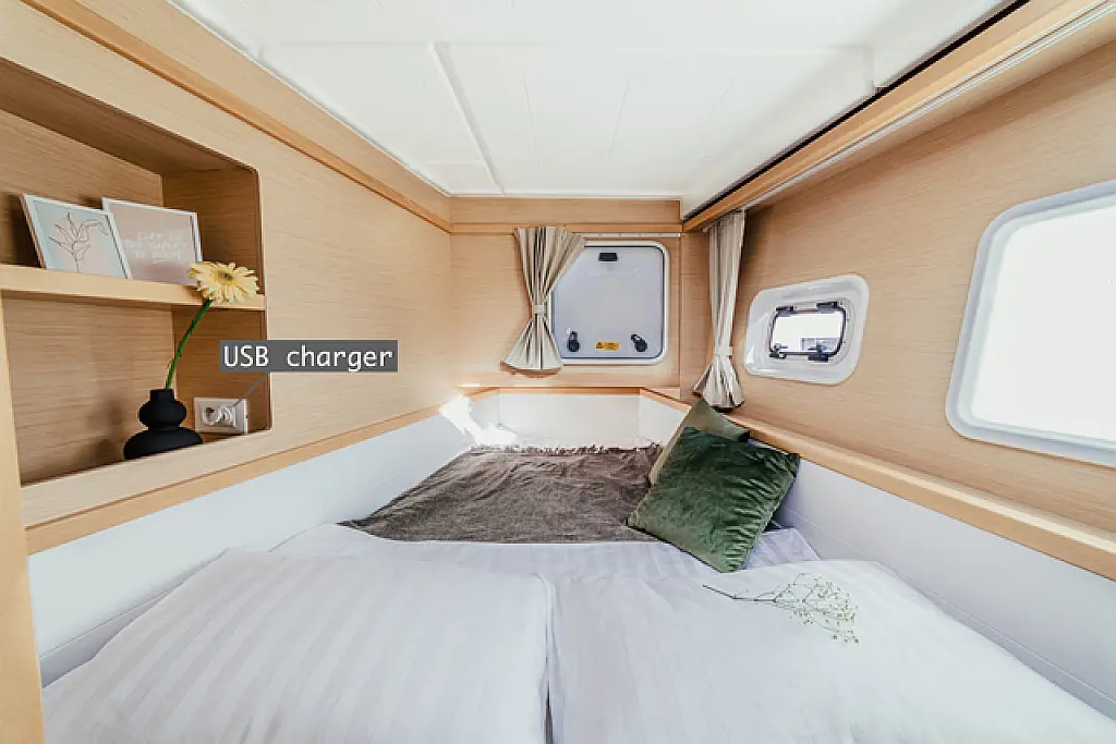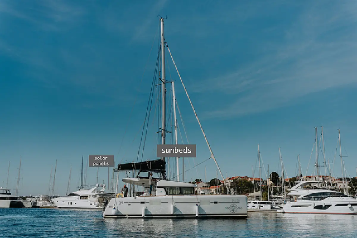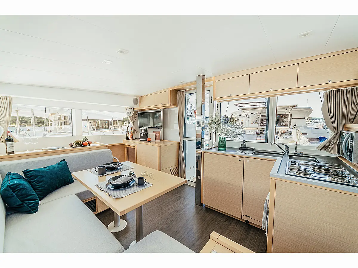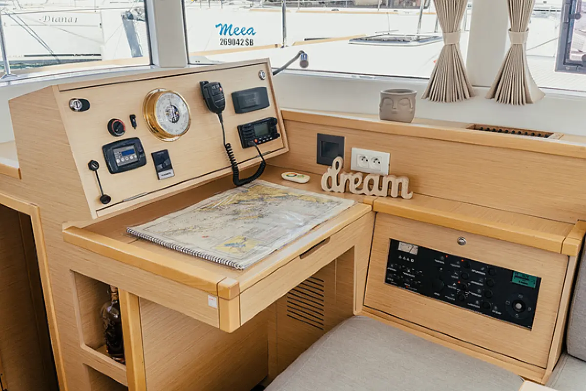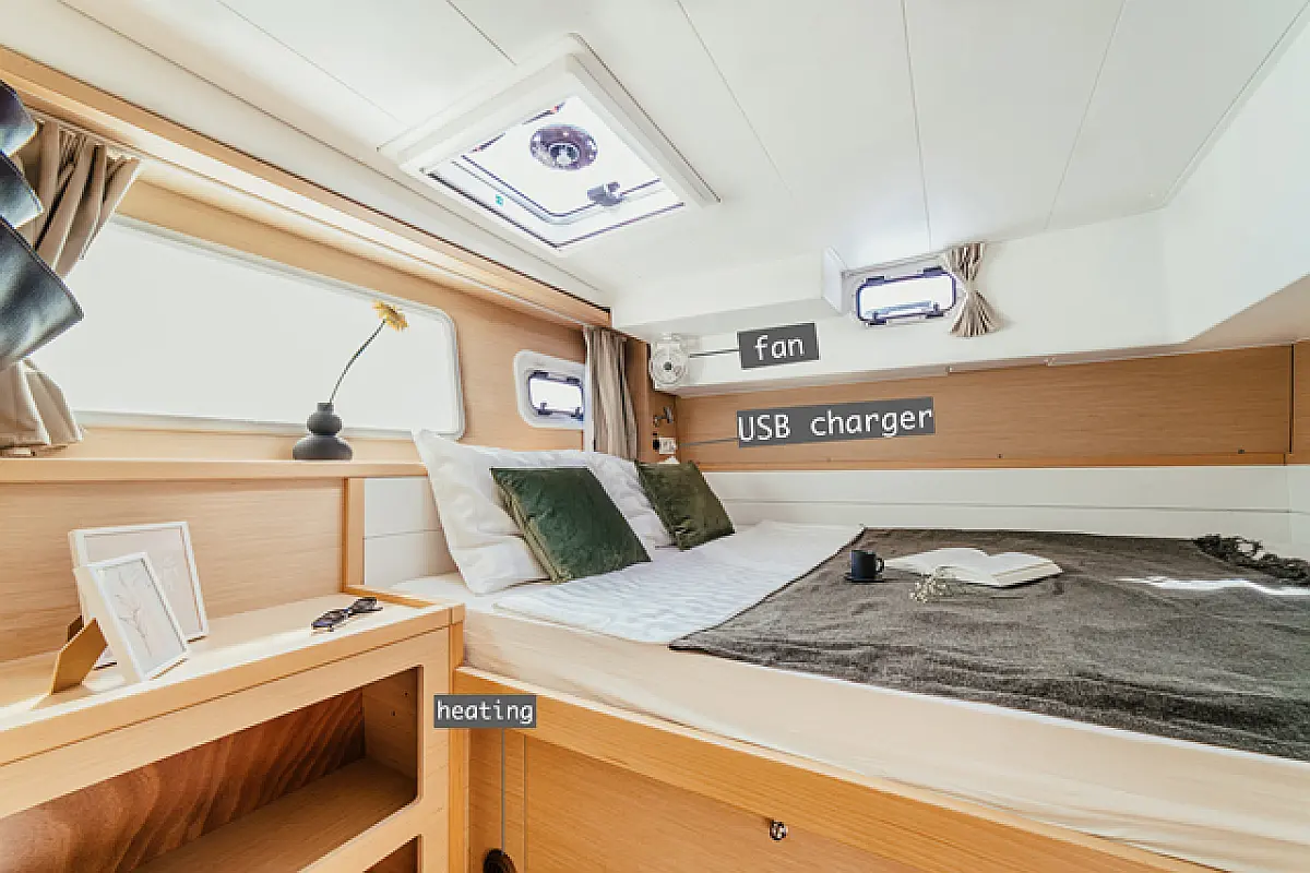 Air condition																		, Coffee maker																		, Cockpit cushions																		, Dinghy																		, Electric winches																		, Electric toilet																		, Ice maker																		, Holding tank																		, Inverter																		, Bimini																		, Solar Panels																		, Sprayhood																		, Teak Cockpit																		, Heating