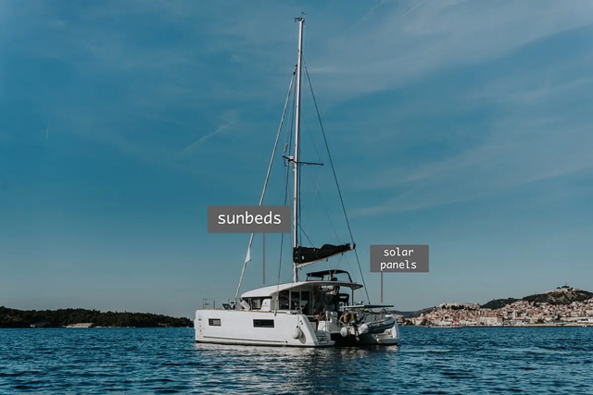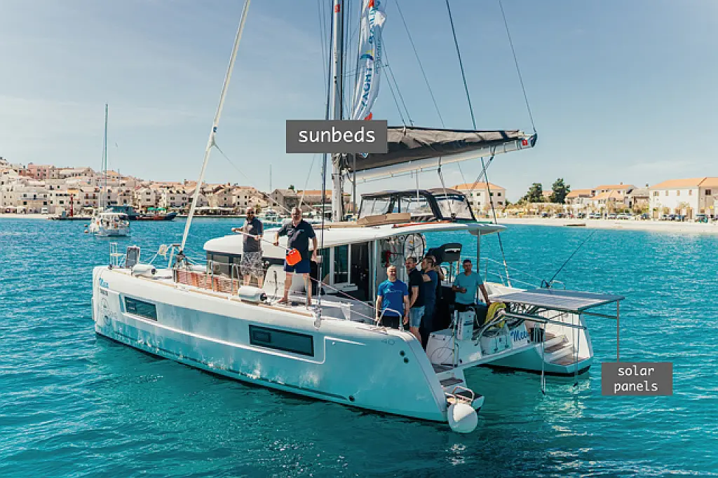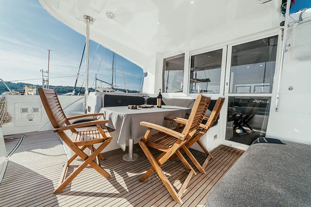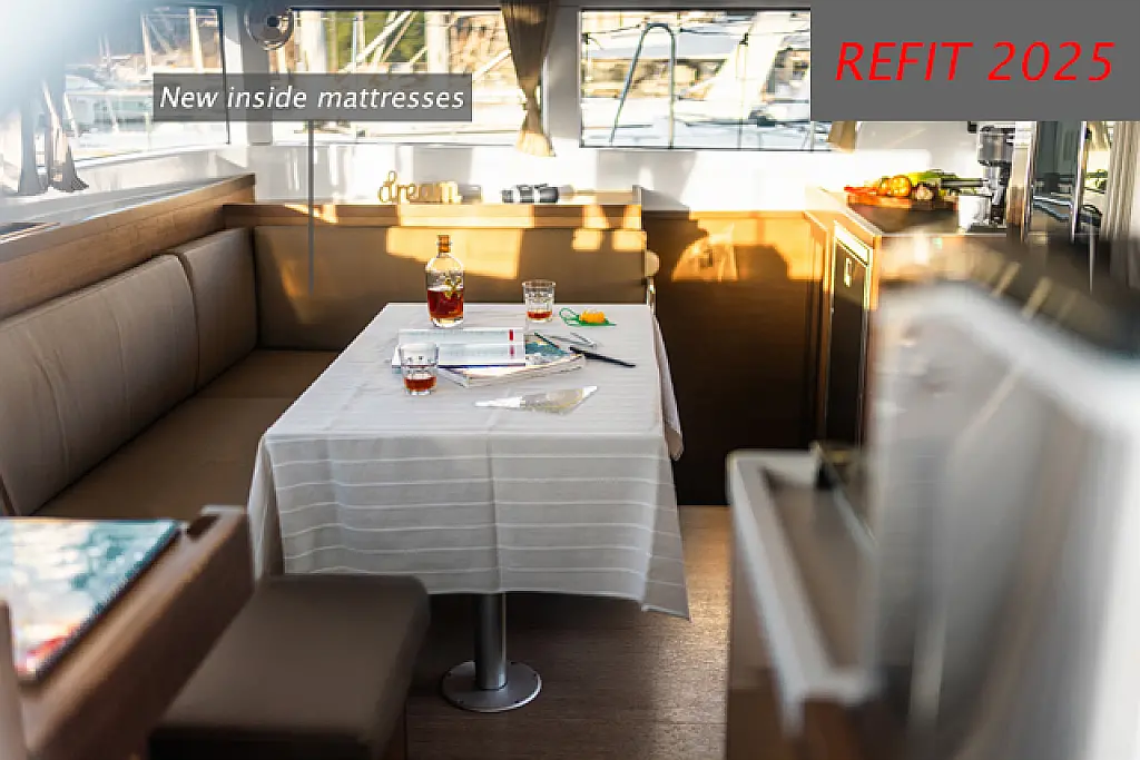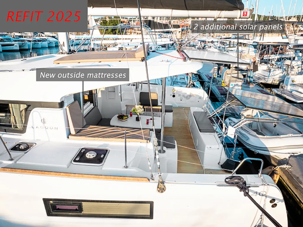 Air condition																		, Coffee maker																		, Cockpit cushions																		, Dinghy																		, Electric winches																		, Electric toilet																		, Ice maker																		, Holding tank																		, Inverter																		, Bimini																		, Solar Panels																		, Sprayhood																		, Teak Cockpit																		, Heating