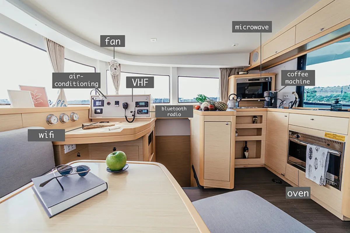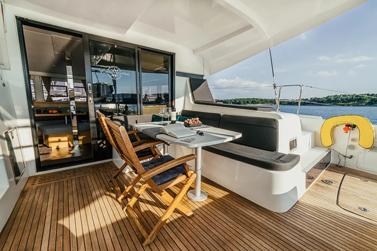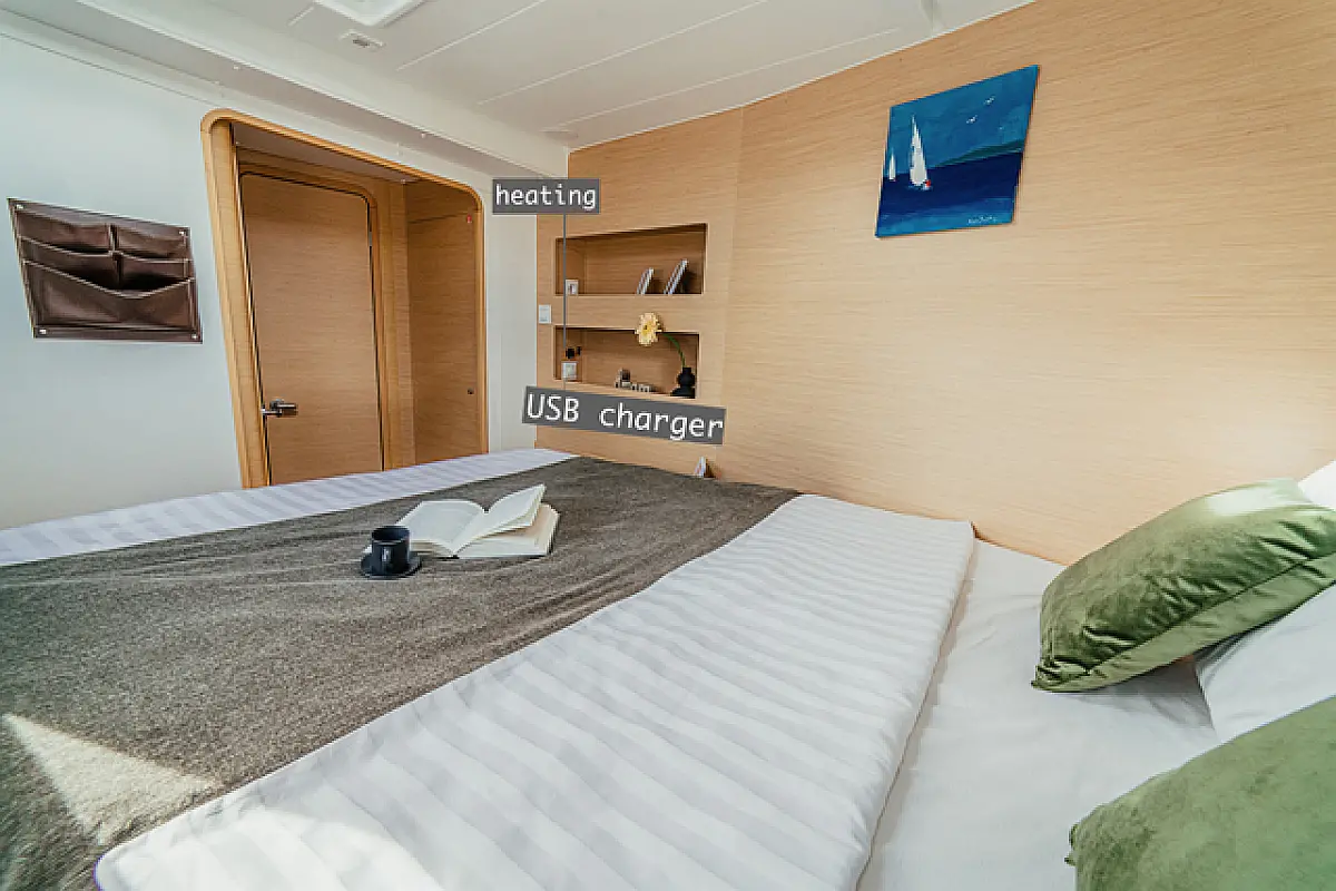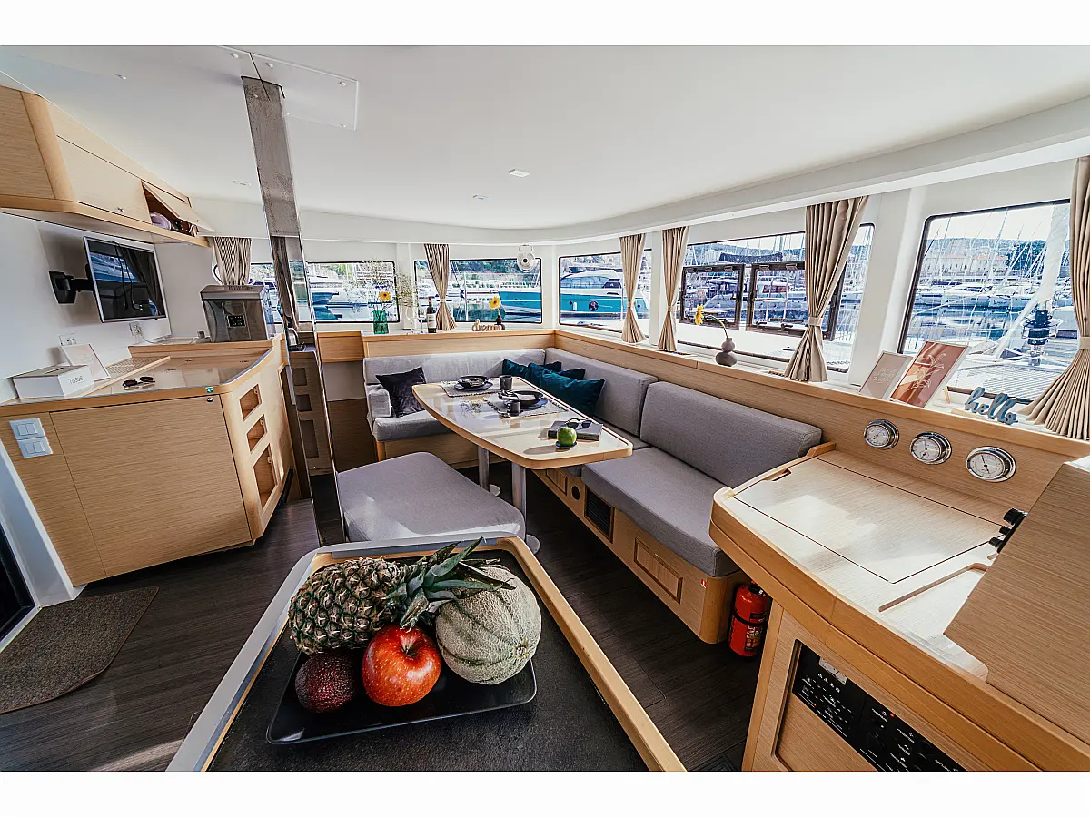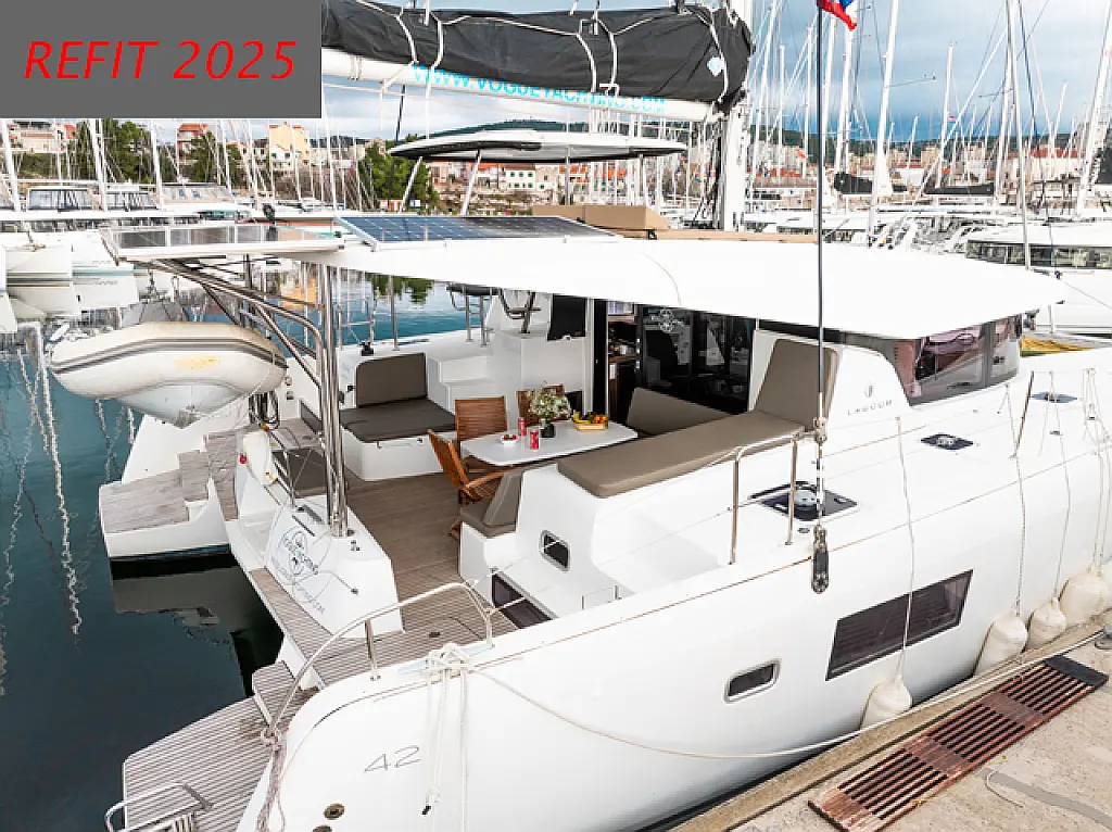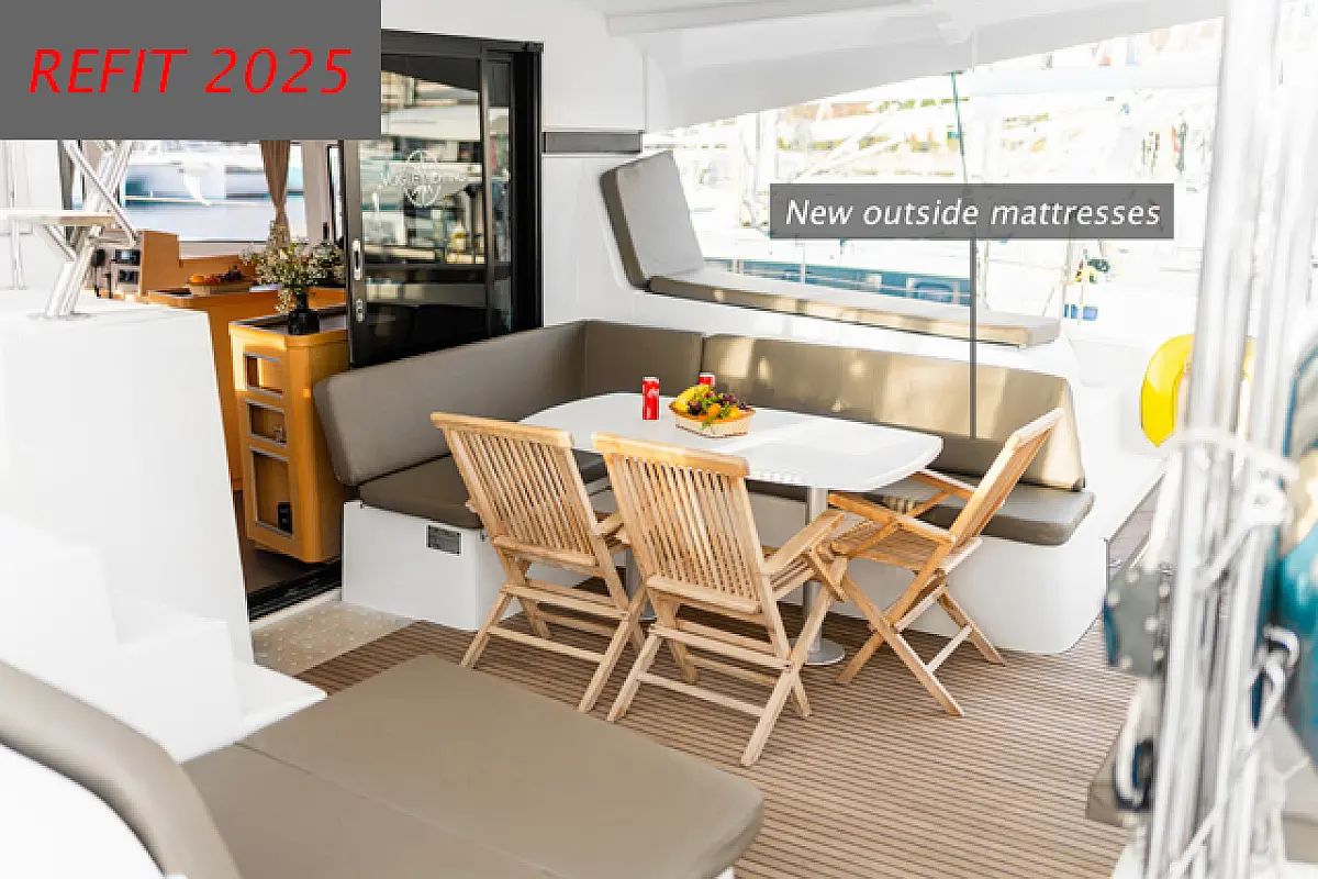Air condition																		, Coffee maker																		, Cockpit cushions																		, Dinghy																		, Electric winches																		, Electric toilet																		, Ice maker																		, Holding tank																		, Inverter																		, Bimini																		, Solar Panels																		, Sprayhood																		, Teak Cockpit																		, Heating