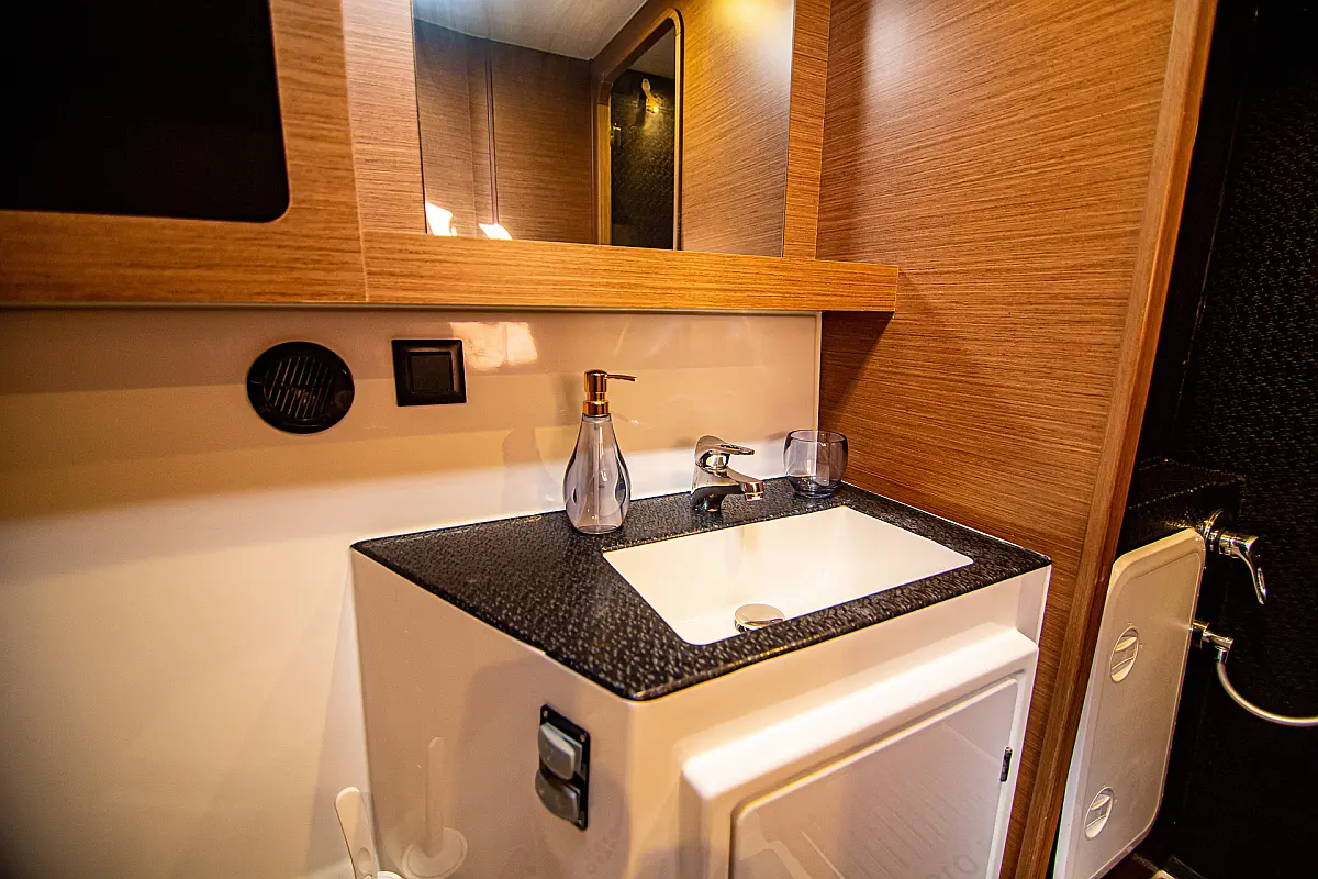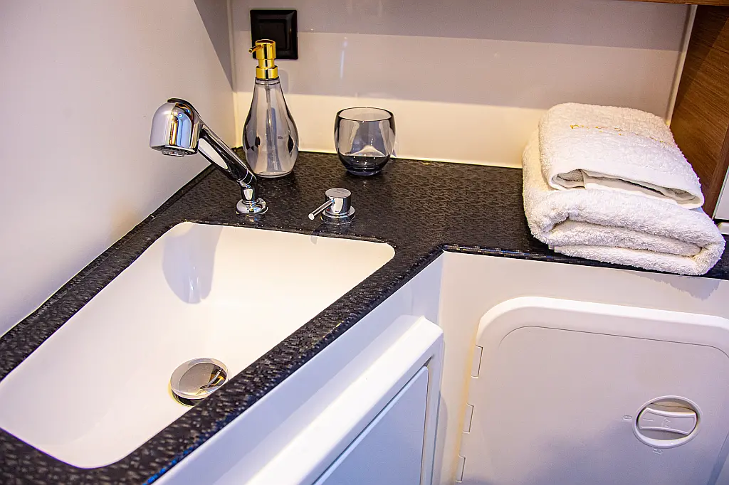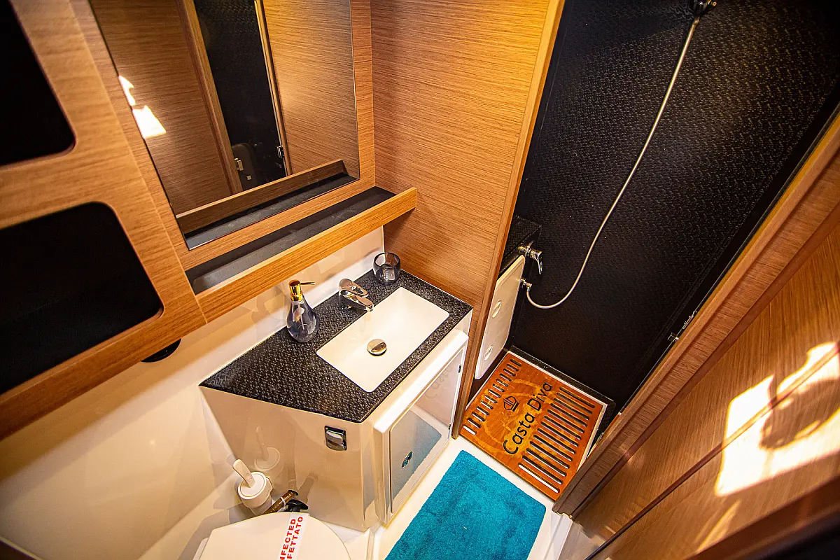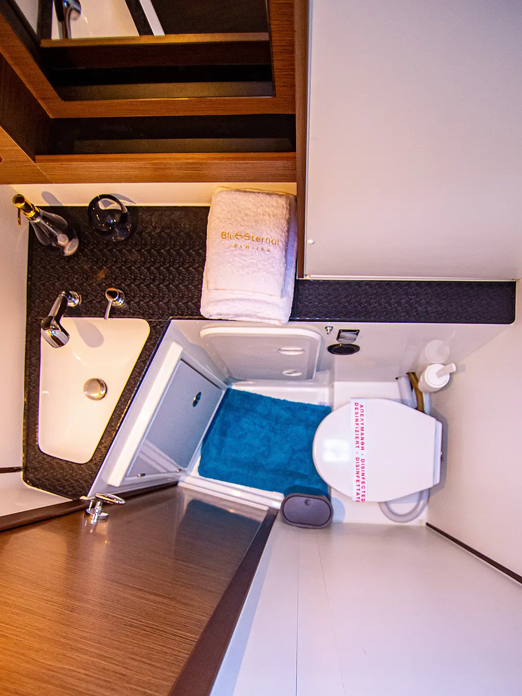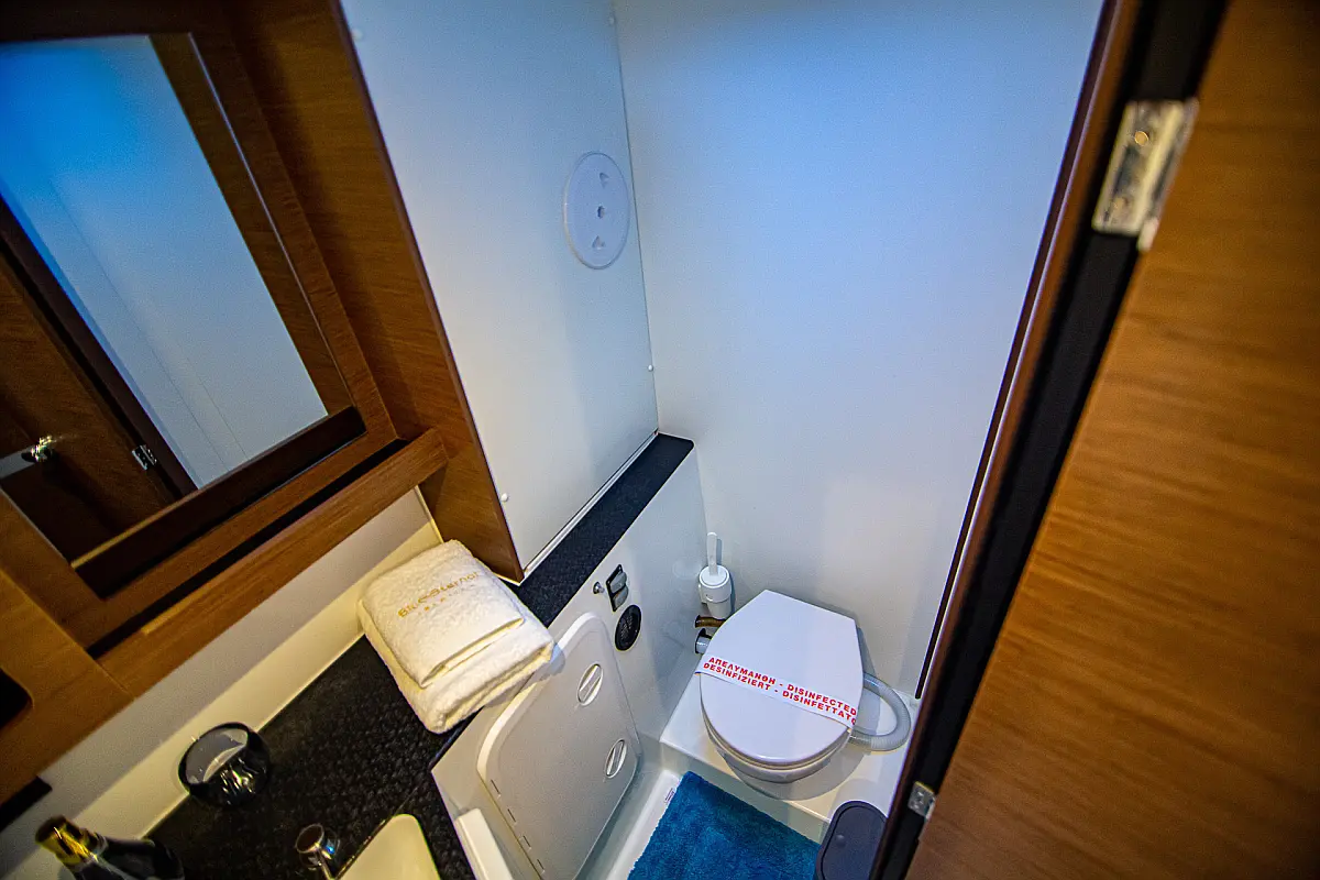 Water maker																		, Generator																		, Inverter																		, Solar Panels																		, Air condition																		, Coffee maker																		, Electric toilet																		, Bimini																		, Dinghy																		, Ice maker																		, Refrigerator																		, Flybridge																		, Sprayhood