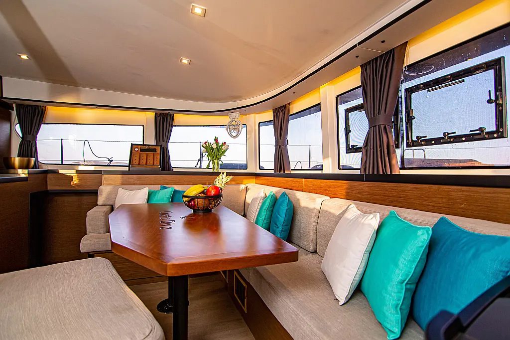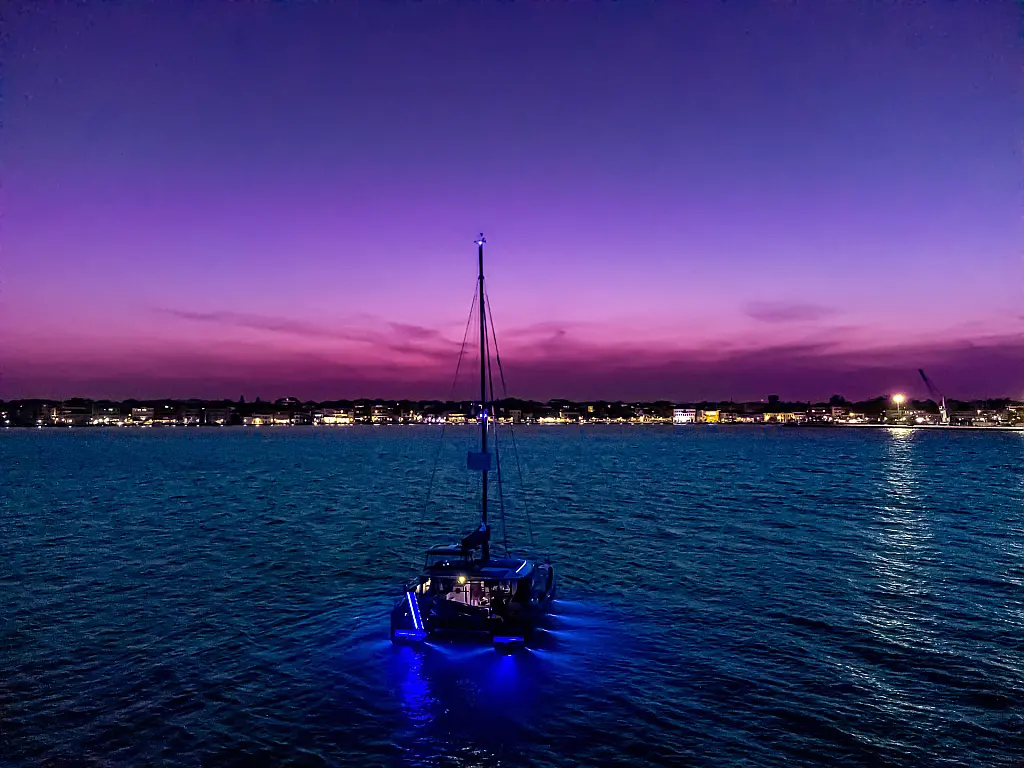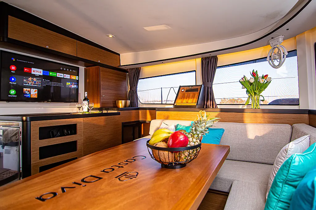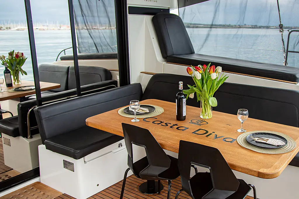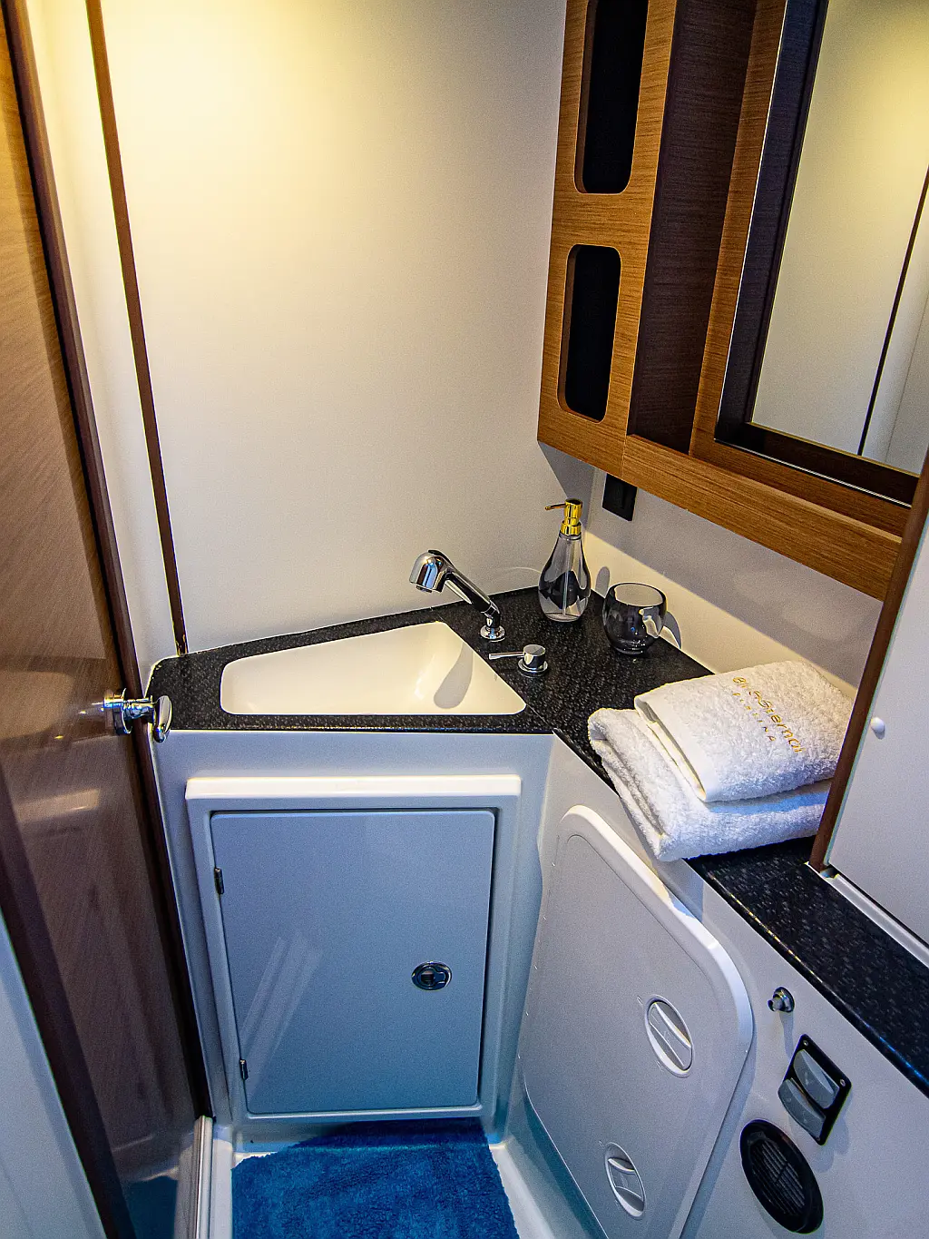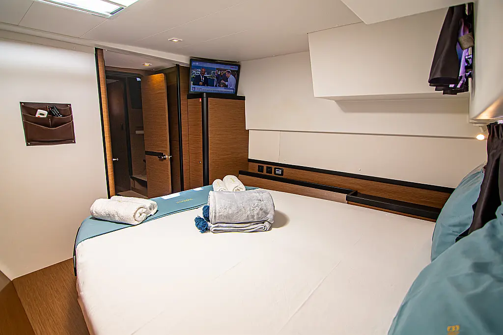 Water maker																		, Generator																		, Inverter																		, Solar Panels																		, Air condition																		, Coffee maker																		, Electric toilet																		, Bimini																		, Dinghy																		, Ice maker																		, Refrigerator																		, Flybridge																		, Sprayhood
