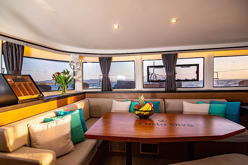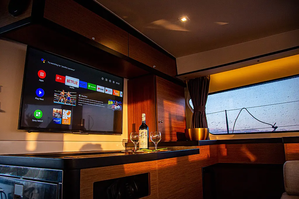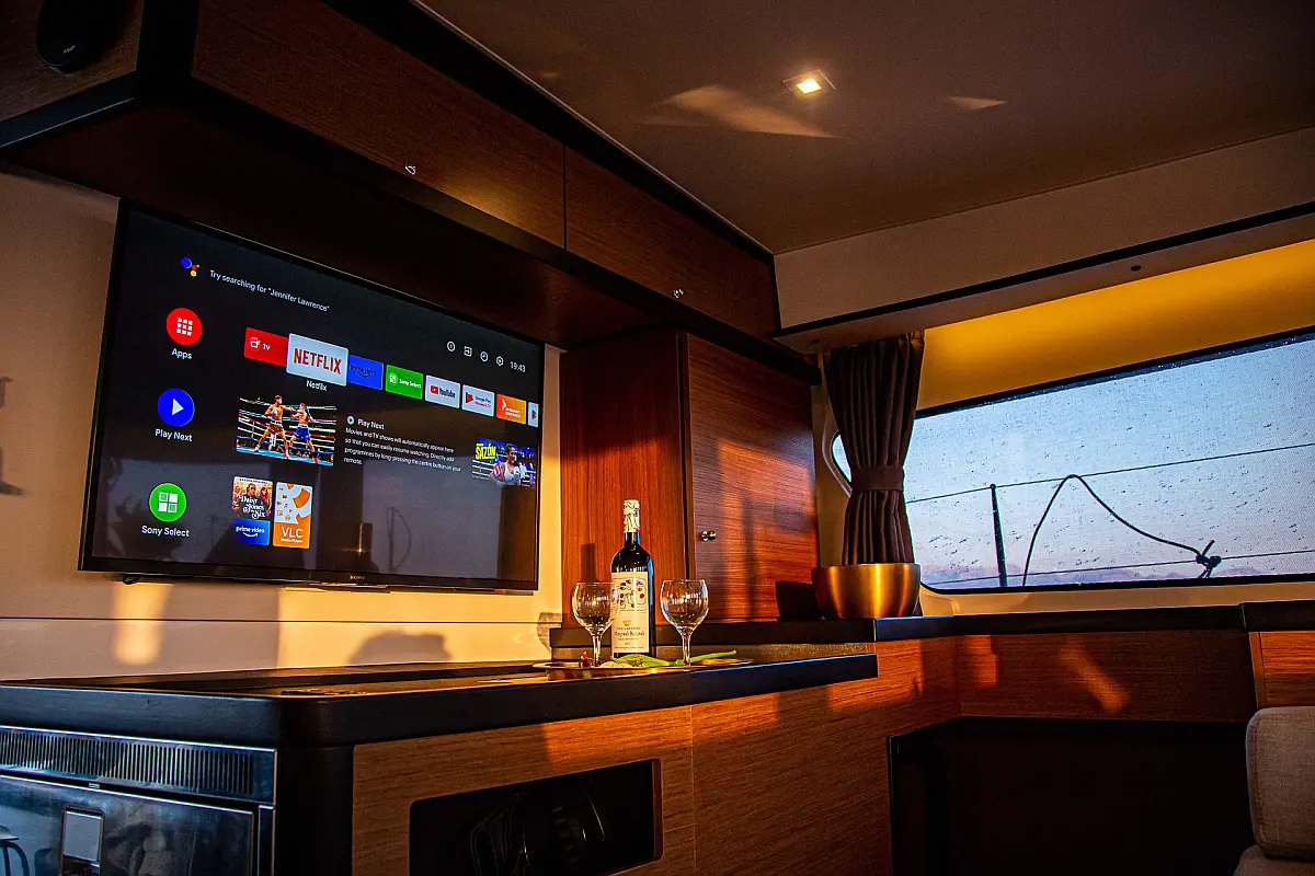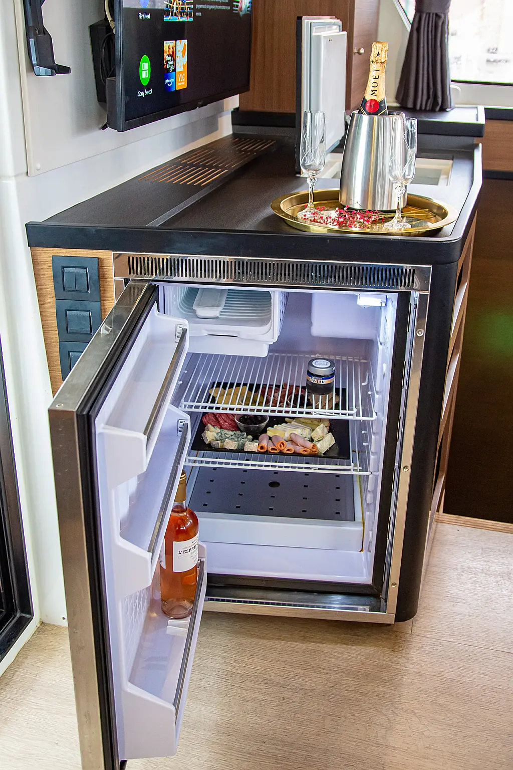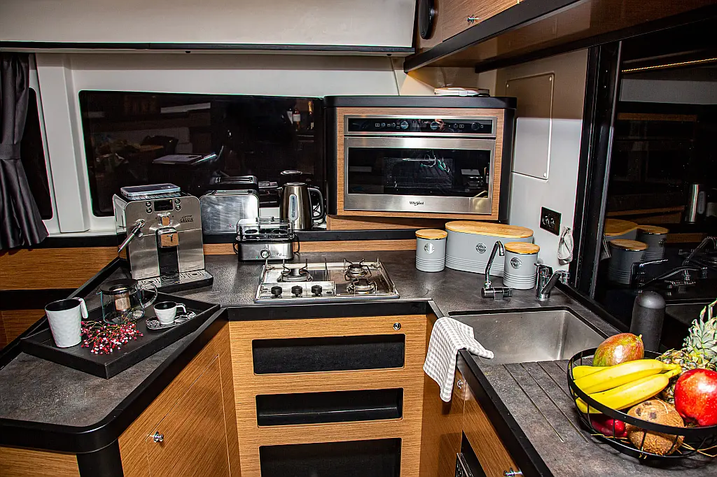 Water maker																		, Generator																		, Inverter																		, Solar Panels																		, Air condition																		, Coffee maker																		, Electric toilet																		, Bimini																		, Dinghy																		, Ice maker																		, Refrigerator																		, Flybridge																		, Sprayhood