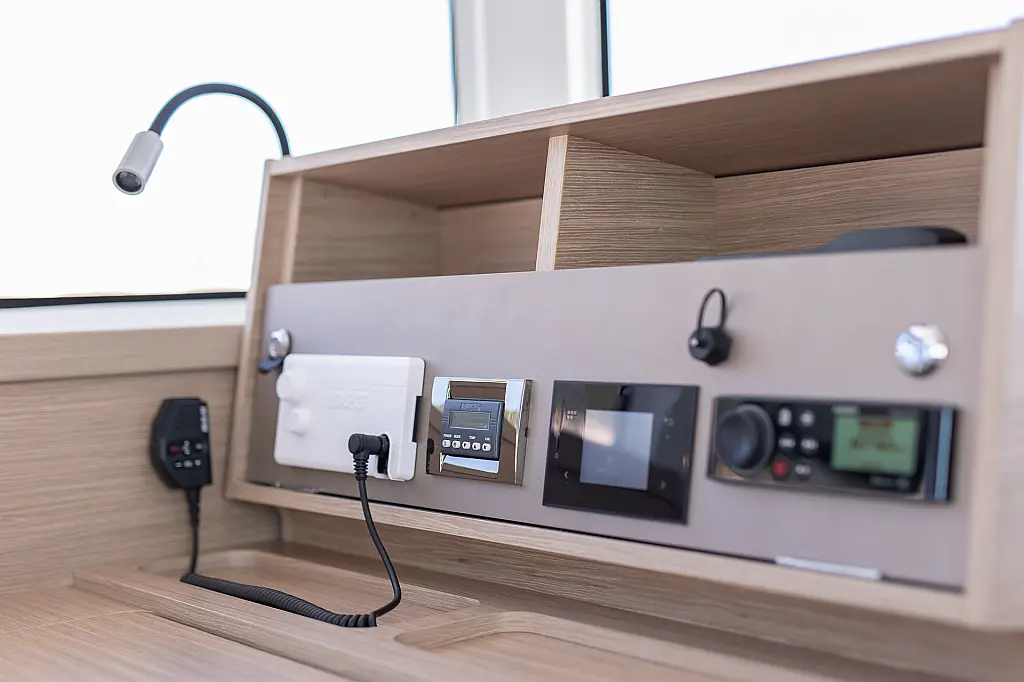 Cockpit speakers , Wi-Fi & Internet , Air condition , Heating , Bimini , Cockpit cushions , Flybridge , Teak Cockpit , Ice maker , Generator , Electric toilet , Outboard engine , Dinghy , Sprayhood