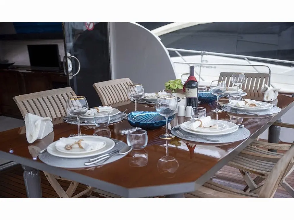 Teak Cockpit , Dinghy , Cockpit cushions , Coffee maker , Air condition , Generator , Electric toilet , Refrigerator , Teak deck