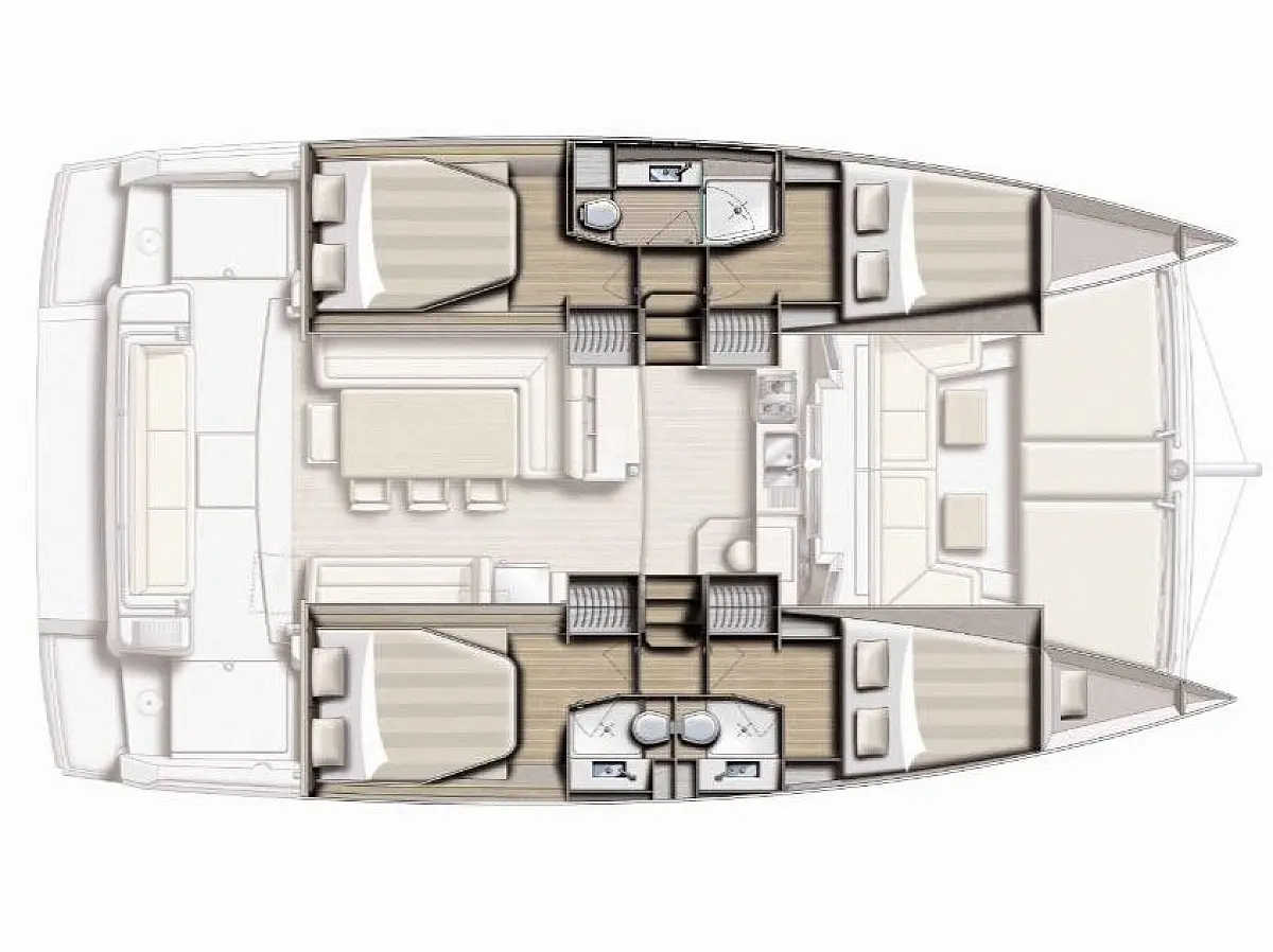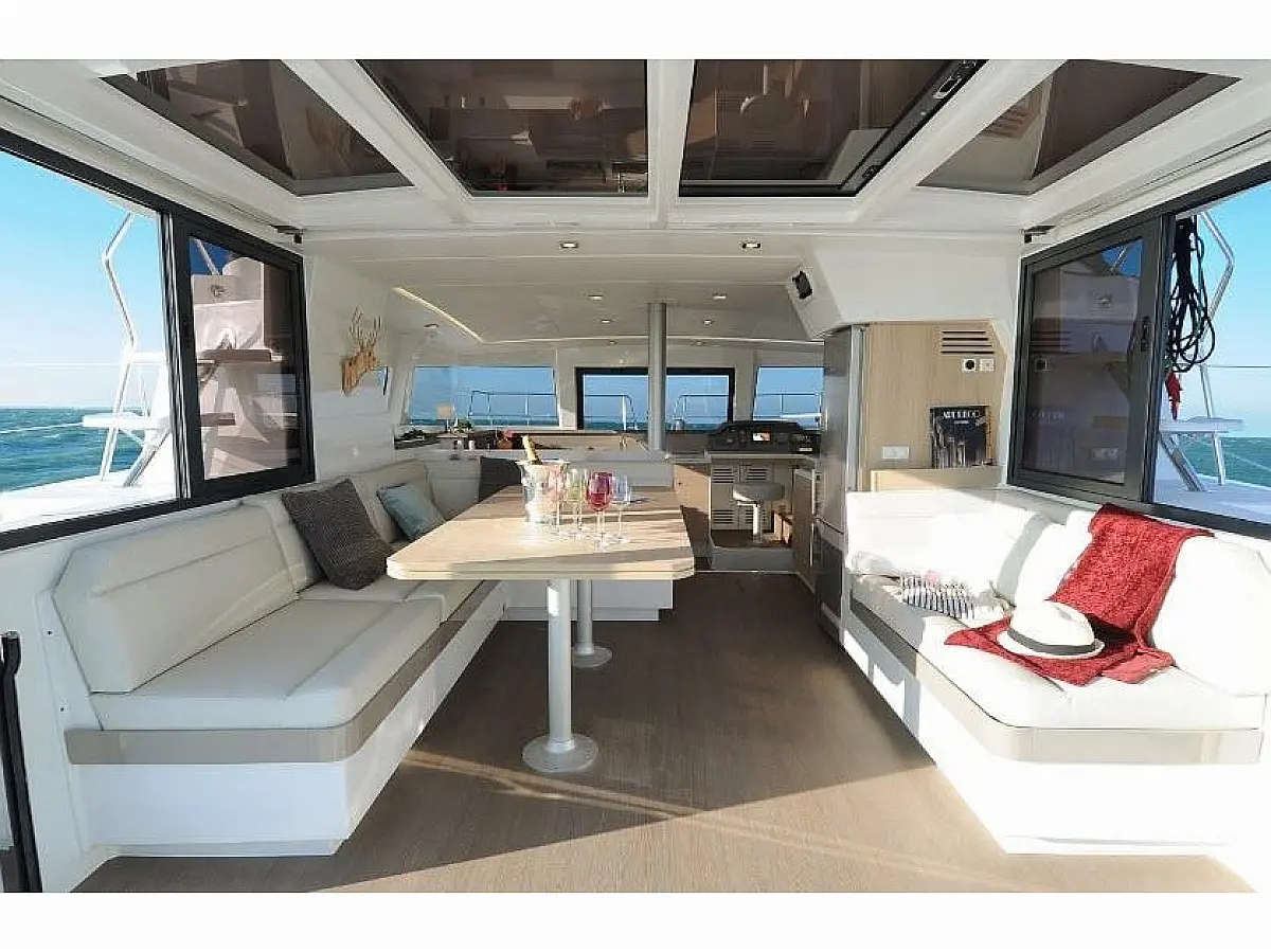 Jastuci u kokpitu , Pomoćni čamac , Solarni paneli , Grijanje , Električni WC , Bimini