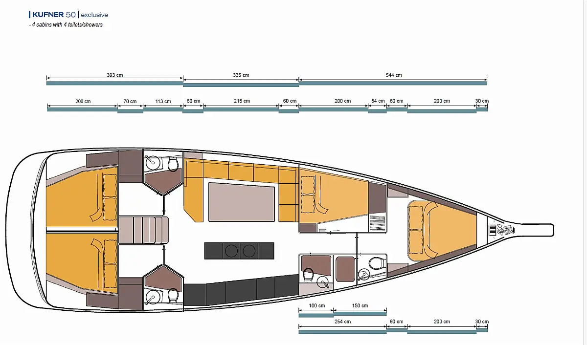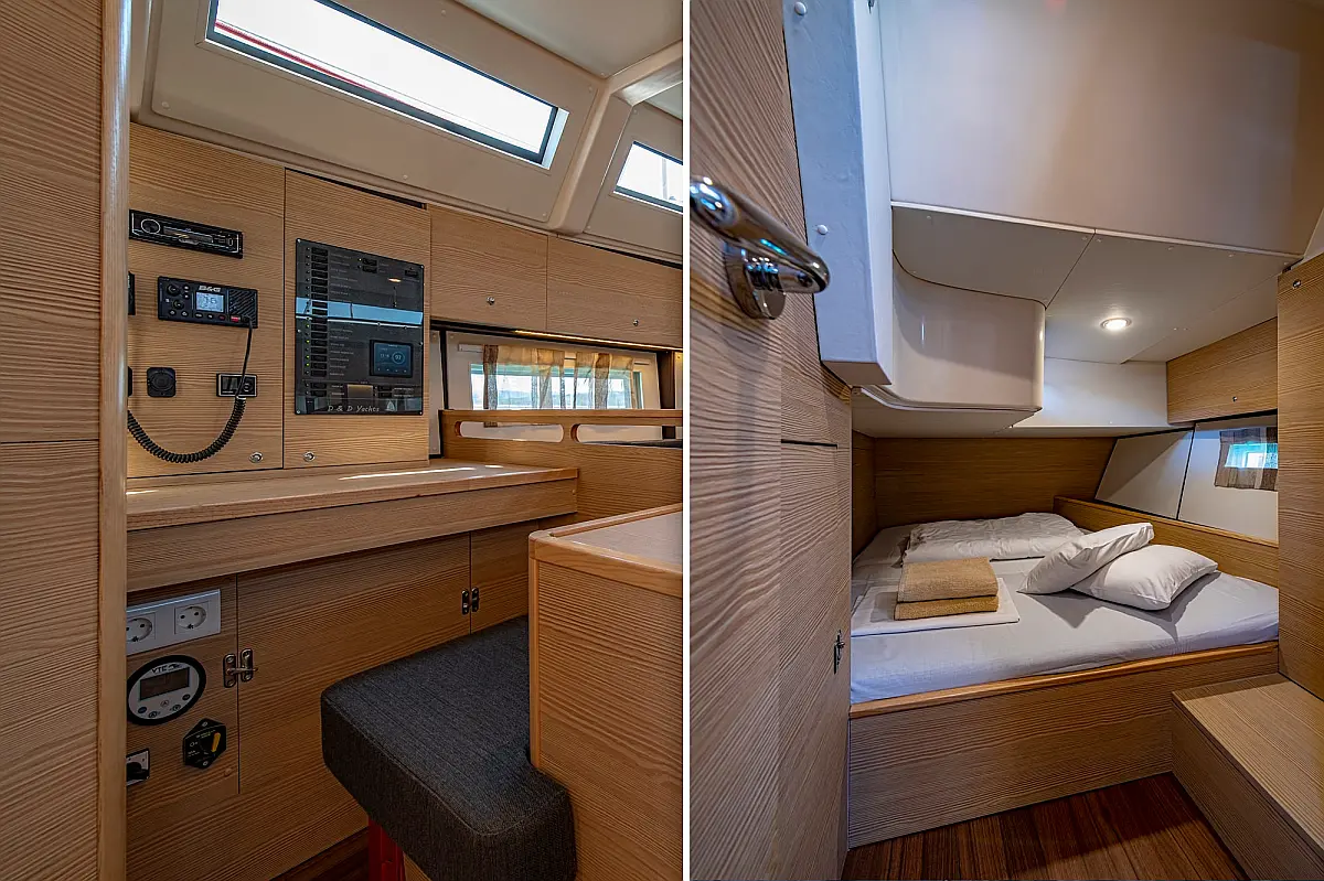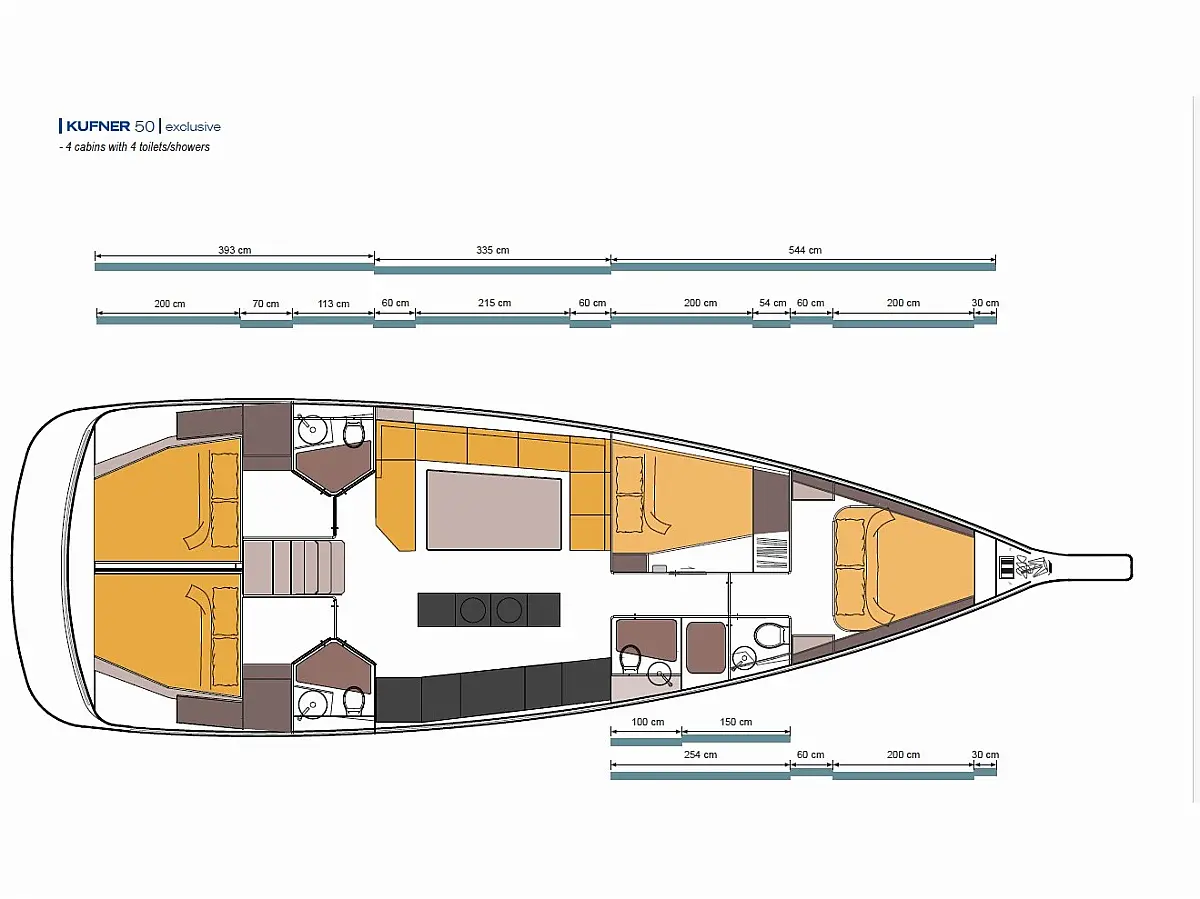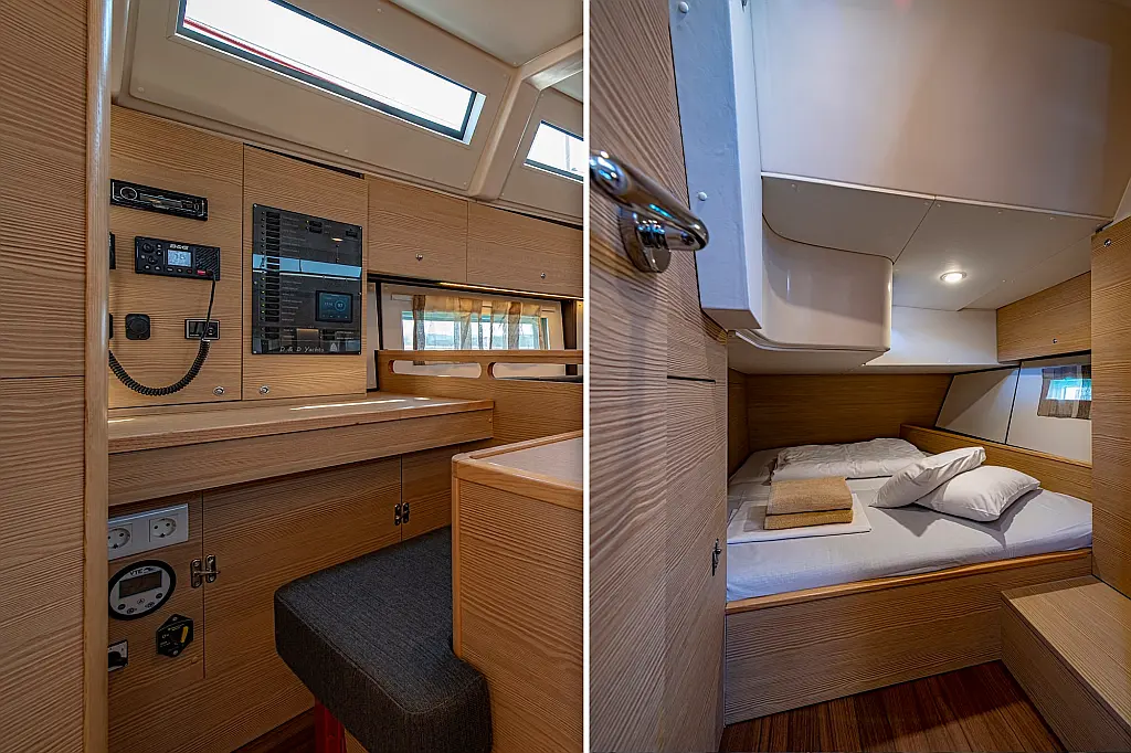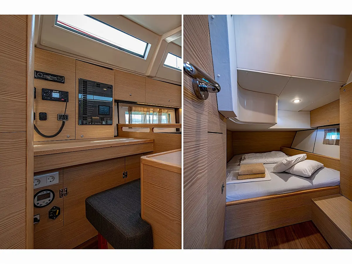 Zvučnici u kokpitu , Roštilj u kokpitu , Platforma za plivanje , Generator , Pomoćni čamac , Vanbrodski motor , Hladnjak , Električni WC , Solarni paneli